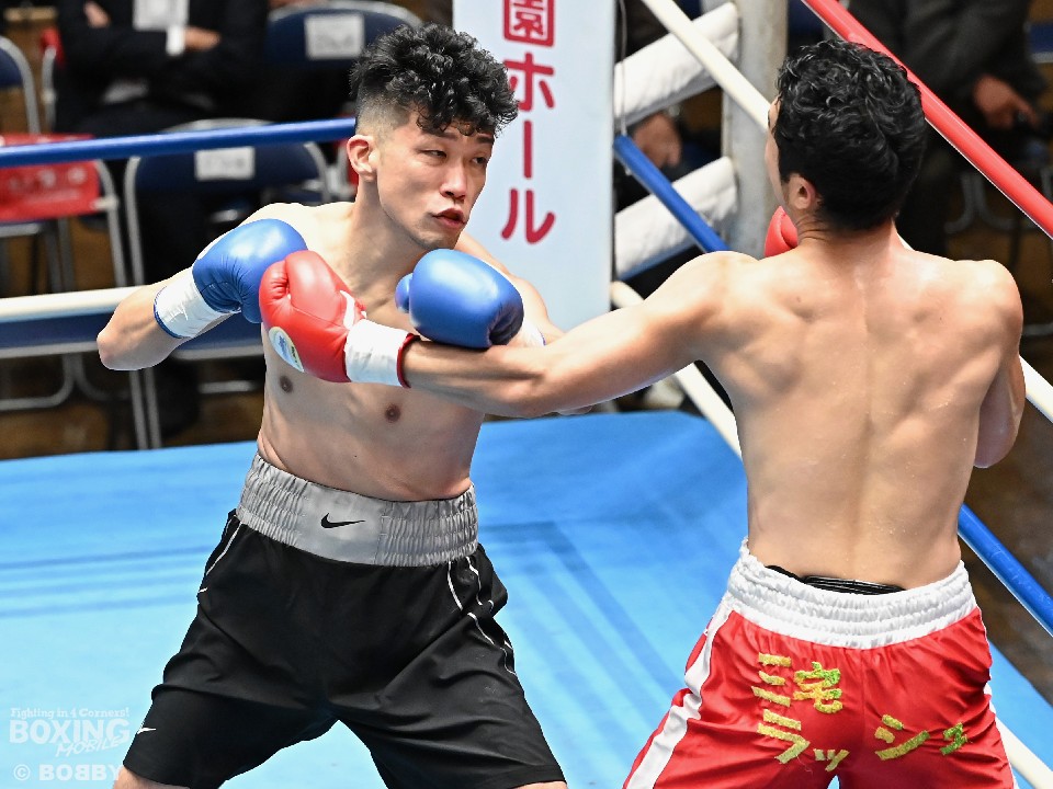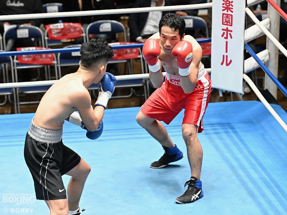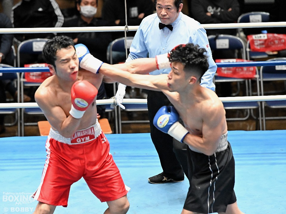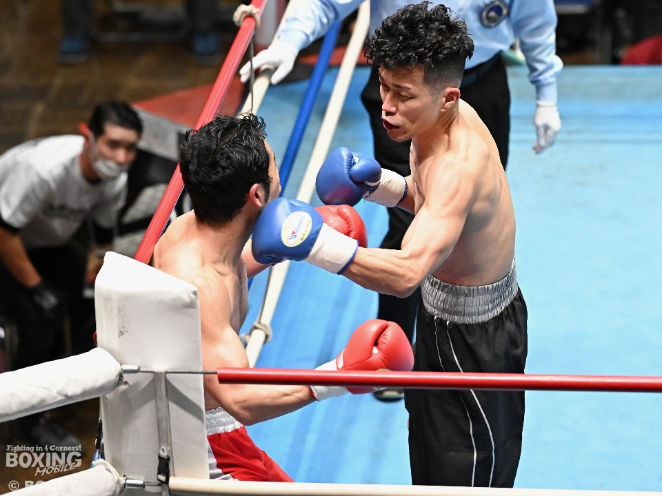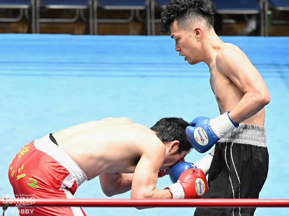 試合:連敗脱出を誓う三宅が左右のロングフックで攻め立てるが、高橋は真っ向から応戦。ワンツー連打でグラつかせて豊富な手数でダメージを与えた。2回、ペースを握った高橋が攻め立てたところでレフェリーが割って入った。