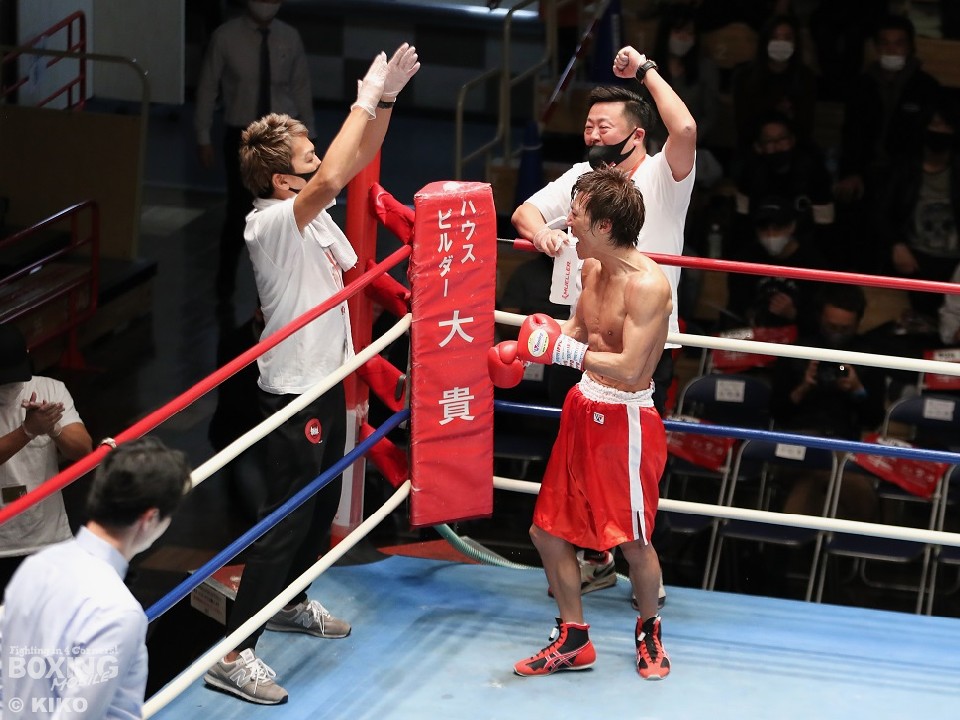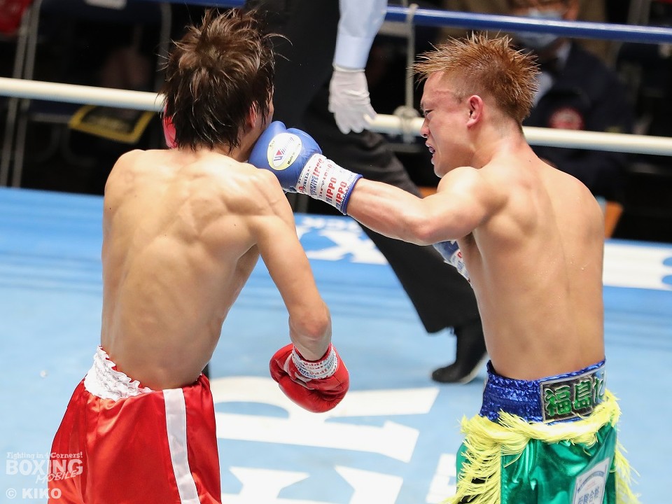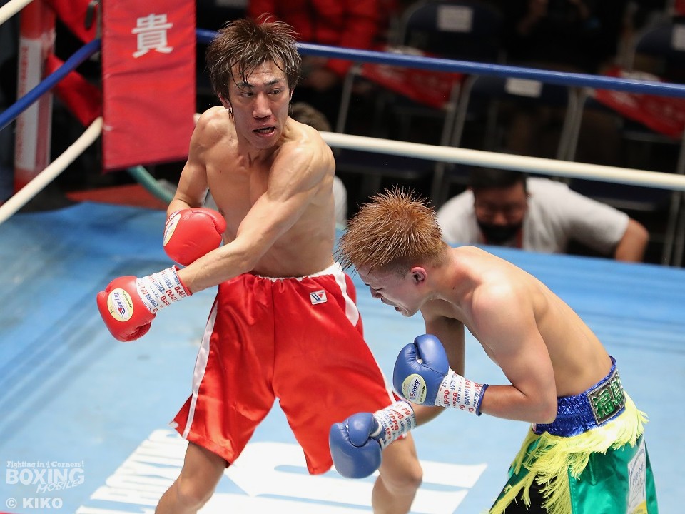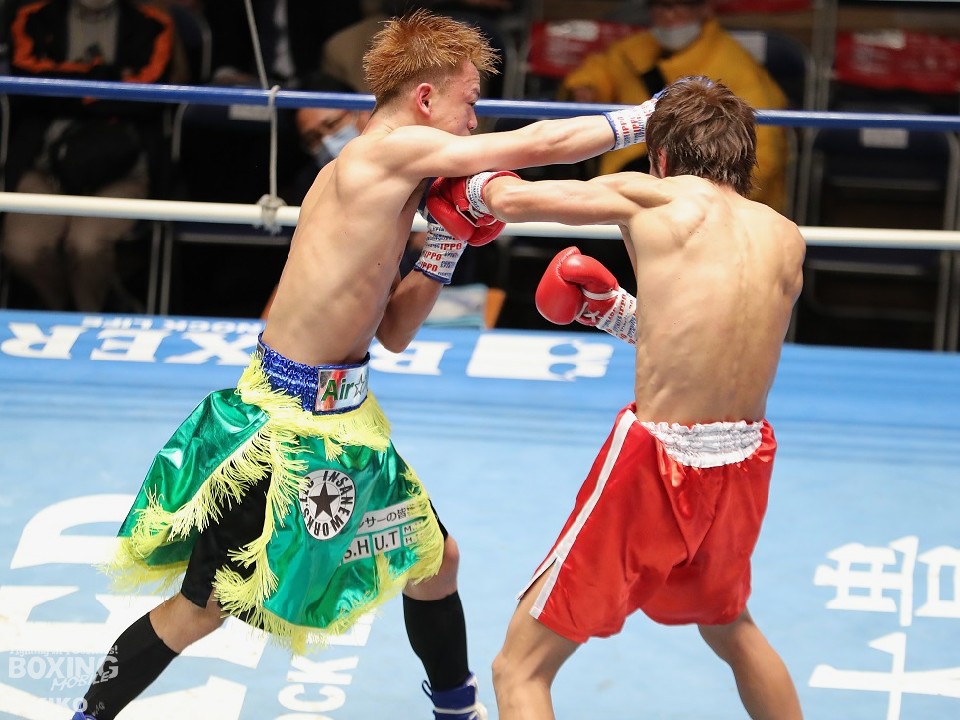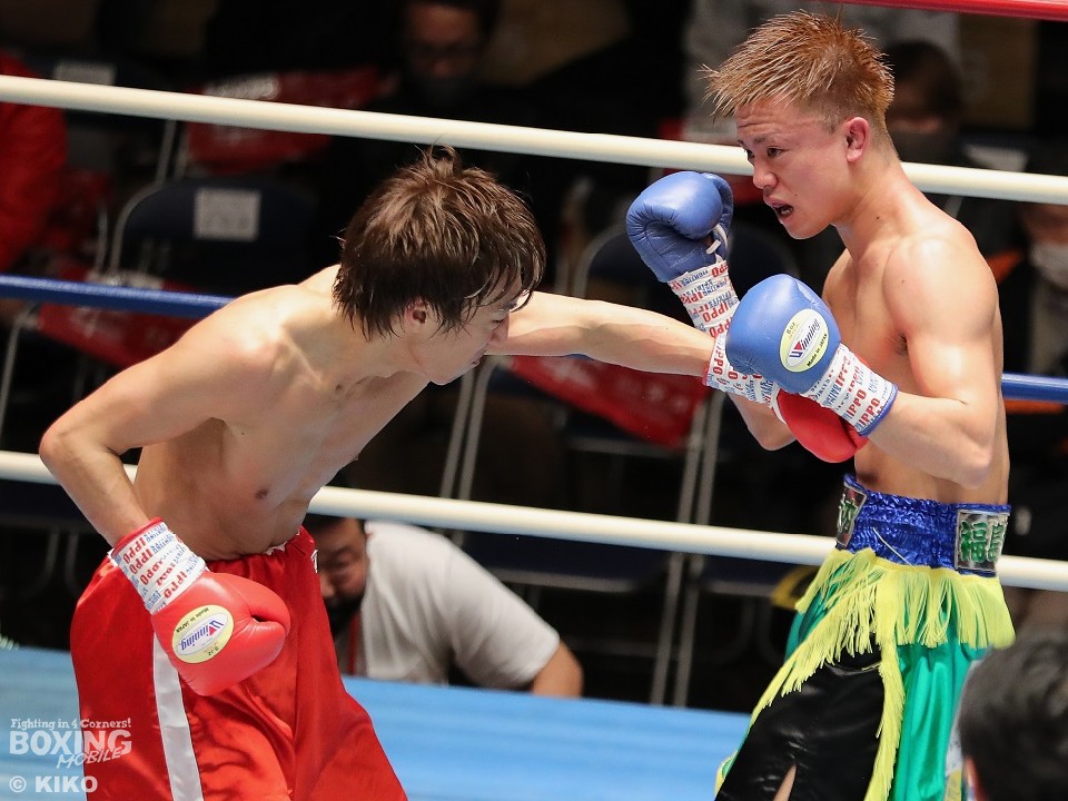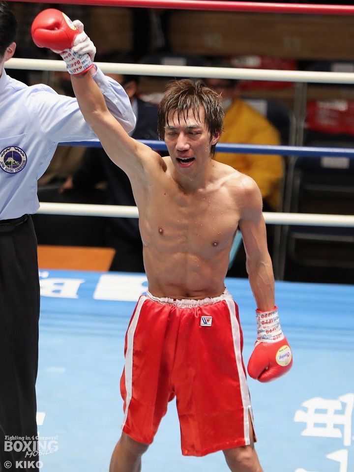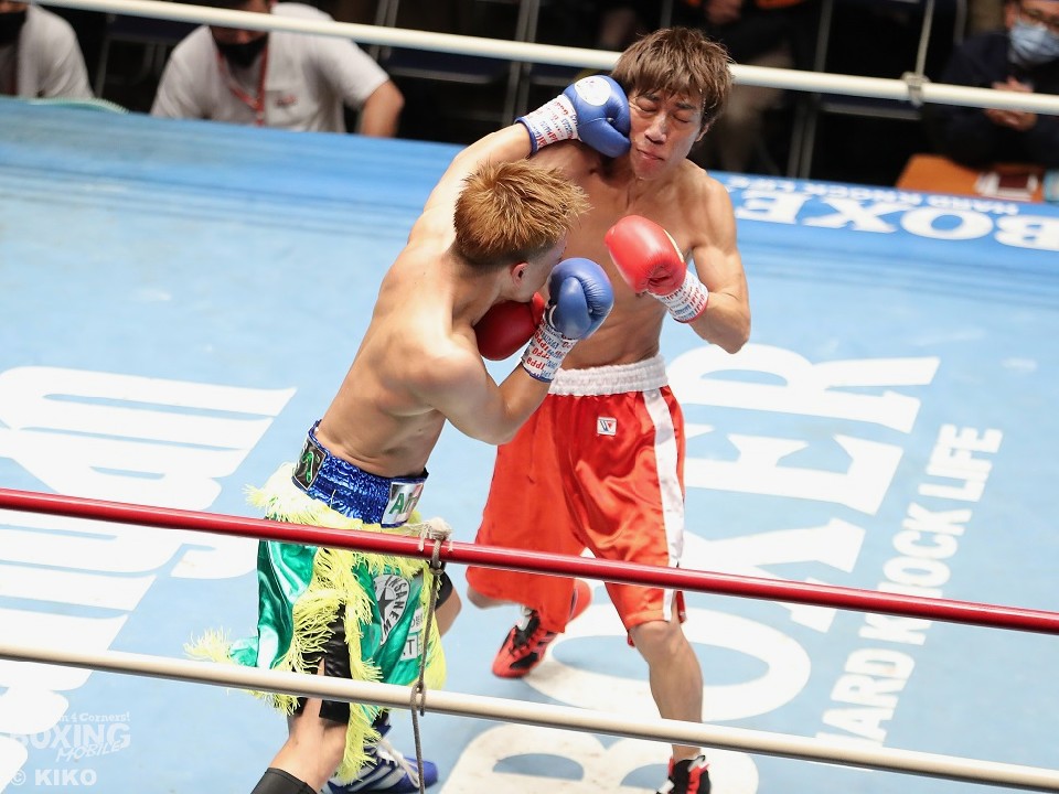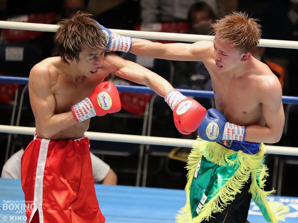試合:デビュー戦の大内が、フェイントを入れながらワンツーを繰り出し軽快な動きを披露。これが約7年7ヶ月ぶりのリングの正地は、動きに硬さがみられるもののワンツーを返し応戦した。2回、正地は右フックで膝を揺らしたが、大内はフットワークを駆使して被弾を回避。3回、打撃戦に持ち込んだ正地は手数で上回ると4回も歯を食いしばりながらパンチを打ち込み勝利を手繰り寄せた。