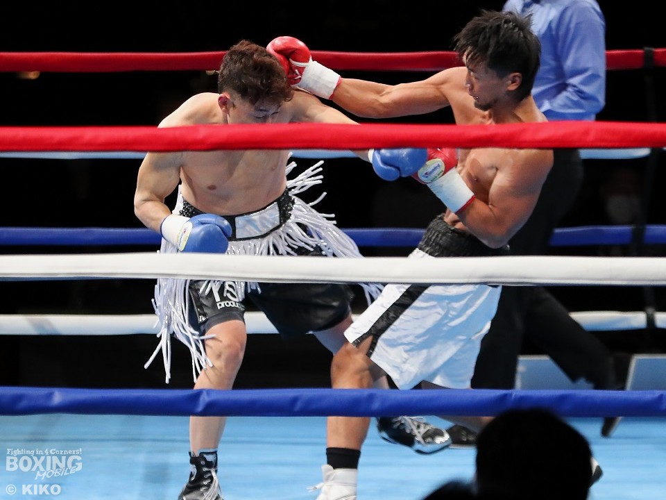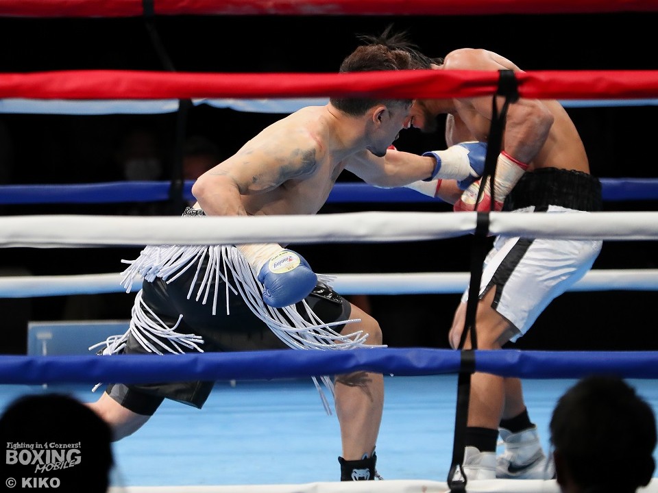 試合:サウスポー高橋が前の手で距離を測りながら左ストレートを狙うのに対し、浜崎は打ち終わりに右オーバーハンドを打ち込み対抗。2回、浜崎がワンツーで顔を弾くが高橋も左ストレートを好打し攻守が目まぐるしく変わった。3回、打ち合いは激しさを増しお互いに手数で譲らず。しかし、ラウンド終了間際に浜崎の回転力が勝った。4回、高橋はワンツーで顔をのけぞらせて攻勢をかけるが、浜崎も懸命に打ち返し試合終了のゴングを聞いた。ジャッジに委ねられた採点は三者三様の引き分けだった。