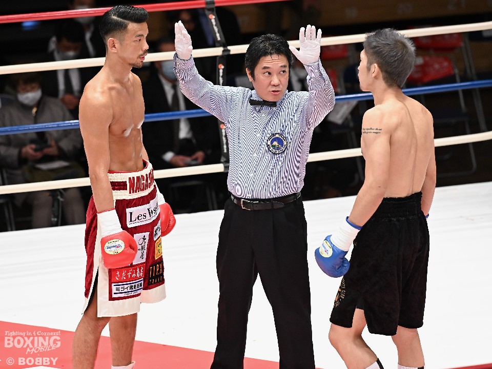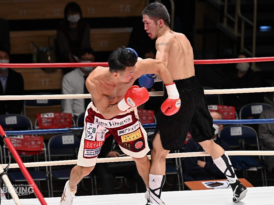 試合:中間距離でパンチを交錯させる形でスタート。辻本が右ストレートを叩きつけるが、小倉はガッチリとブロックすると左フックでグラつかせ攻勢。倒しにかかるが辻本はクリンチで窮地を脱した。2回、小倉は左フックから攻勢をかけると連打でダウンを先取。再開後はダメージが残る辻本に襲い掛かるが、ここでスタミナを使い果たし失速。チャンスを伺っていた辻本は反撃に転じると、右フックを振り抜きダウンを奪い返しレフェリーストップに持ち込んだ。逆転KO勝ちした辻本が再起に成功した。