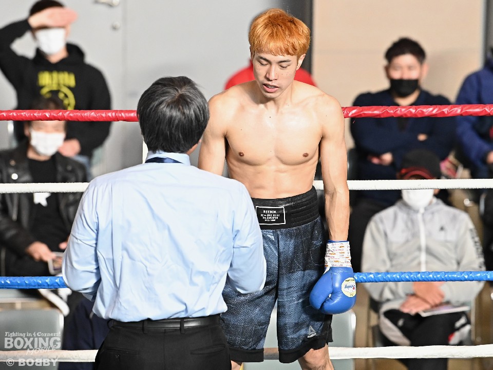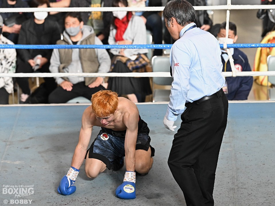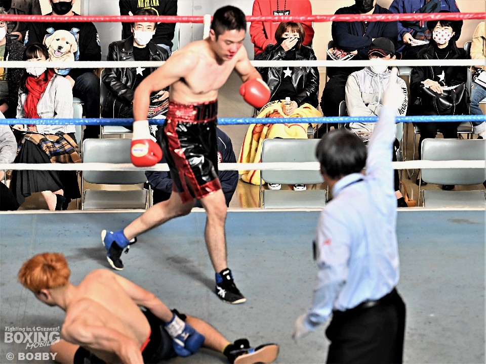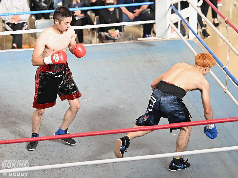 試合:デビュー戦の山中が左を突きながら右を差し込むが、打ち終わりにハンマーの右フックを浴びてダウン。初回に手痛い失点を喫した。2回、ポイントを挽回したい山中は、スイッチを織り交ぜながらパンチを繰り出すが、ハンマーは右オーバーハンドを再三ヒット。3回、両者ともパンチを振り回しながら攻めるが、山中が手数で挽回。しかし、ラウンド終了間際にハンマーの右フックがジャストミート!再び立ち上がった山中だったがレフェリーは試合を止めた。3戦目で初勝利を挙げたハンマーは両膝を叩いて喜びを表現した。KO勝ちしたハンマーは12月27日に大阪行われる次戦に弾みをつけた。