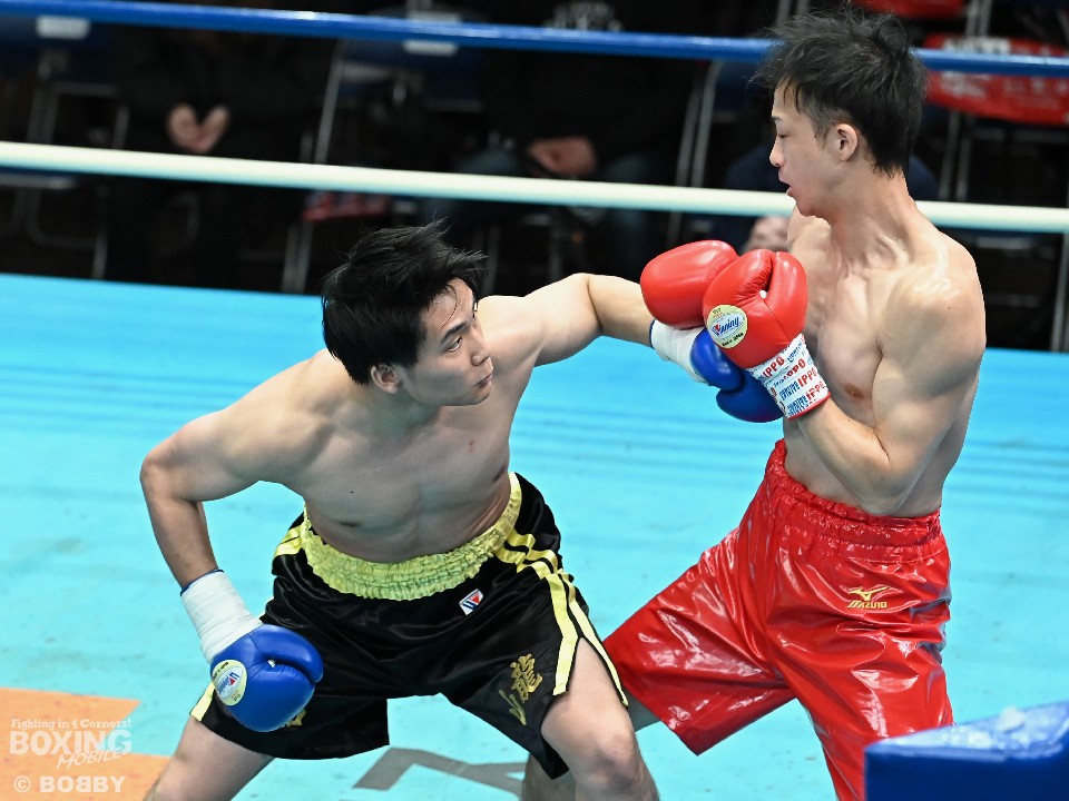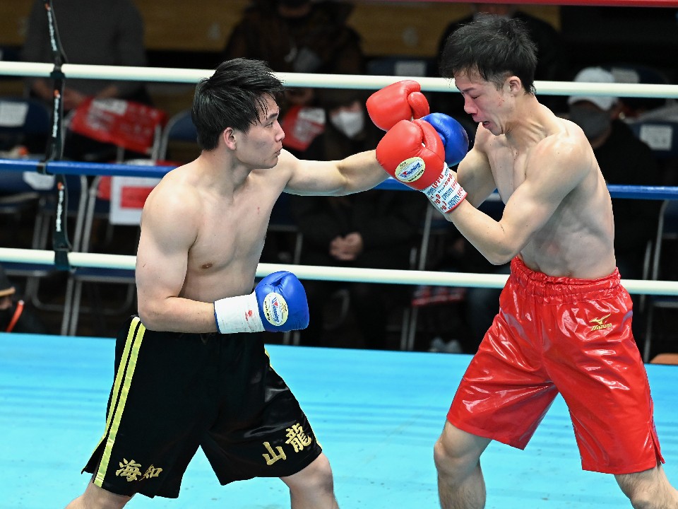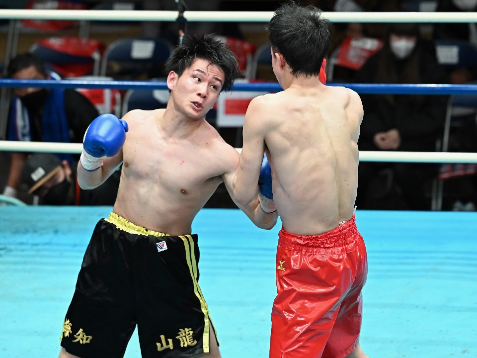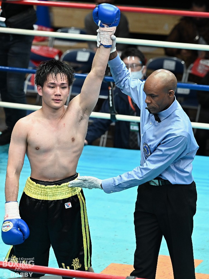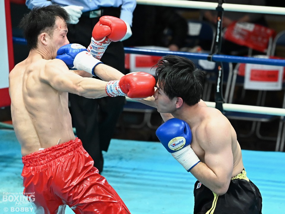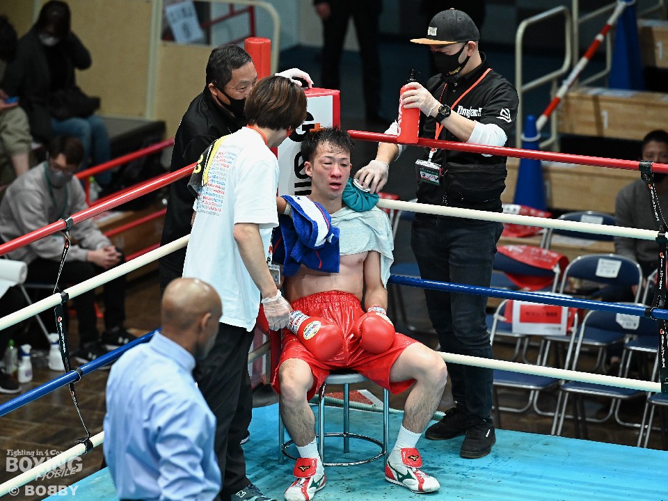試合:サウスポー齊藤がジャブで距離を探りながら丁寧に試合を組み立てる。対する山﨑は懐に飛び込んで右フックで応戦すると、右フックをねじ込みダウンを奪った。2回以降は、接近戦でパンチを交換したが山﨑のショートパンチが上回った。3回、山﨑は力強い右フックで2度目のダウンを奪うとレフェリーはノーカウントで試合を止めた。