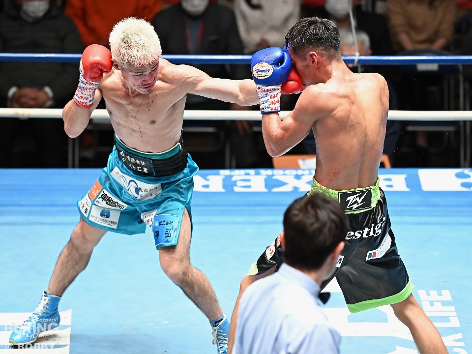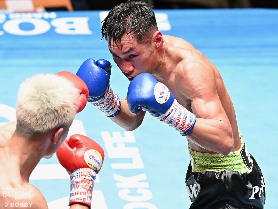 試合:立ち上がり、坂がテンポよくジャブを飛ばしながら距離を詰めてリズムを作る。対して渡邉はガードをガッチリと固めて慎重に左を突いた。2回、坂がステップインからの右がヒット。次第に右クロスが冴えてくる。後手に回っていた渡邉だが、3回になるとジャブが当たりだす。しかし、相手のパンチで左目上をカットした。4回には偶然のバッティングで坂の方も左目上をカットした。5回、渡邉が左ボディを決めるが、これに火がついた坂は強気に打ち返してポイントを加点した。前半終了時の公開採点は、49-46×3で坂がリード。6回、失点を挽回したい渡邉は、プレスをかけていくが、坂は冷静に対応。すると右ストレートでグラつかせ連打から右をフォローしてダウンを先取。ダメージの深さを考慮したレフェリーはノーカウントで試合を止めた。坂がアウェーで初防衛に成功した。