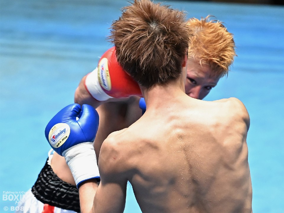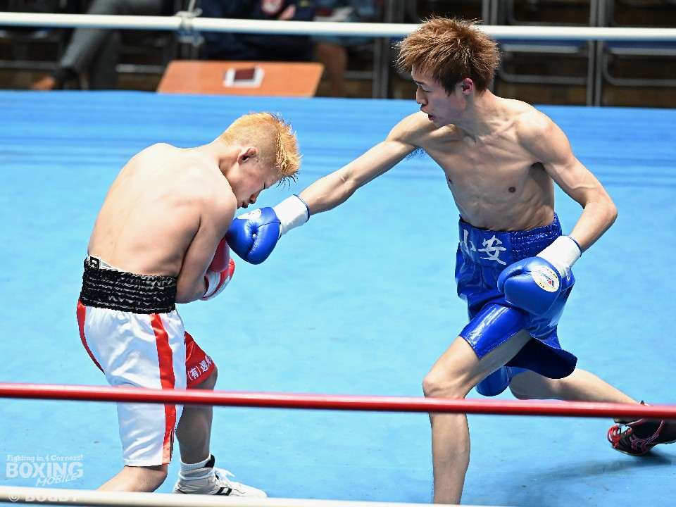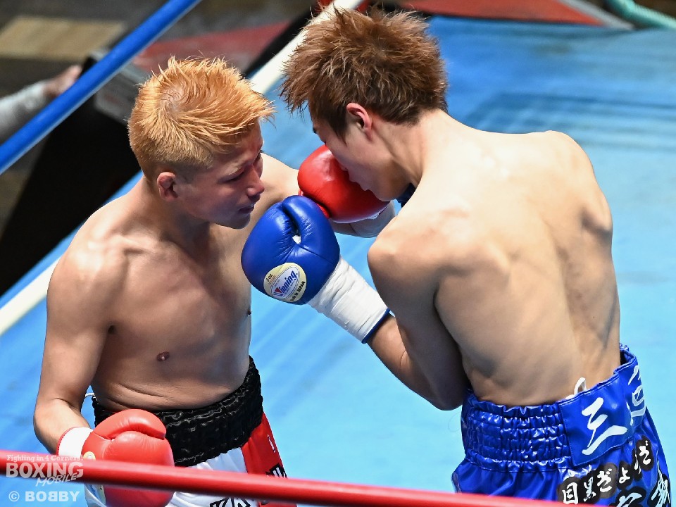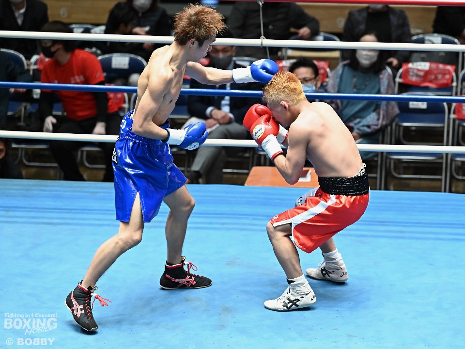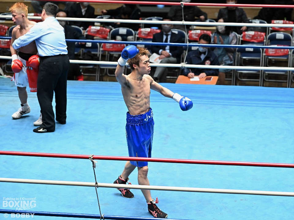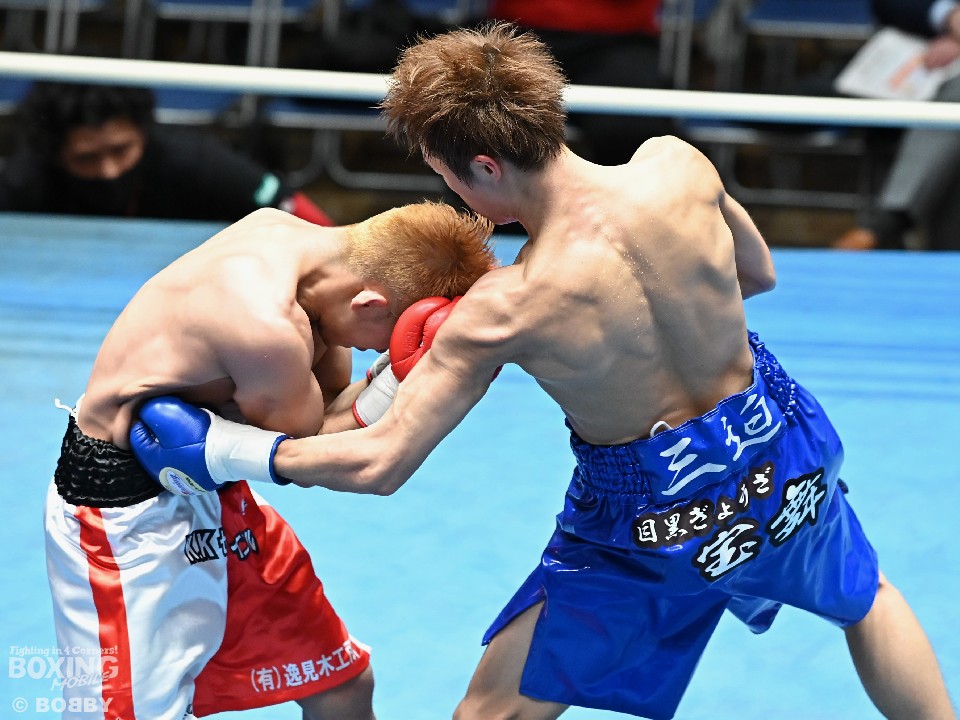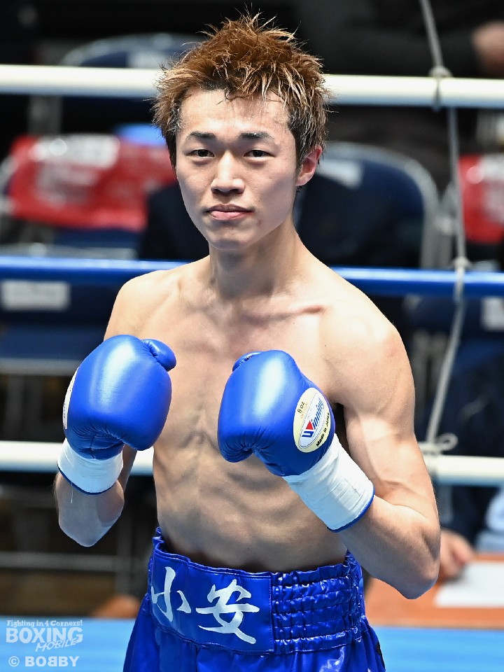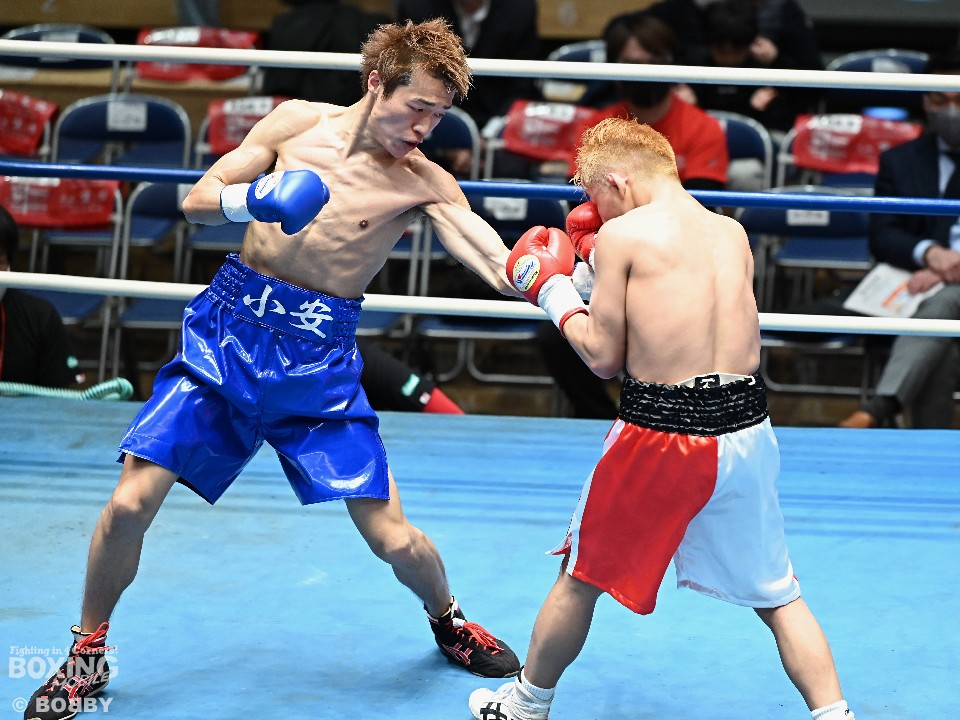 試合:身長差15㎝の対戦は、長身の小安が距離を取りながら右ストレートを叩きつけて先制攻撃。ラウンド終盤には左ボディを突き刺し動きを止めた。2回、接近戦を仕掛ける根岸に対し、小安は冷静に対応するとボディにパンチを集めて攻勢。失速した根岸を攻め立てると右アッパーを決めてダウンを演出。再開後、パンチをまとめてフィニッシュした。