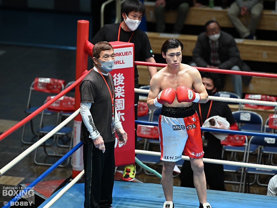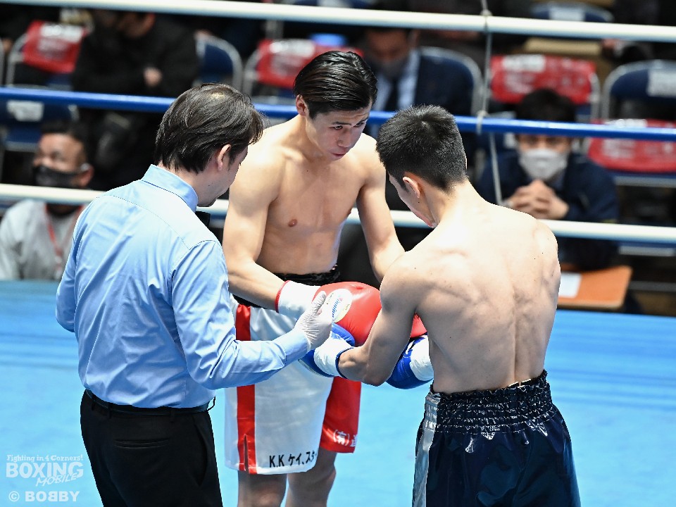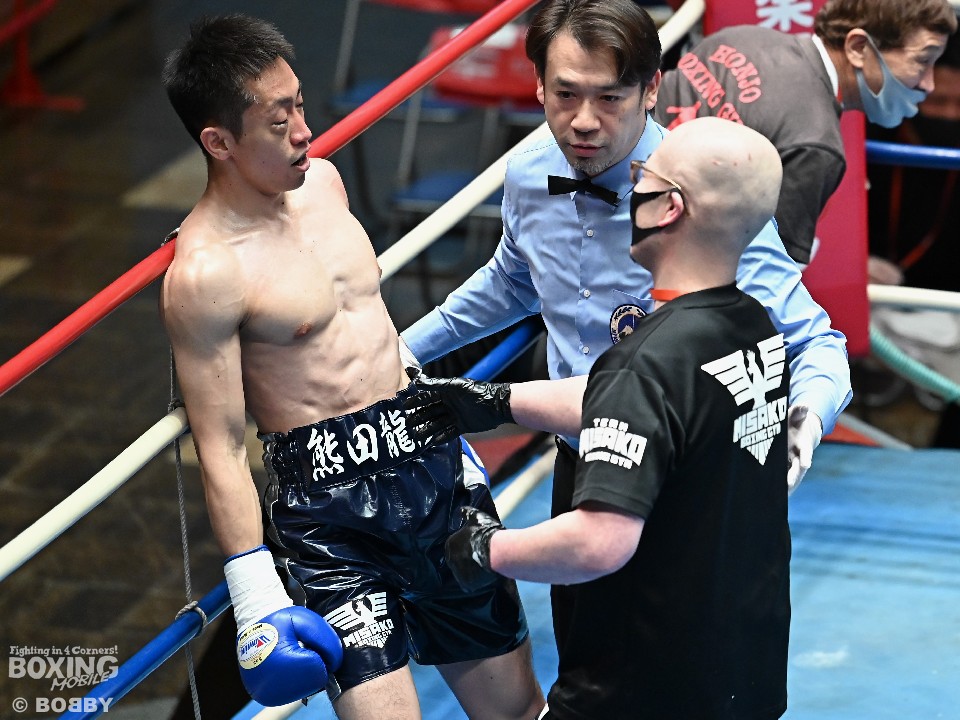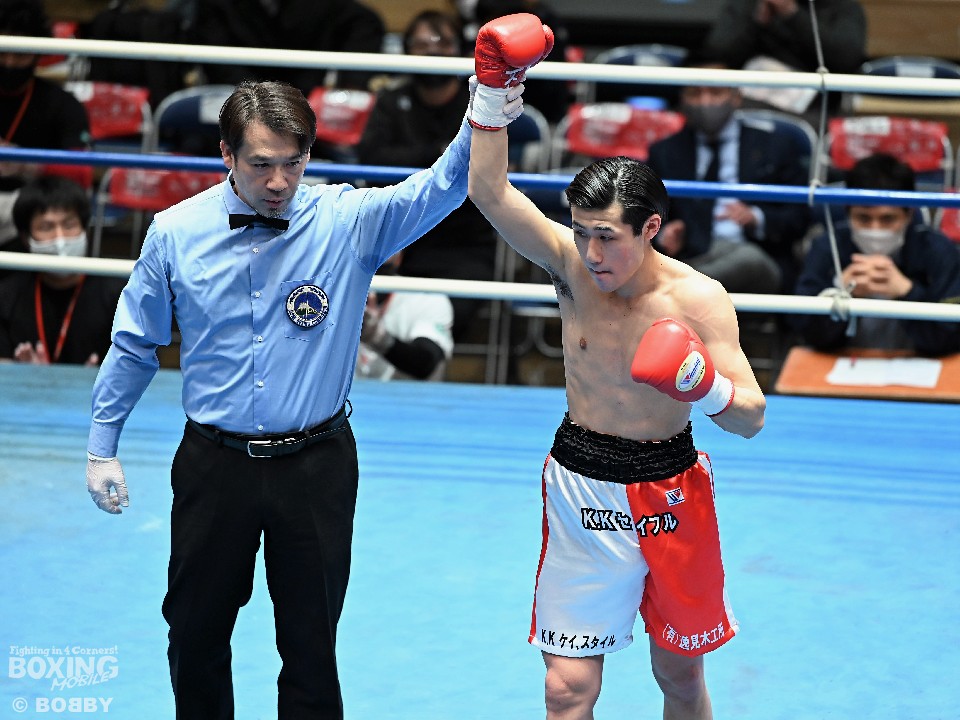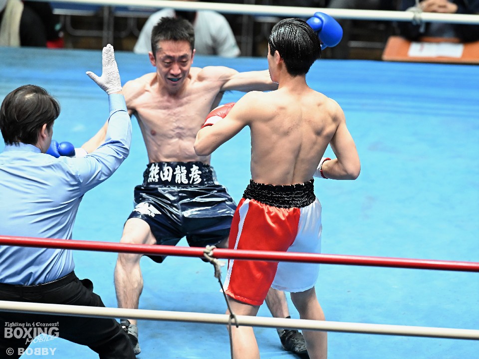 試合:サウスポー須賀が広くスタンスを取りながらワンツーを好打。するとワンツーから右をフォローしダウンを先取。立ち上がった熊田に襲いかかると左ストレートを振り抜き2度目のダウンを奪いレフェリーストップに持ち込んだ。須賀が27秒でデビュー戦を勝利した。