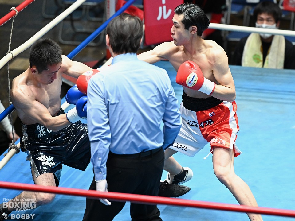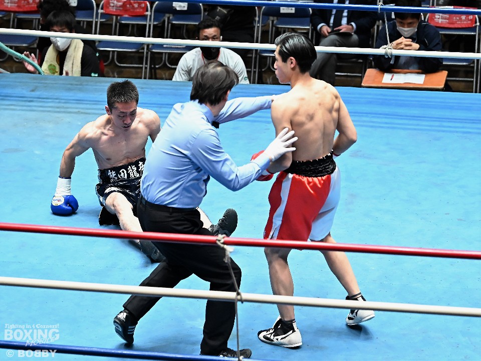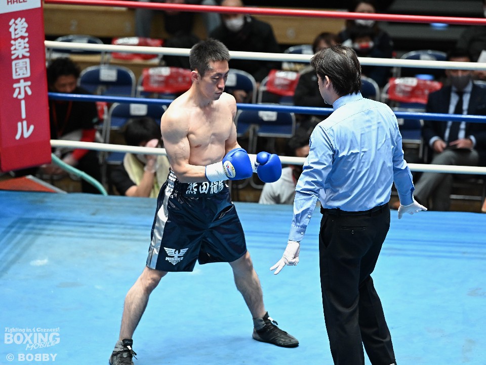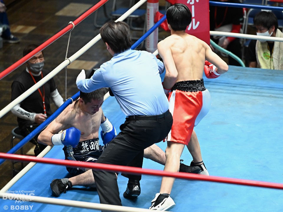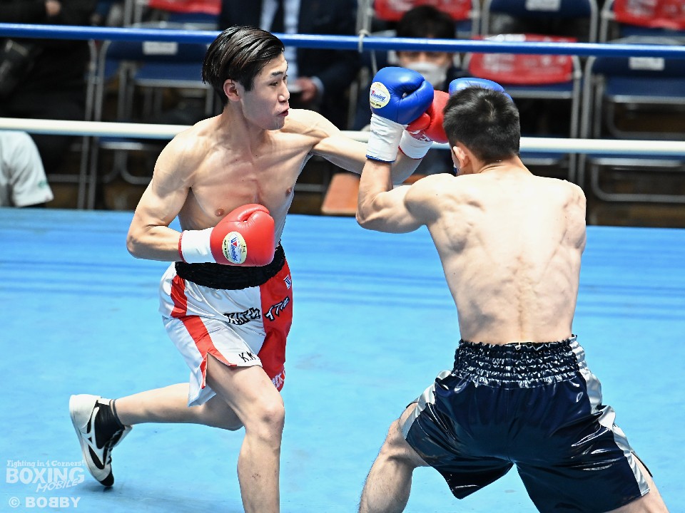 試合:サウスポー須賀が広くスタンスを取りながらワンツーを好打。するとワンツーから右をフォローしダウンを先取。立ち上がった熊田に襲いかかると左ストレートを振り抜き2度目のダウンを奪いレフェリーストップに持ち込んだ。須賀が27秒でデビュー戦を勝利した。