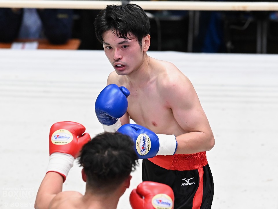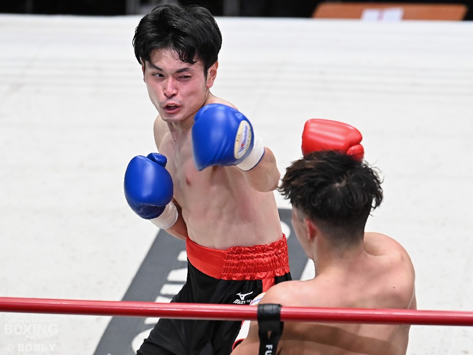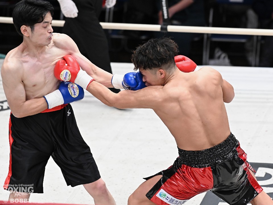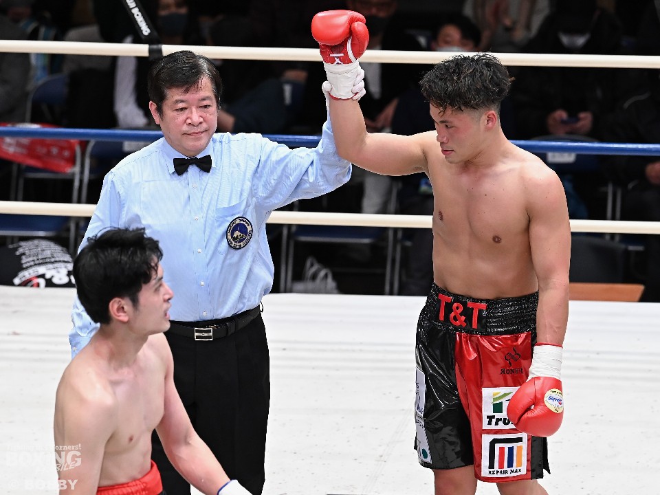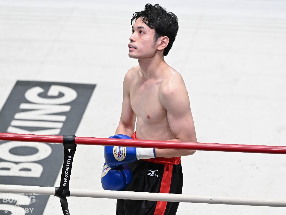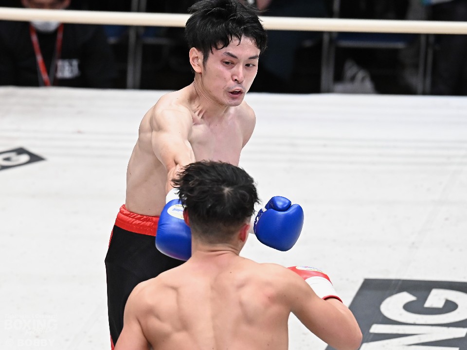 試合:熊澤が軽く左を出しながらジリジリと距離を詰めるのに対し、坂久保はほとんど手を出さず慎重な試合運びを見せる。大きなアクションがないまま3回へ。坂久保は右オーバーハンドを繰り出すが、熊澤はバックステップでかわすと単発の右ストレートを当てた。4回、坂久保は右ロングフックで仕掛けるが、熊澤は距離をキープしながら右で迎え撃った。