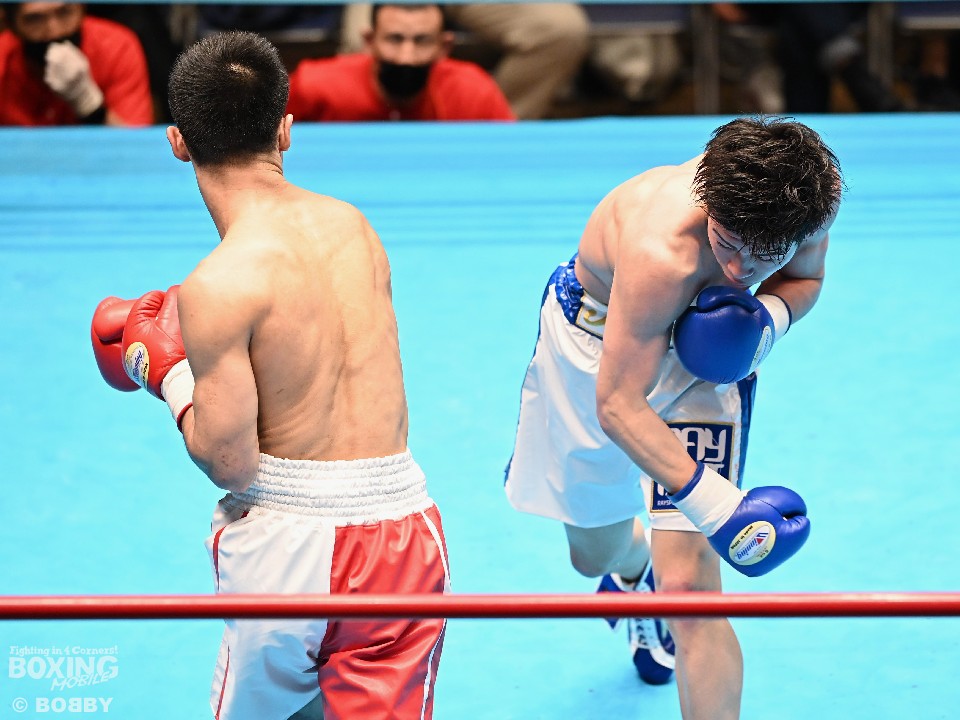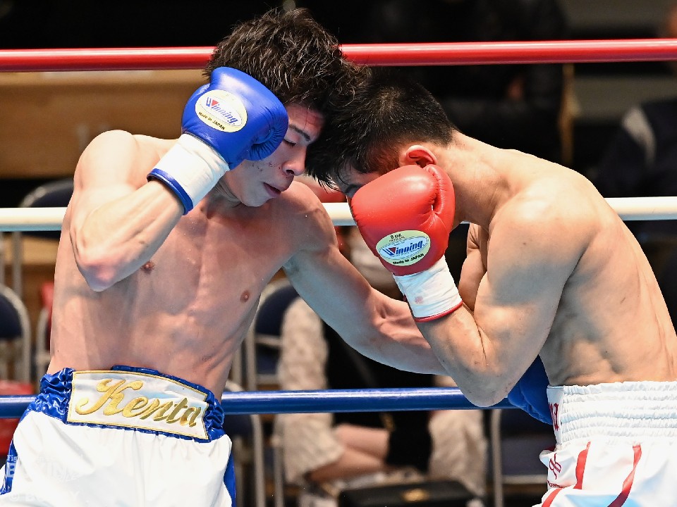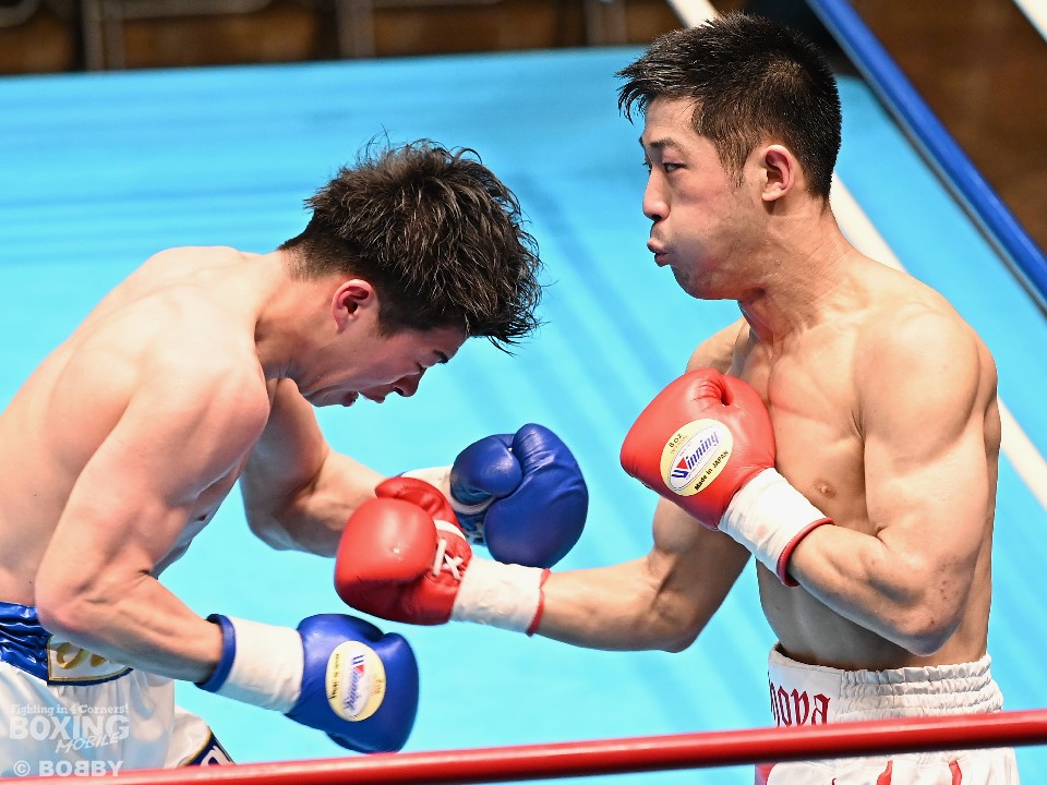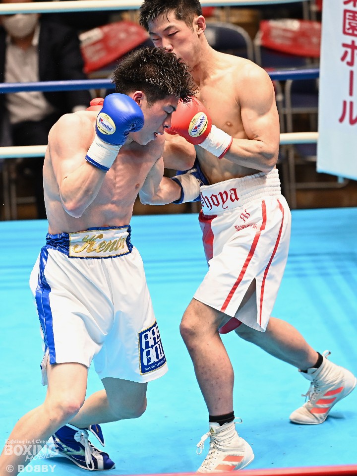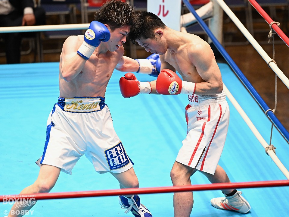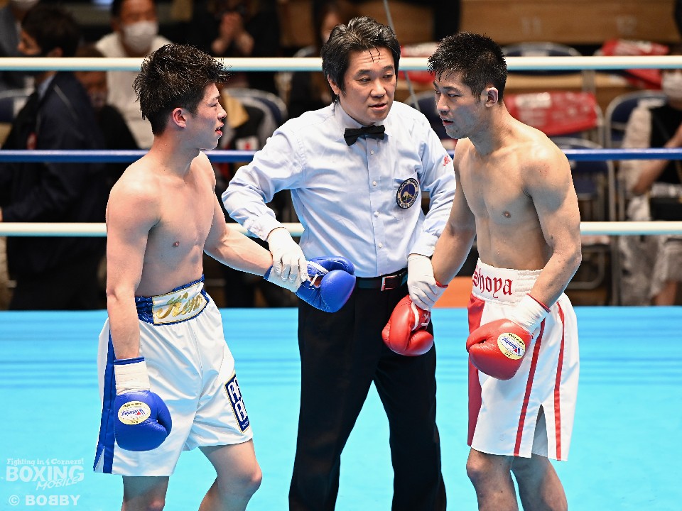 試合:平床が右オーバーハンドからボディにパンチを集めて先制攻撃。さらにジャブで後退させた。2回、柿原は左ボディで動きを止めると、プレスをかけてボディに的を絞りペースを手繰り寄せた。3回、平床は左から立て直しを図るが、柿原は執拗にボディを攻めて譲らず。4回、両者とも体力の消耗が激しい中、平床がワンツーから右アッパーを好打。柿原も負けじと左ボディを返し試合終了のゴングを聞いた。試合は三者三様の引き分けで勝敗はつかなかった。