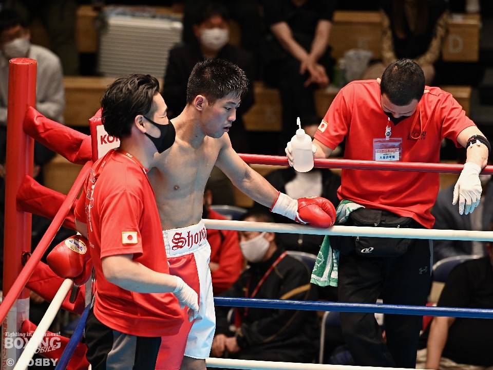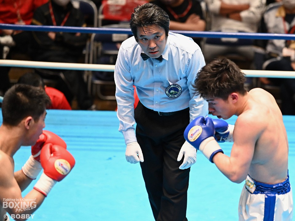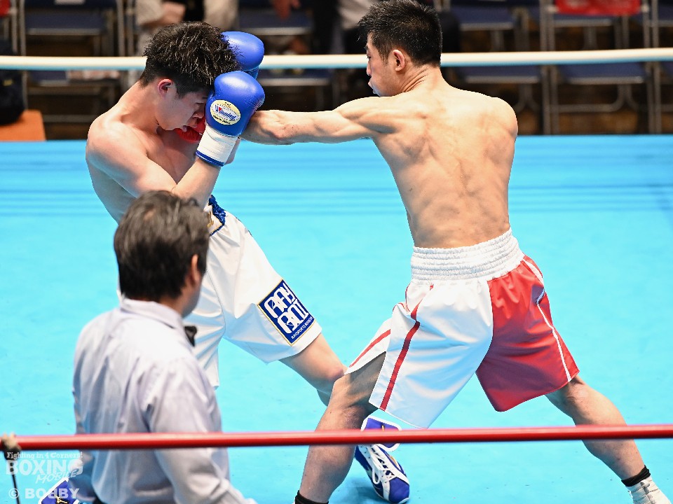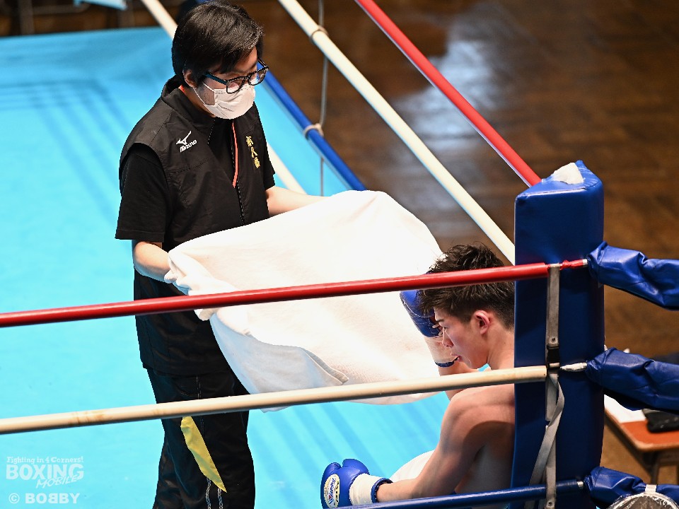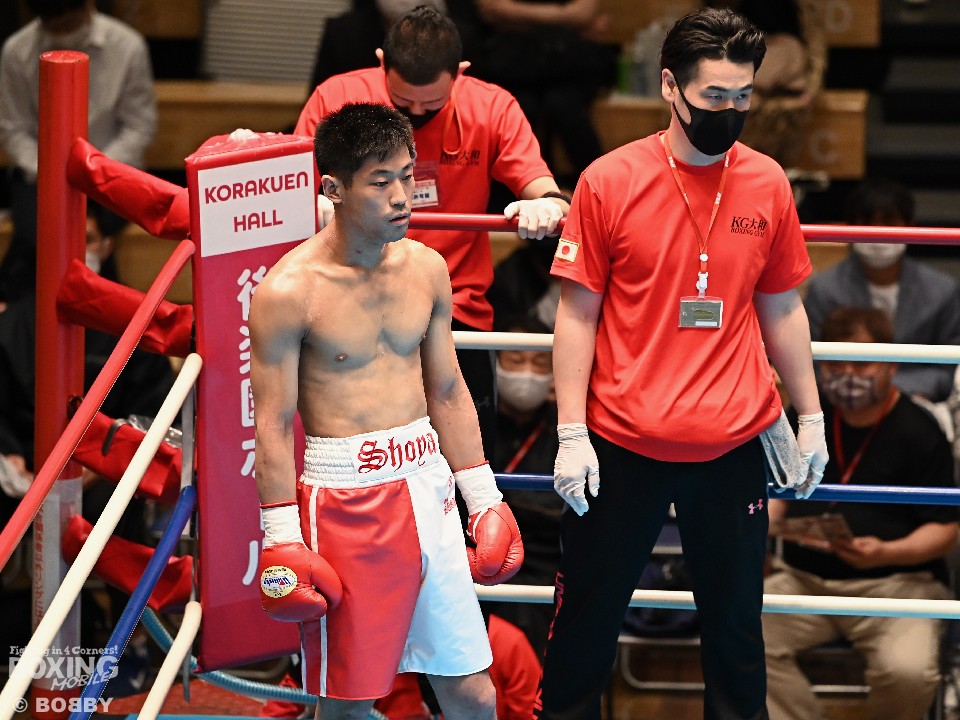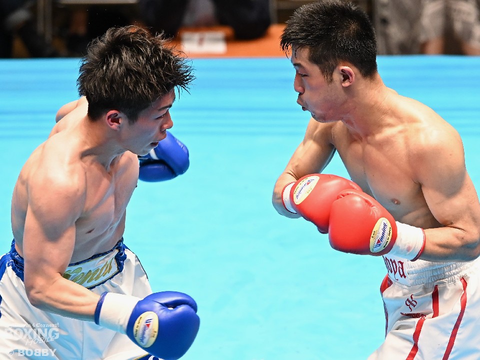 試合:平床が右オーバーハンドからボディにパンチを集めて先制攻撃。さらにジャブで後退させた。2回、柿原は左ボディで動きを止めると、プレスをかけてボディに的を絞りペースを手繰り寄せた。3回、平床は左から立て直しを図るが、柿原は執拗にボディを攻めて譲らず。4回、両者とも体力の消耗が激しい中、平床がワンツーから右アッパーを好打。柿原も負けじと左ボディを返し試合終了のゴングを聞いた。試合は三者三様の引き分けで勝敗はつかなかった。