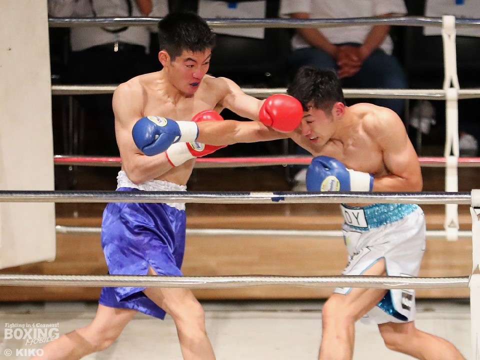 試合:サウスポー中本がジャブで距離を測りながらワンツーをヒット。打ったら左右に動き相手に的を絞らせず。宮はガードで被弾を回避すると、打ち終わりに右ストレートを狙った。2回、宮は右ボディアッパー、左ボディで相手の動きを止めに行くと左ボディを突き刺しダウンを先取。立ち上がった中本は手数を増やして応戦したが、宮は攻撃の手を緩めずレフェリーストップに持ち込んだ。