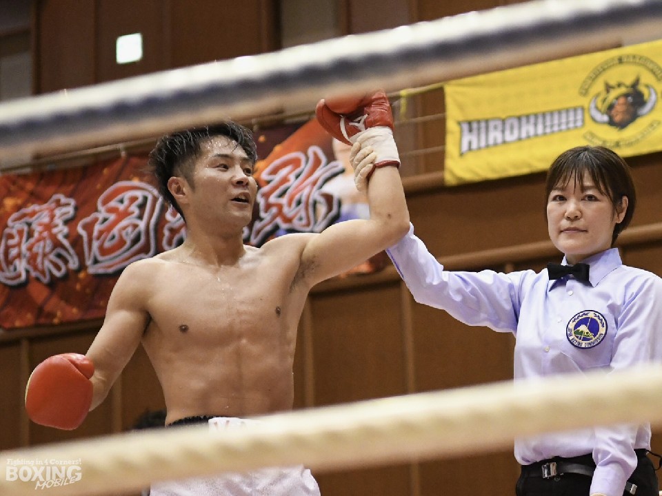 試合:サウスポーの河村に対して距離を詰める藤岡。先にクリーンヒットを顔面に見舞ったのは河村。前足が交差する距離で打ち合う両者。藤岡の右アッパーに河村はワンツーで左を合わせた。河村がロープを背負う場面が増えた中盤、藤岡はガードを固めて前に出ると右から仕掛けてリズムを作った。決定打に恵まれない両者だが5回、体をつけてボディを打ち合った。根比べが続いた6回、接近戦で突破口を探った両者だが一進一退の攻防戦から抜け出せず。7回、藤岡が中間距離から飛び込んで右ストレートを放つが河村もスウェイで被弾を逃れた。最終回、テンポアップした両者はもみ合いながら打ち合った。最後は両者が左右のロングを振り合った。