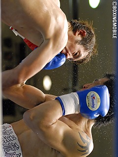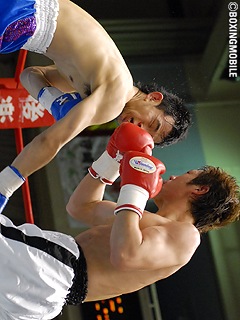 試合:1R、先手のサウスポー中村だが、山崎のワンツーでダウン。その後も右ストレートを浴び膝を落とすなど、打ち終わりに右を合せられる。最終R、互いに手数を出し激しい打ち合いとなった。