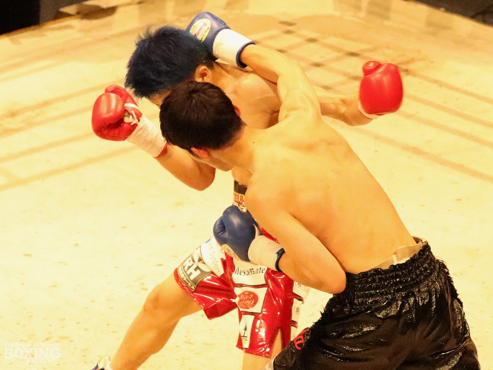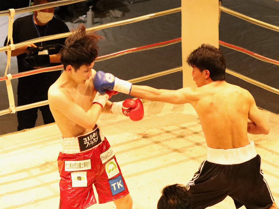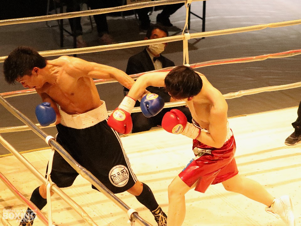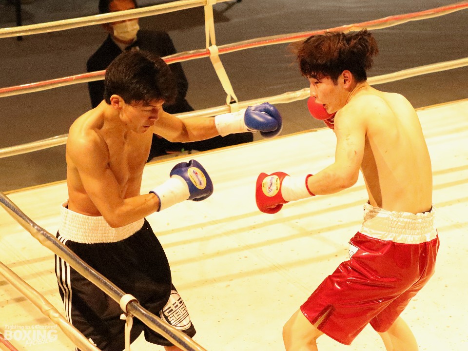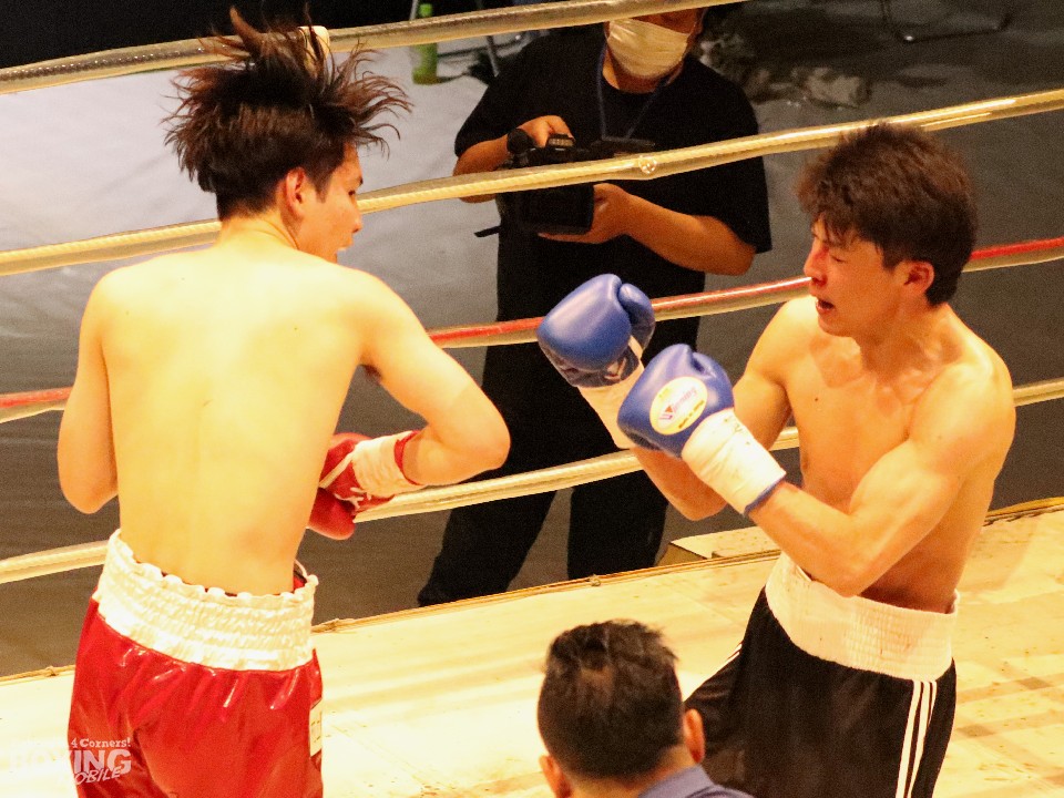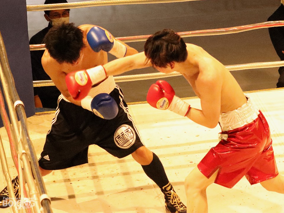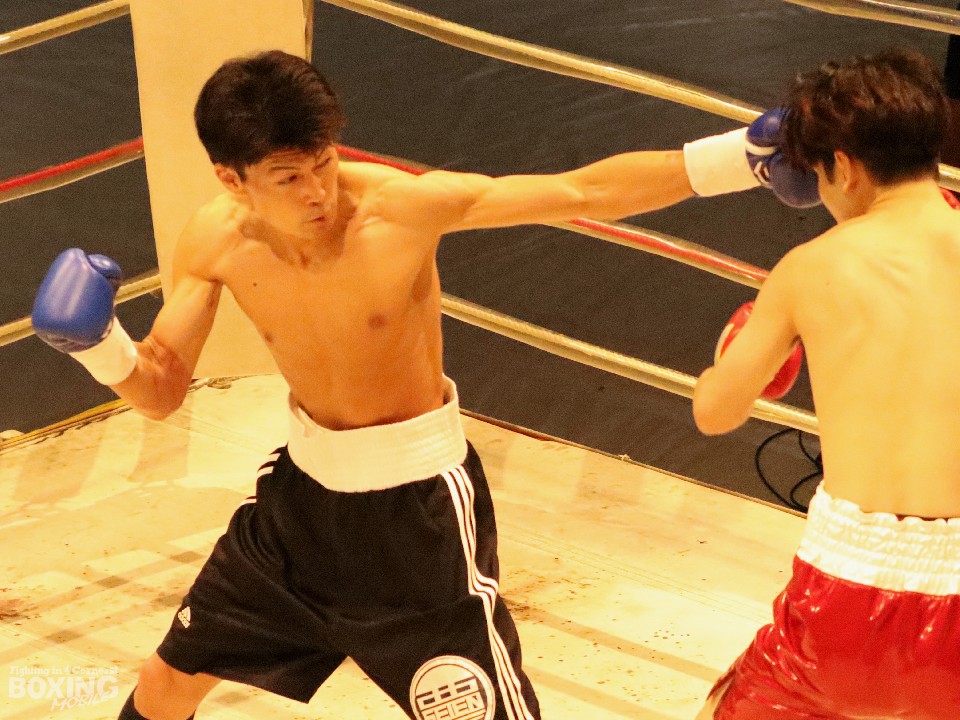 試合:ジャブを飛ばしながら距離を探る川合に対し、文能は頭を振りながらプレスをかけて右ストレートを痛打。川合は慌てる素振りを見せず左を軸に組み立てリズムを掴んだ。打ち終わりに右を狙う文能だが、手数が少なく相手のジャブを浴びてしまう。それでも右ストレートでのけぞらせてジャッジに攻勢をアピールした。4回、川合が右アッパーを突き上げれば文能もワンツーを好打し譲らなかった。接戦を制した文能がデビュー戦を勝利した。