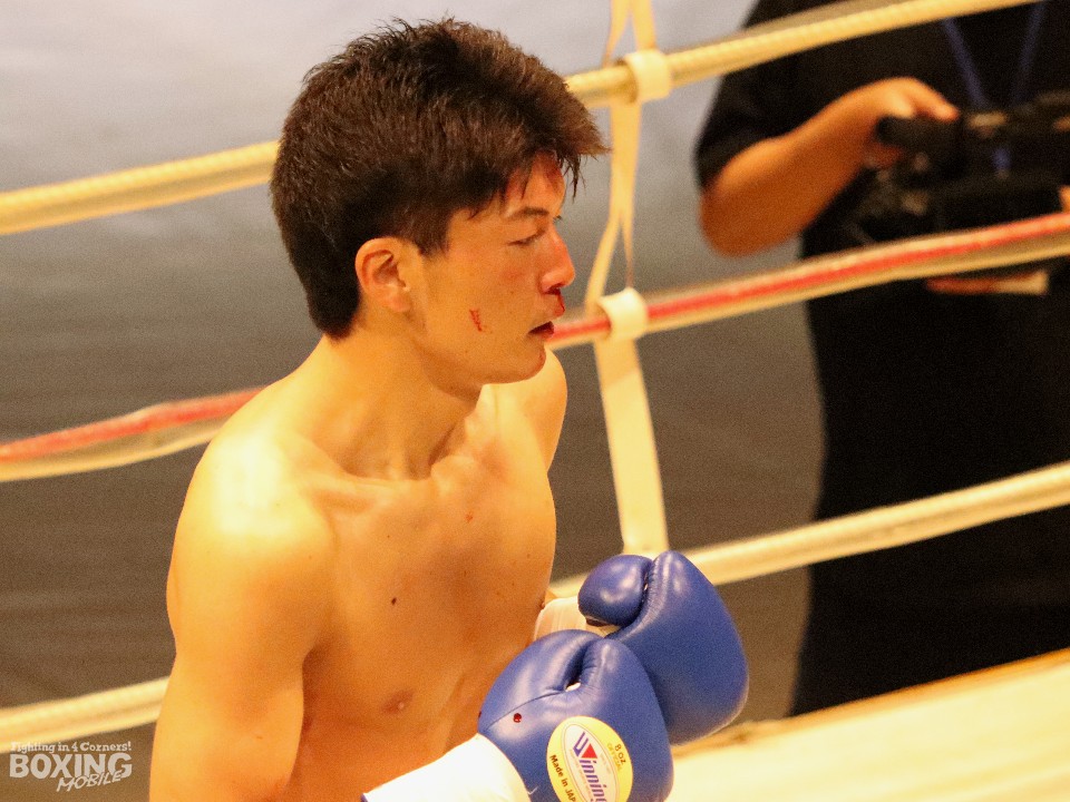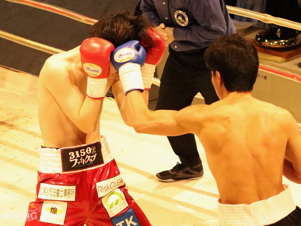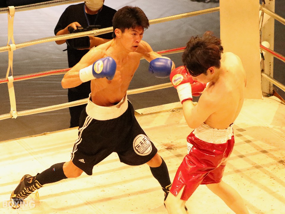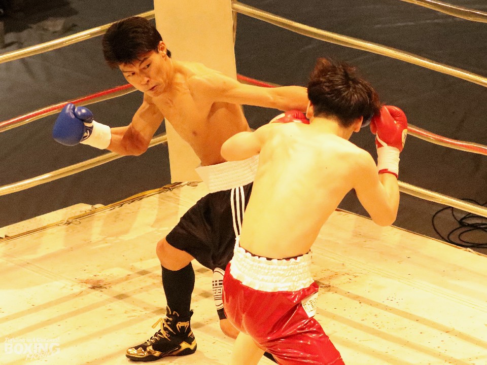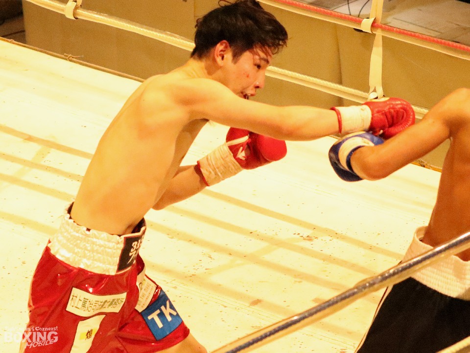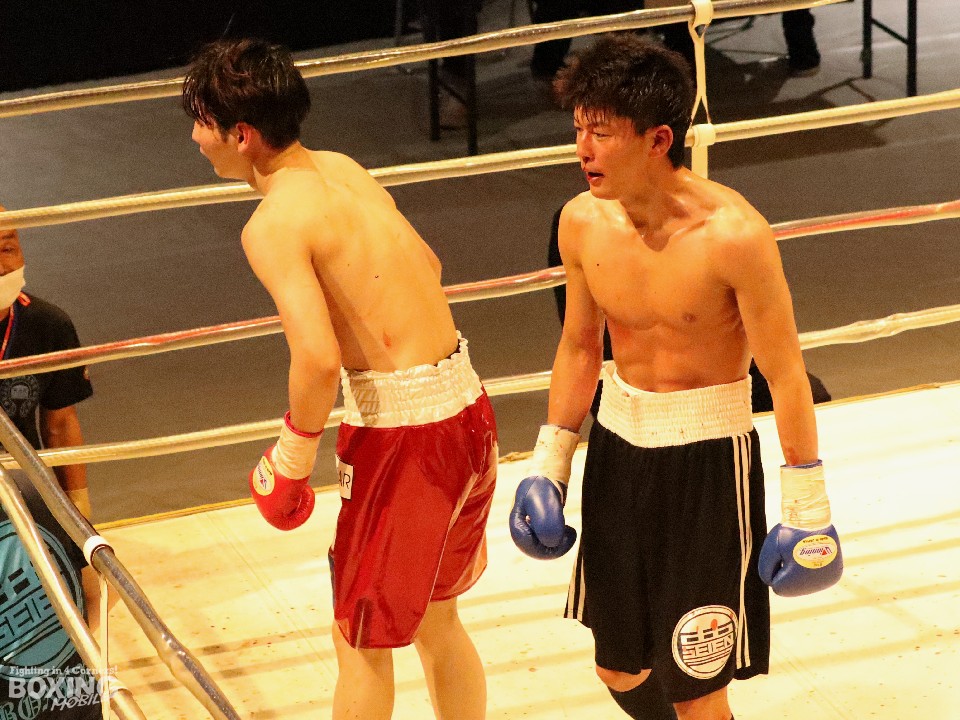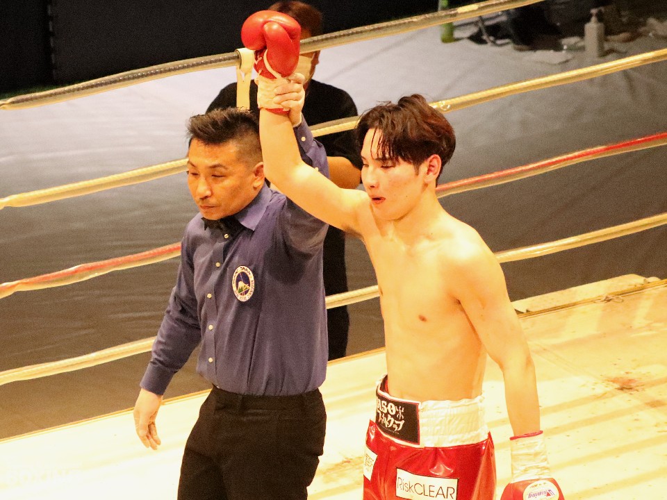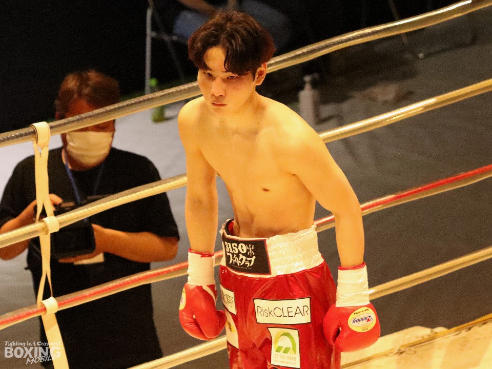 試合:ジャブを飛ばしながら距離を探る川合に対し、文能は頭を振りながらプレスをかけて右ストレートを痛打。川合は慌てる素振りを見せず左を軸に組み立てリズムを掴んだ。打ち終わりに右を狙う文能だが、手数が少なく相手のジャブを浴びてしまう。それでも右ストレートでのけぞらせてジャッジに攻勢をアピールした。4回、川合が右アッパーを突き上げれば文能もワンツーを好打し譲らなかった。接戦を制した文能がデビュー戦を勝利した。