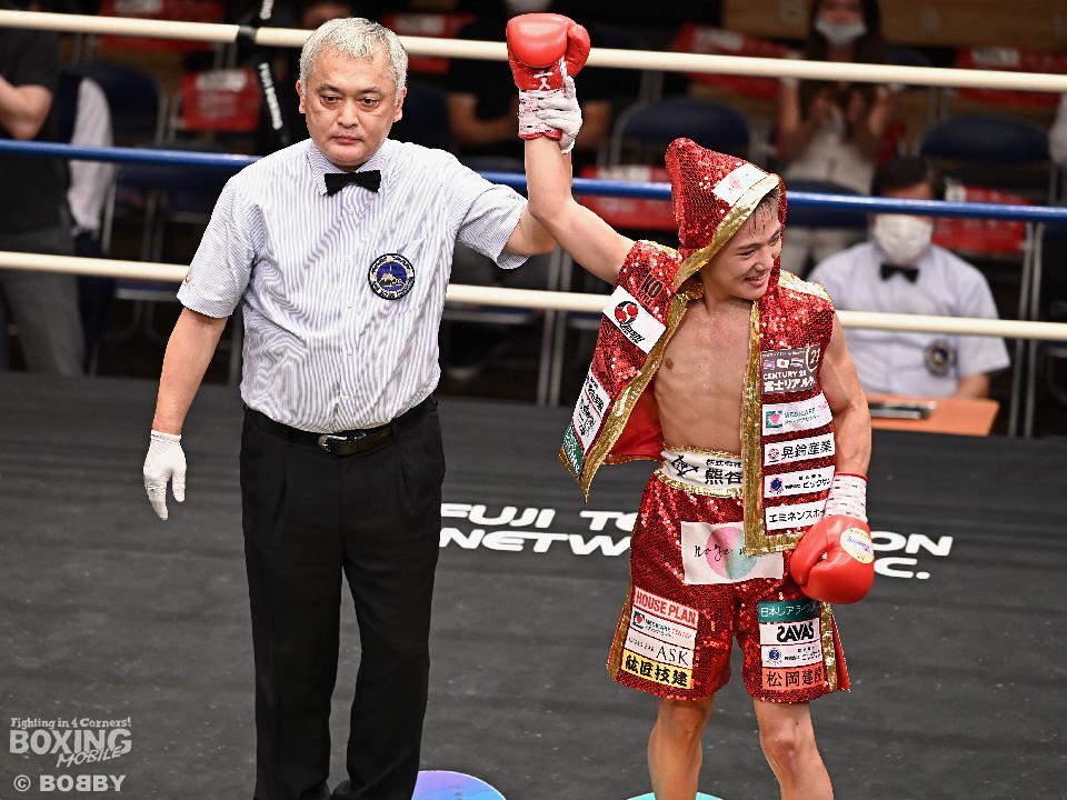 試合:全日本ミニマム級新人王(森は2019年、小島は2020年)対決。森がプレスをかけながらワンツーを狙うが、小島は左右に動きながら左フックを合わせて緊張感のある攻防。2回、小島は相手のパンチによく反応すると、左のダブルのコンビネーションをヒット。しかし、森はラウンド終盤に左ボディを突き刺し相手の動きを一瞬止めた。ボディ攻撃に活路を見出した森は、3回に鋭い踏み込みから左ボディを好打。続く回も森はリズム感のある攻撃で攻め立てると、ラウンド終了間際に左フックで棒立ちにさせた。5回も森は左を軸に丁寧に組み立てると左アッパーから連打で攻勢。最終6回、逆転を狙う小島は果敢に前に出るが、森は真っ向から打ち合うとパンチを畳みかけてフィニッシュした。森がデビュー戦以来のKO勝ちを飾った。