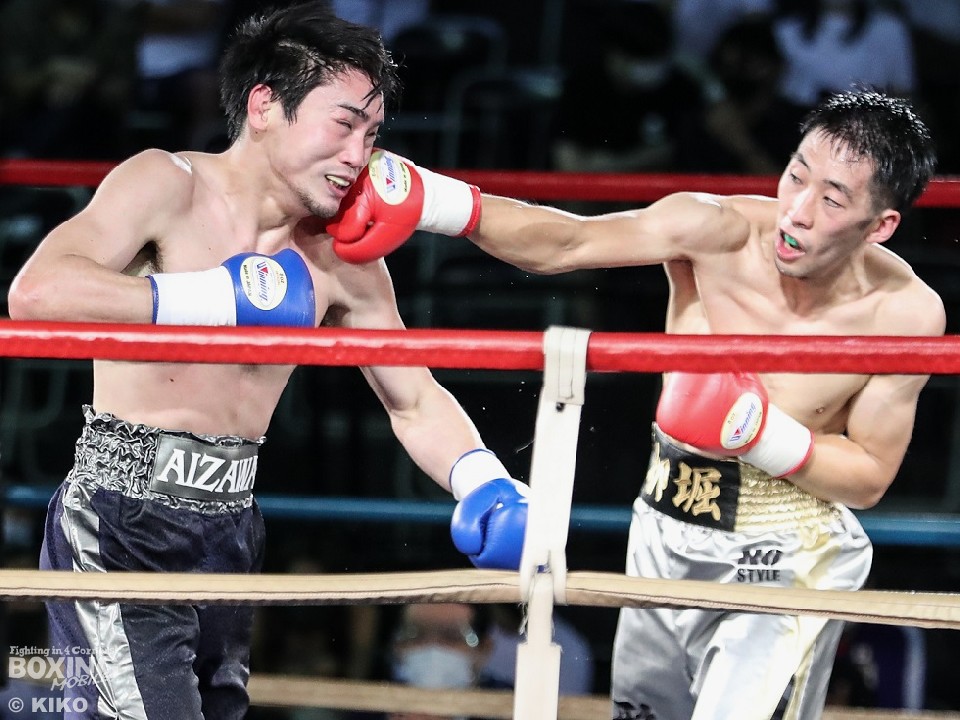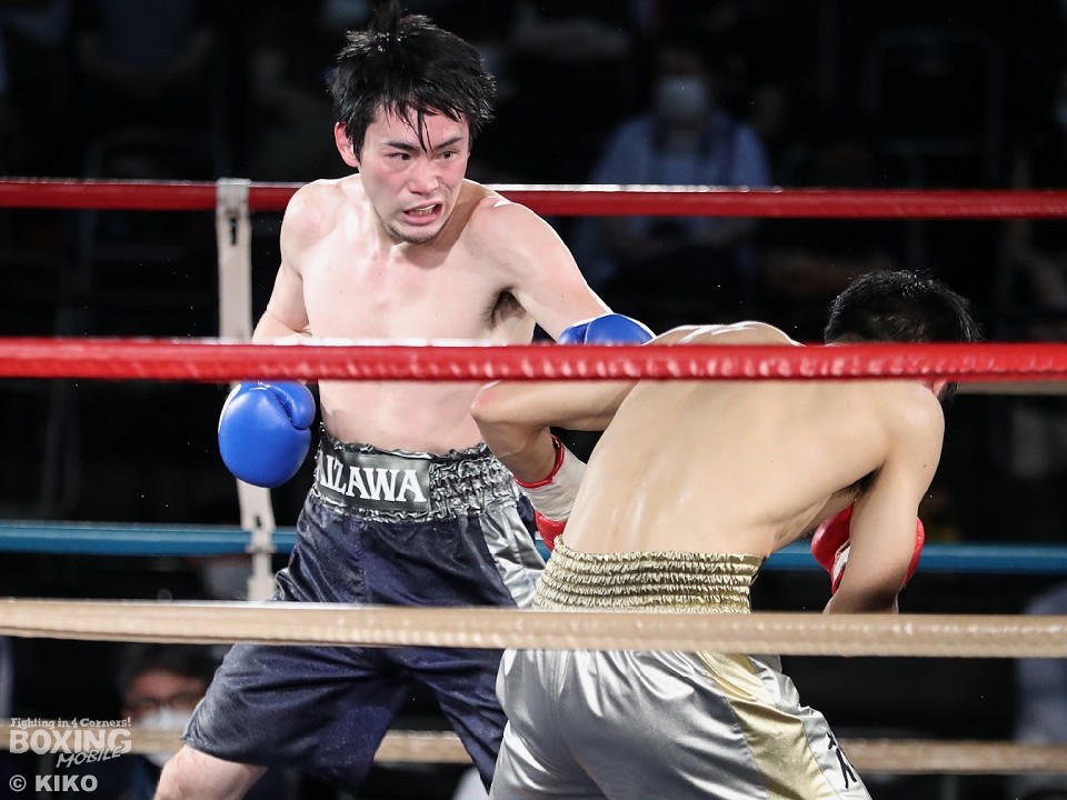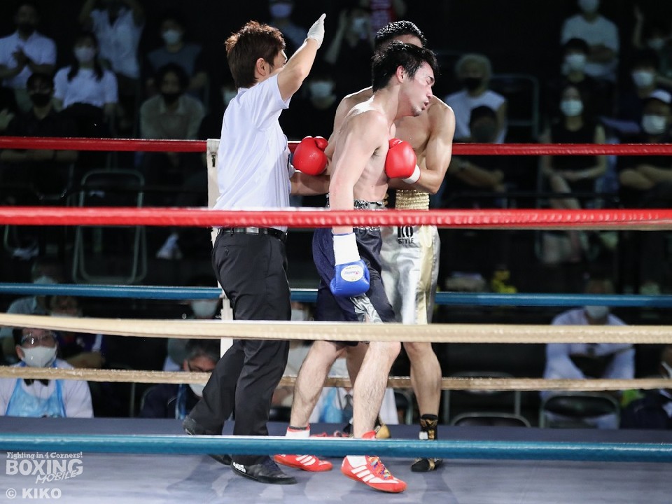 試合:柳堀は足を使いながらジャブを飛ばしてリズム感のある攻撃を展開。相澤は動きが硬く初回は手数が少ない。2回、右を合わせに行く相澤だが、柳堀の左に決定打を打ち込めず。それでもしつこく前に出ると3回にワンツーで腰を沈めさせて反撃。これで火のついた柳堀は真っ向から打ち合いに応じパンチを交錯させた。4回、柳堀はサークリングしながらジャブを軸に試合を組み立てると、右ストレートで顔を弾いたところで相澤陣営から棄権の申し出が出された。