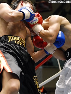 試合:6回戦デビュー竹中の2戦目。1R、竹中は軽快なフットワークでジャブからワンツーでダウンを奪い、序盤からペースを握る。矢板も3R以降、飛び込んでのショートパンチをヒットさせるが、竹中のボディーストレート・アッパーに苦しむ。5R、竹中が偶然のバッティングにより両まぶたをカット。この傷の出血が激しく、負傷判定で竹中が2勝目を上げた。