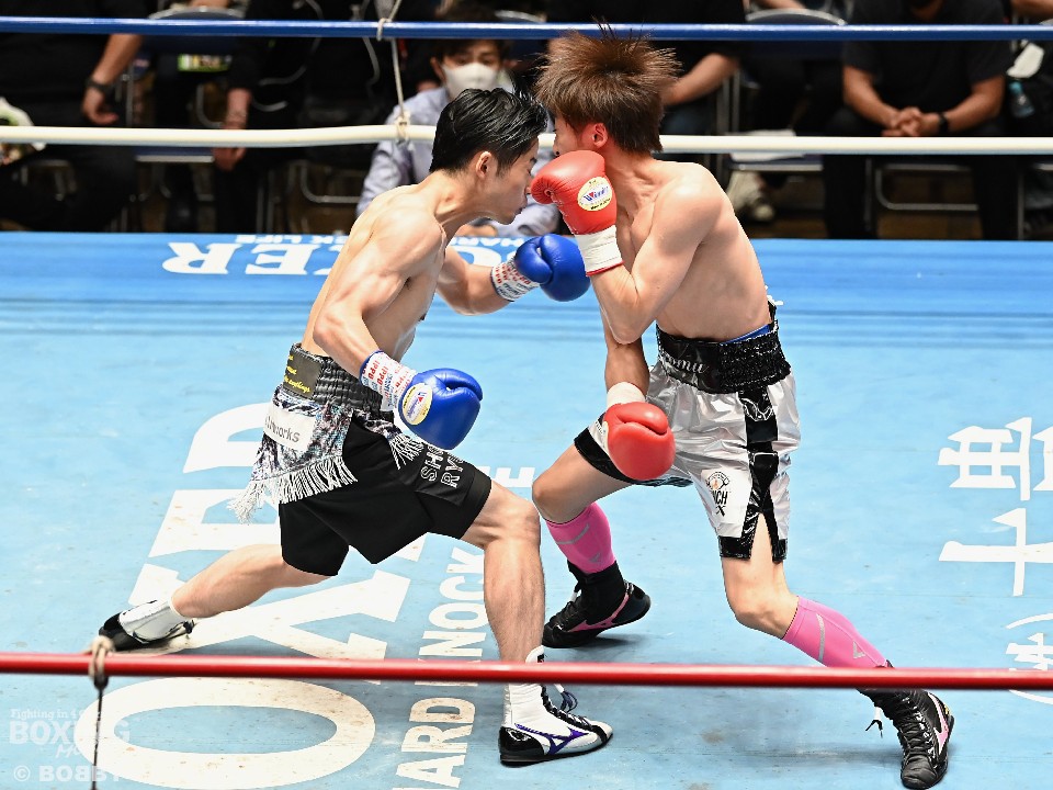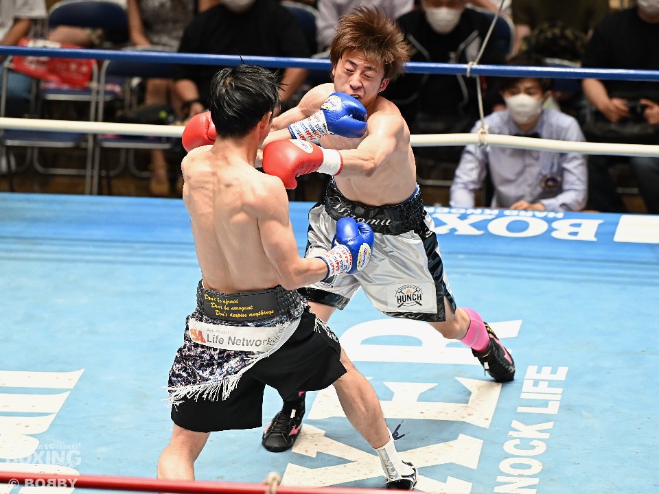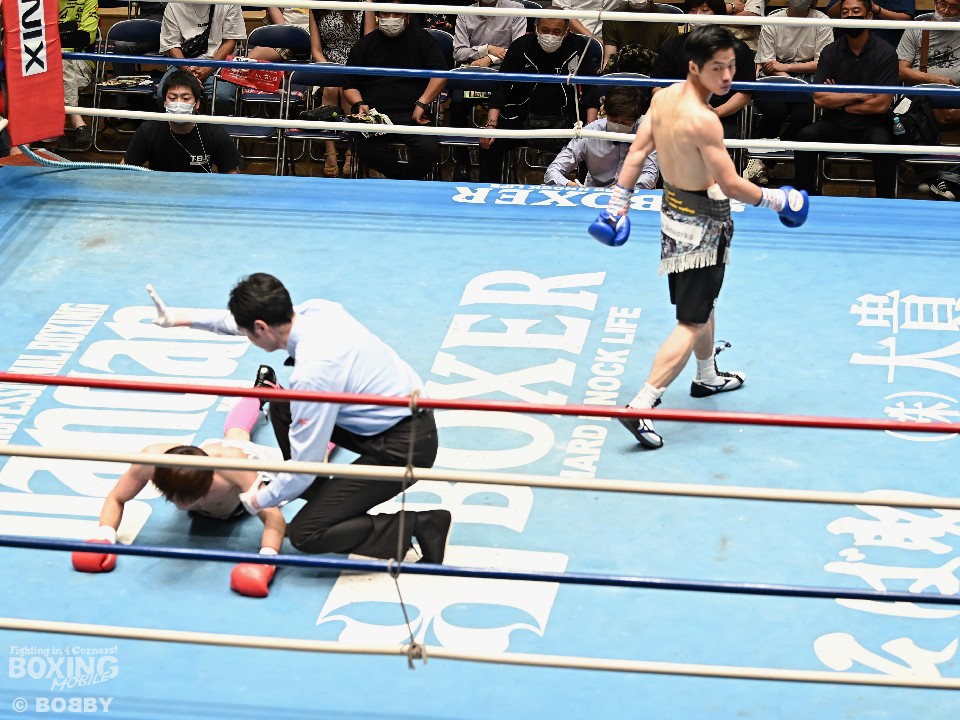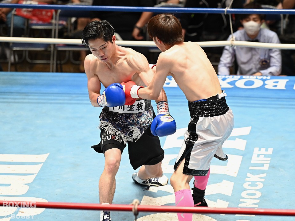 試合:サウスポー同士による一戦は、開始5秒で五十嵐が右フックでダウンを先取。立ち上がった荒木は懸命にパンチを返すが、五十嵐はキレのあるワンツーでダメージを与えると左ショートカウンターで2度目のダウンを演出。前のめりに倒れた荒木を見てレフェリーはノーカウントで試合を止めた。五十嵐が鮮やかなKO勝ちで初勝利を挙げた。