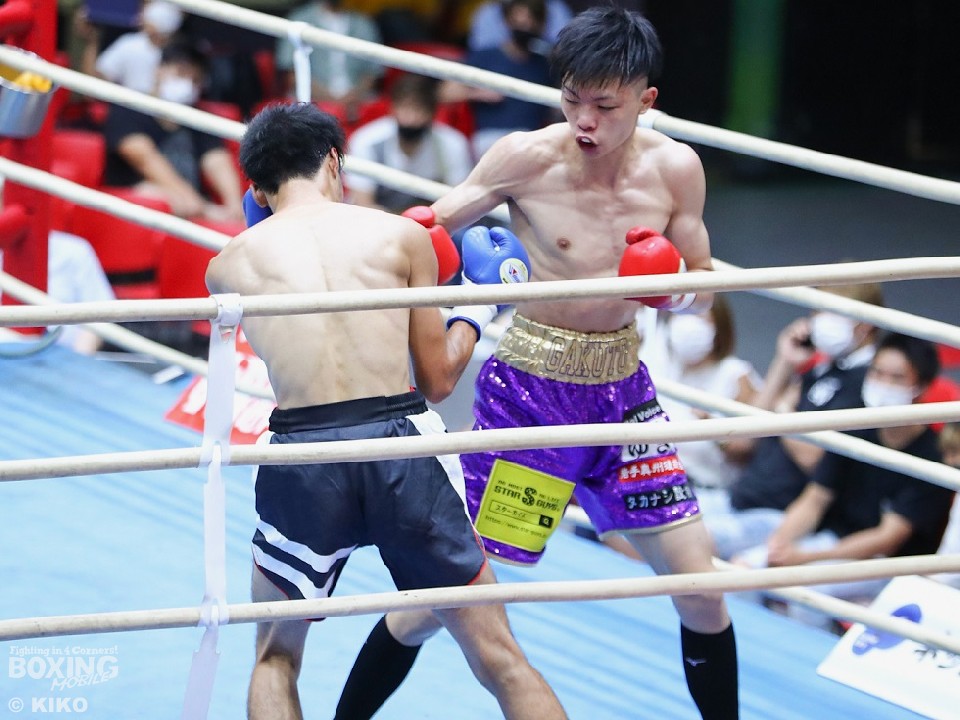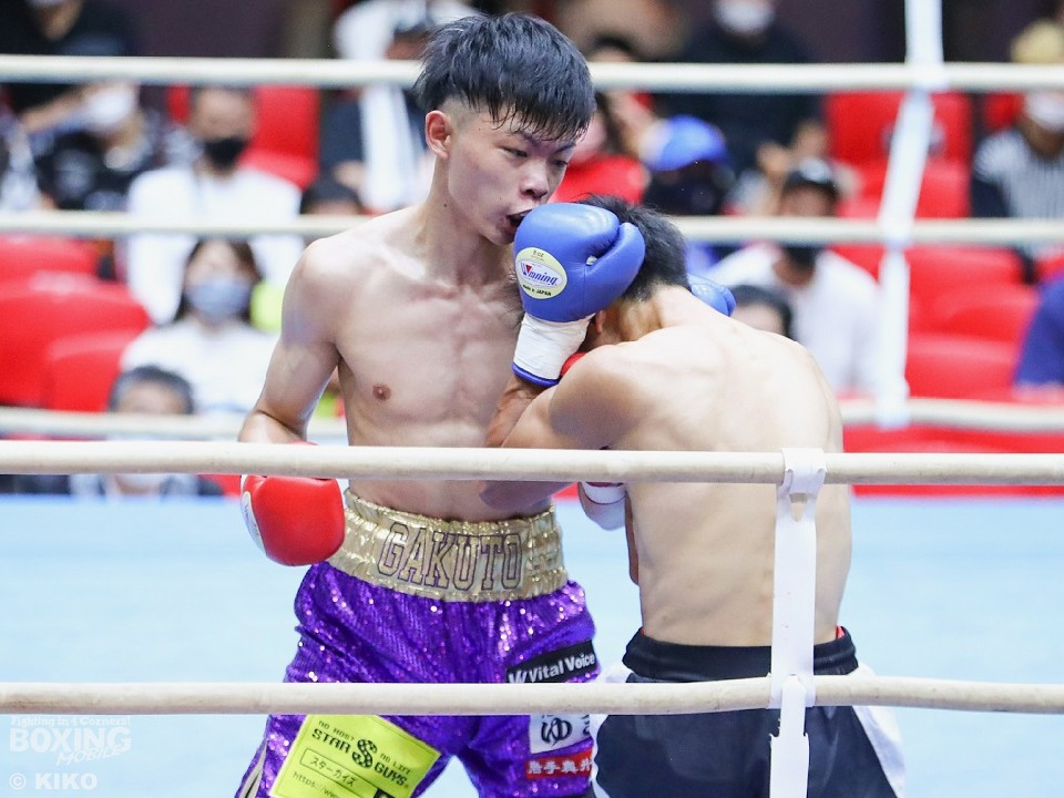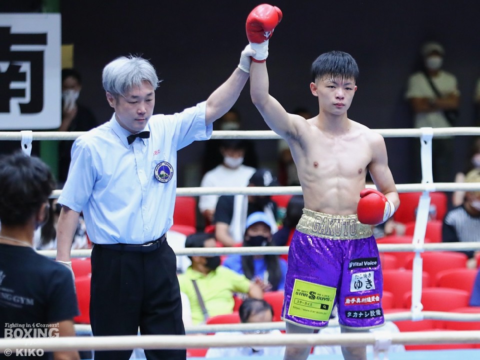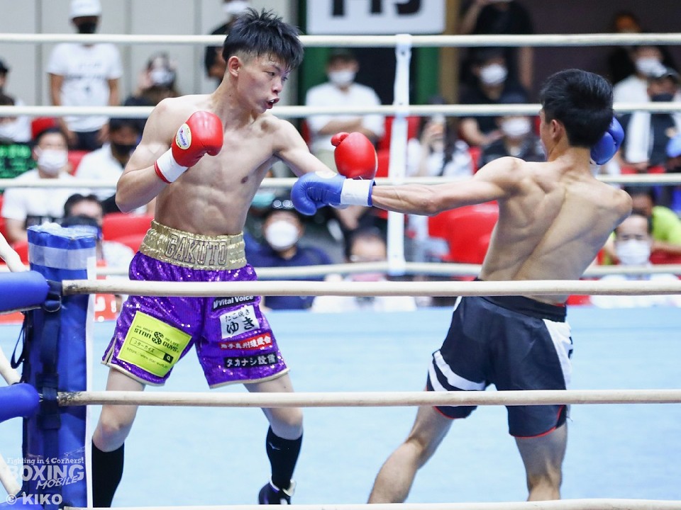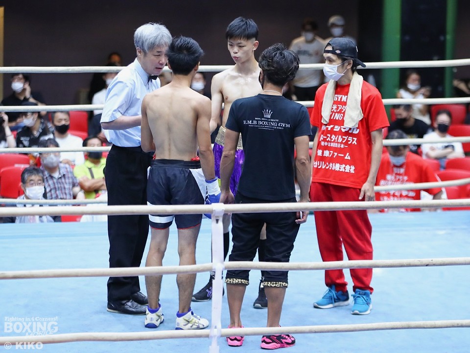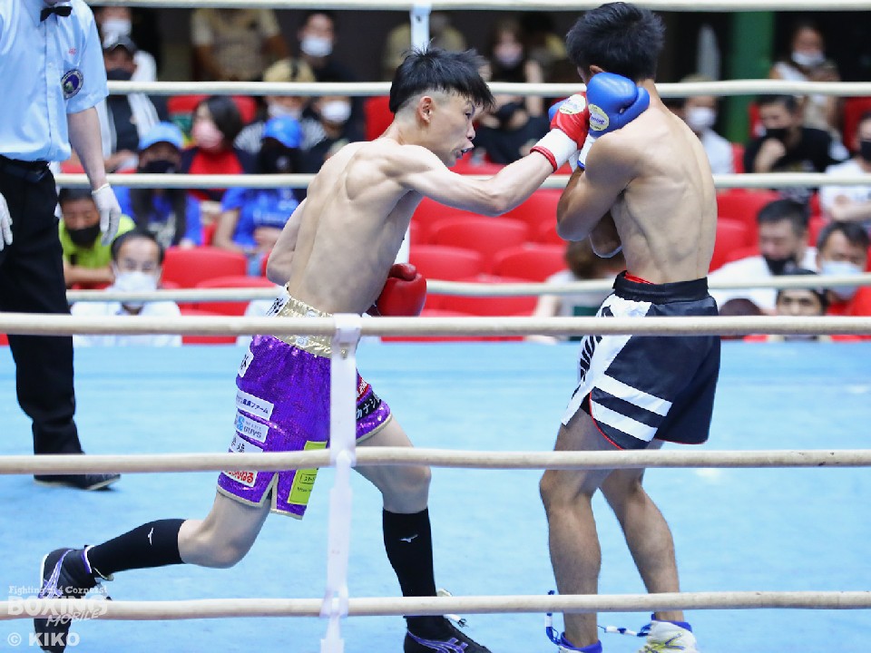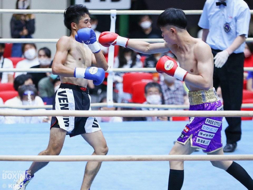 試合:東が長いリーチを活かし左フックを繰り出すが、山口は冷静に対応するとプレスをかけてワンツーをヒット。2回、山口はロープに詰めてワンツー、左フックを決めて積極的な攻撃を仕掛けた。3回、山口は右ストレートでコーナーまで吹っ飛ばすと圧力を強めてポイントを加点。終始、先に仕掛けた山口がフルマークの判定勝ちを飾った。