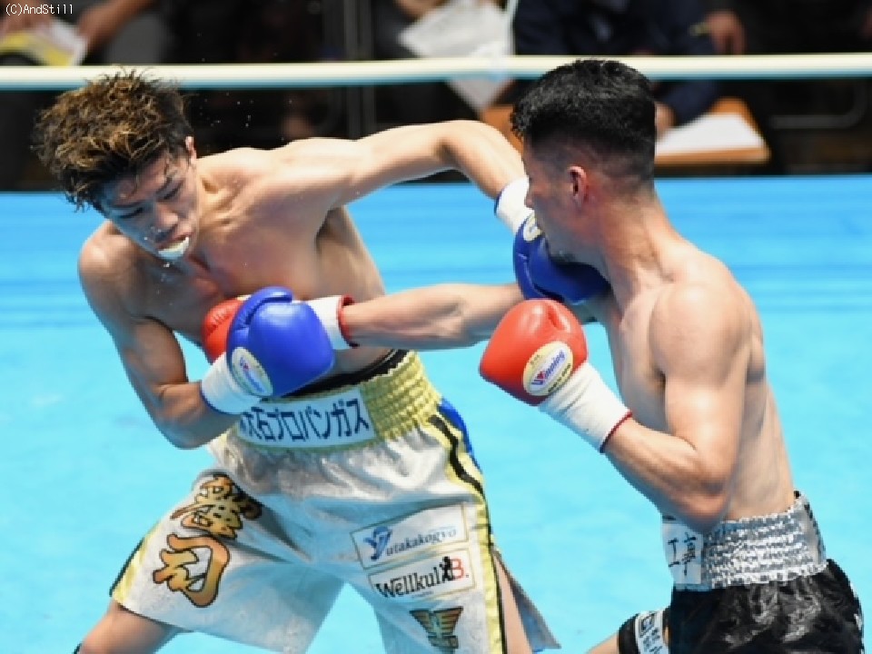 試合:アマチュア78戦55勝(26RSC)23敗の福森のデビュー戦。拳を交えるのは2020年東日本スーパーライト級新人王の兒玉。初回、サウスポー福森が左ストレートをヒット。しかし、兒玉は慌てずにじっくりと距離を測ると、右ストレートで顔を弾き攻勢。ボディにもパンチを入れて幸先の良いスタートを切った。福森は相手のパンチを正面で受ける場面が多い印象だ。3回、兒玉は相手の左に反応。ワンツーでグラつかせて右アッパーを織り交ぜた攻撃でダメージを与えた。その後、兒玉はロングレンジから単発の右ストレートをボディ、顔面へとヒットしポイントを加点。逆転を狙う福森はワンツー、左アッパーを打ち込んだが劣勢を挽回するまでには至らなかった。