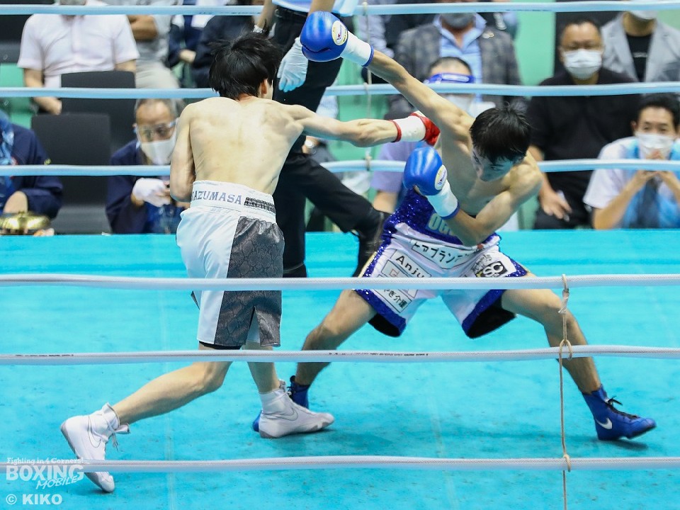 試合:プロ初勝利を目指す藤原とこの日がプロデビュー戦のサウスポー高橋。中間距離からタイミングを見て中に入る両者。距離を詰めて連打を打ち合う両者。各ラウンド先に手を出して当てた高橋がジャッジの支持を集めて僅差の判定勝利を掴んだ。