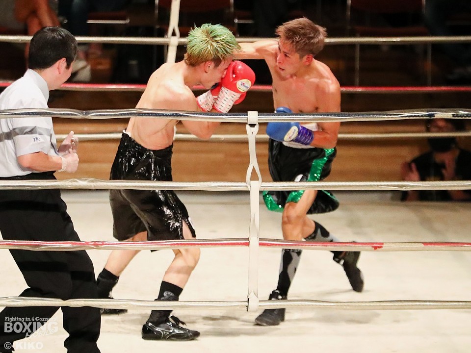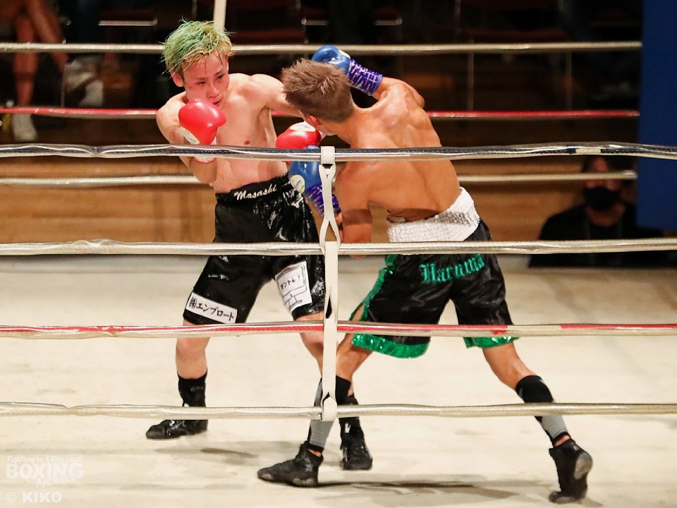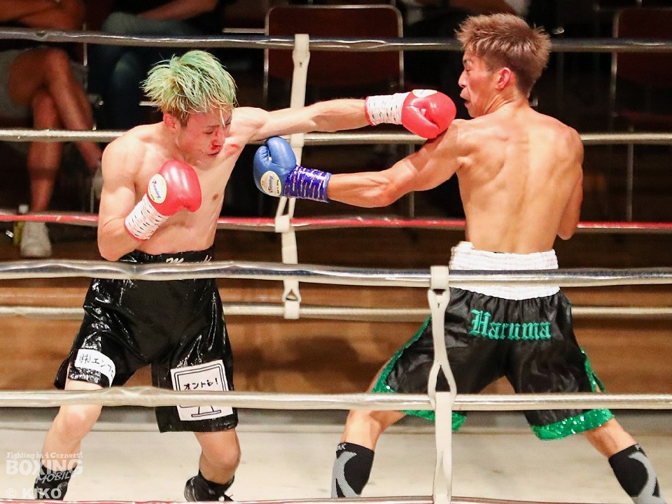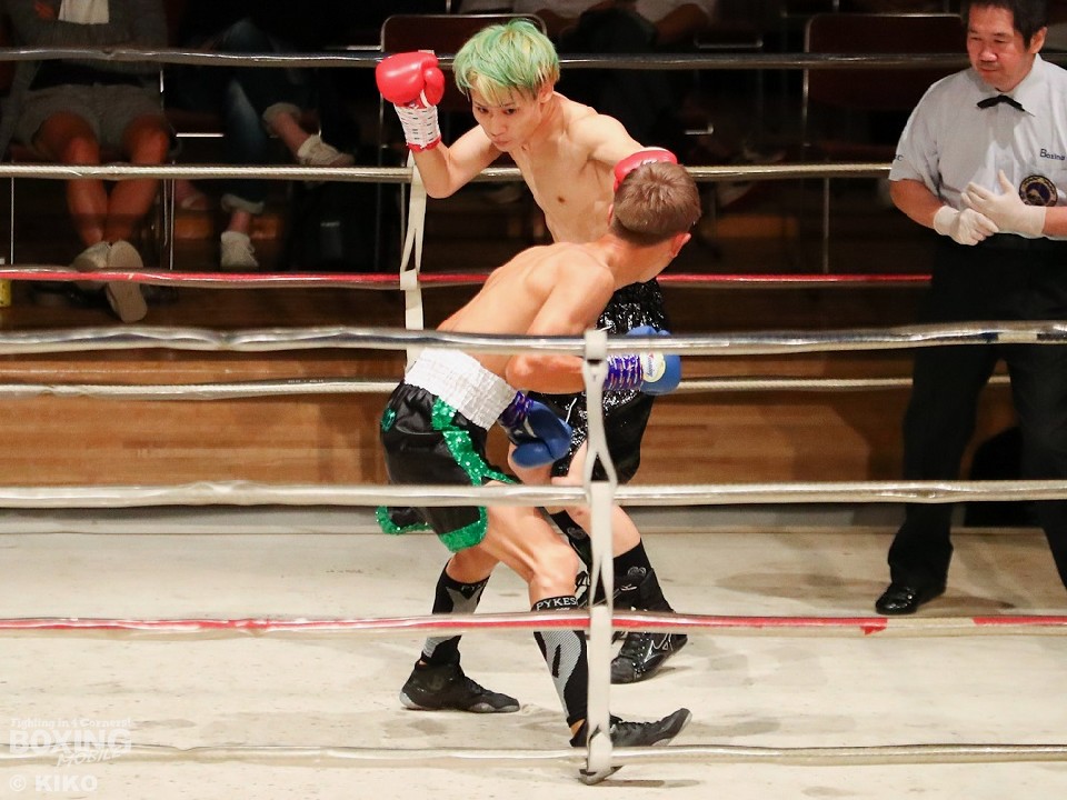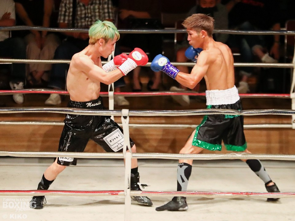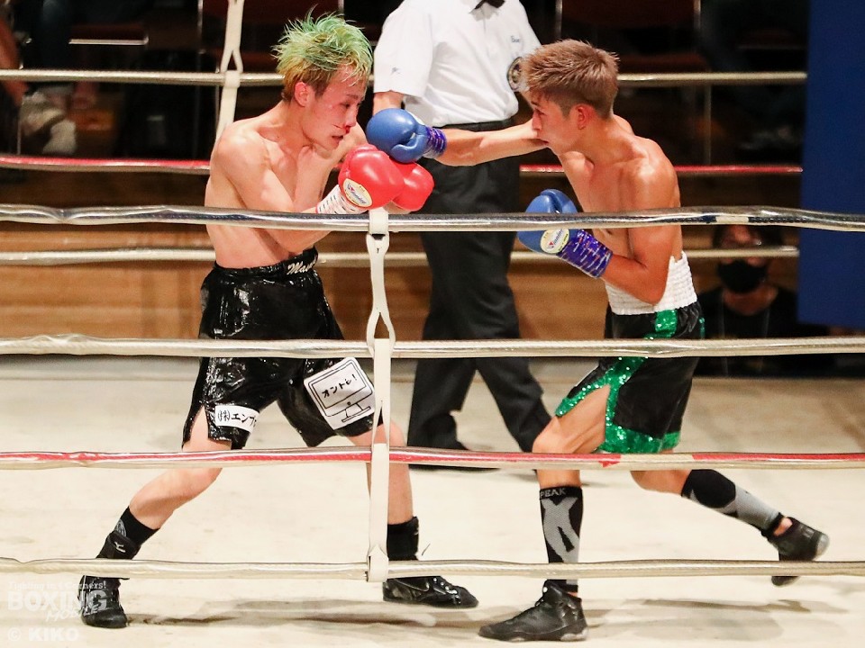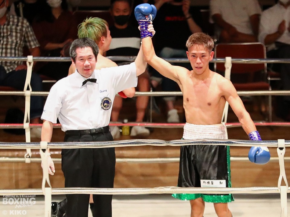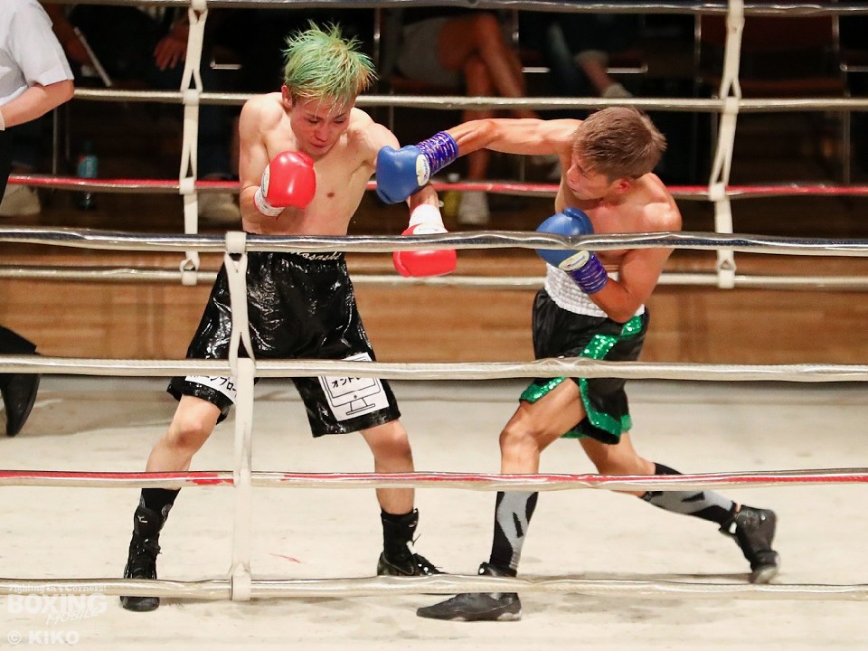 試合:ステップインから左フックで切り込む池田に対し、小川は冷静に見切ると右カウンターをヒット。2回も小川はワンツー連打で顔を弾き見栄えの良さをアピール。流れを変えたい池田は3回、距離を詰めるがパンチの振りが大きく空を切る。小川はワンツーを軸にポイントを重ねた。4回、小川は相手の攻撃を上手く捌きながら的確にパンチを決めて勝利のゴールテープを切った。