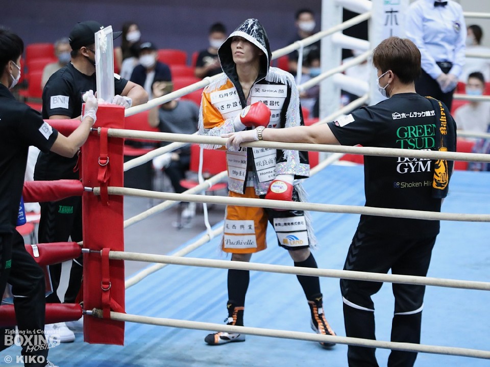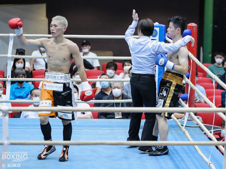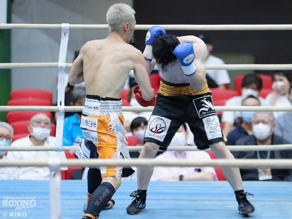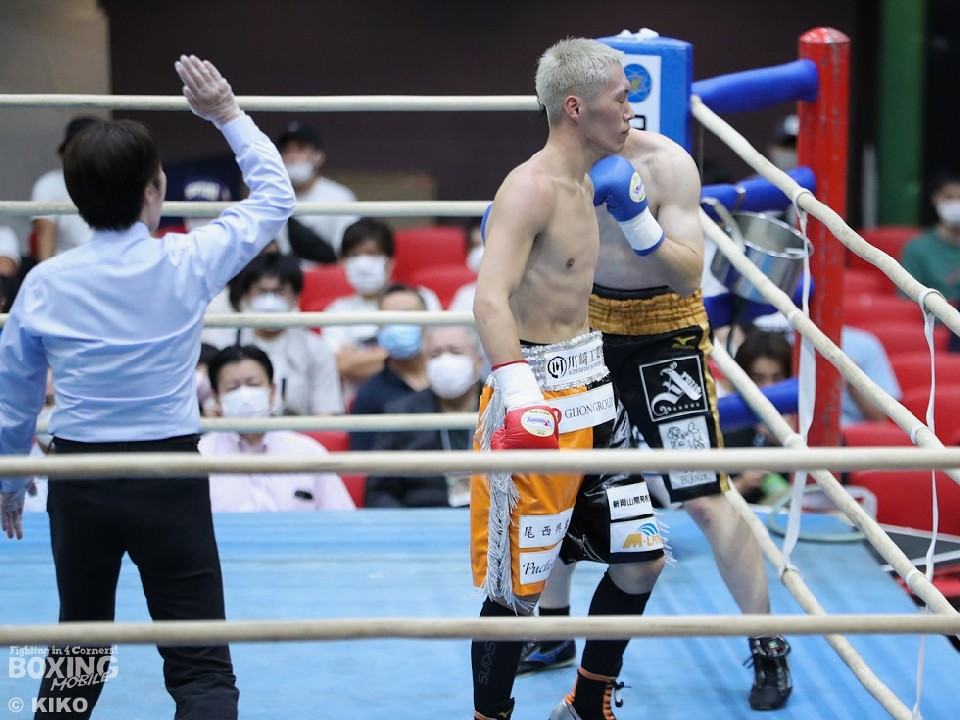 試合:三尾がジリジリと距離を詰めながらワンツーを繰り出すと右ボディを好打。これが約2年9ヶ月ぶりのリングとなるサウスポー星本は、左を返し対抗した。勝負が決まったのは2回。三尾は右フックでダウンを奪うと、攻撃の手を緩めずロープに詰めて連打で攻勢。防戦一方になった星本を見てレフェリーが試合を止めた。