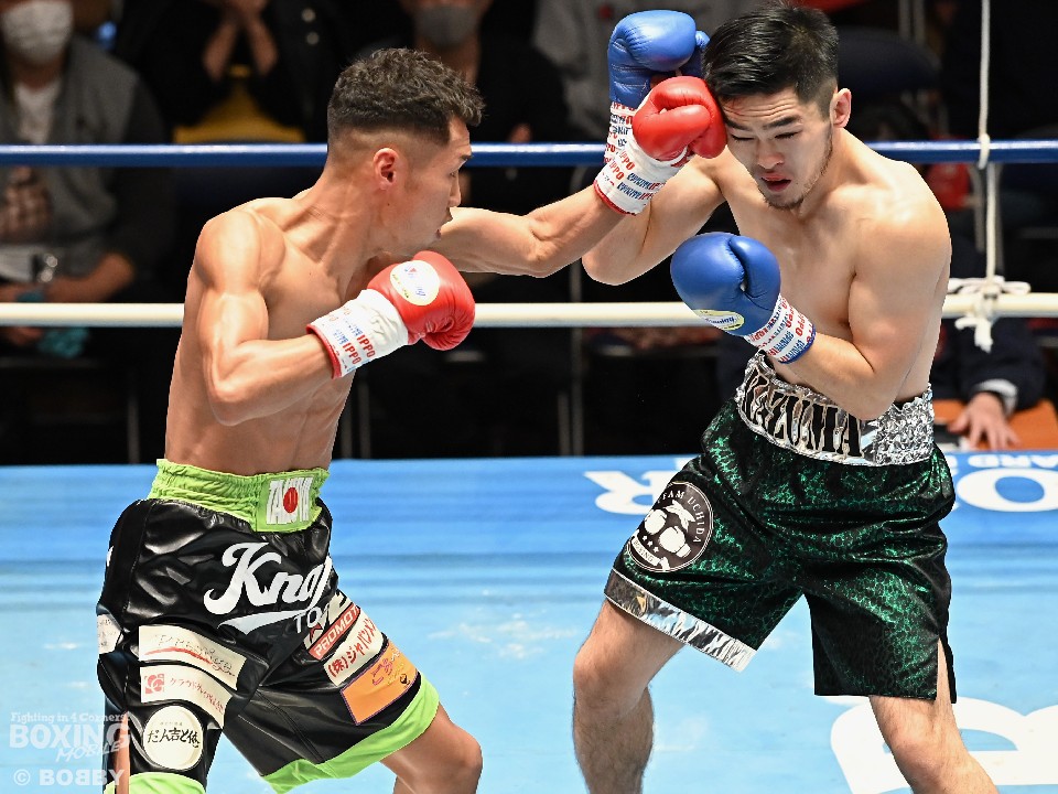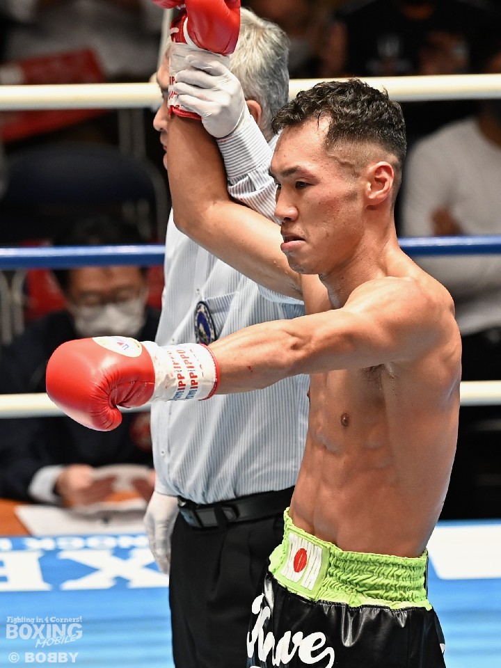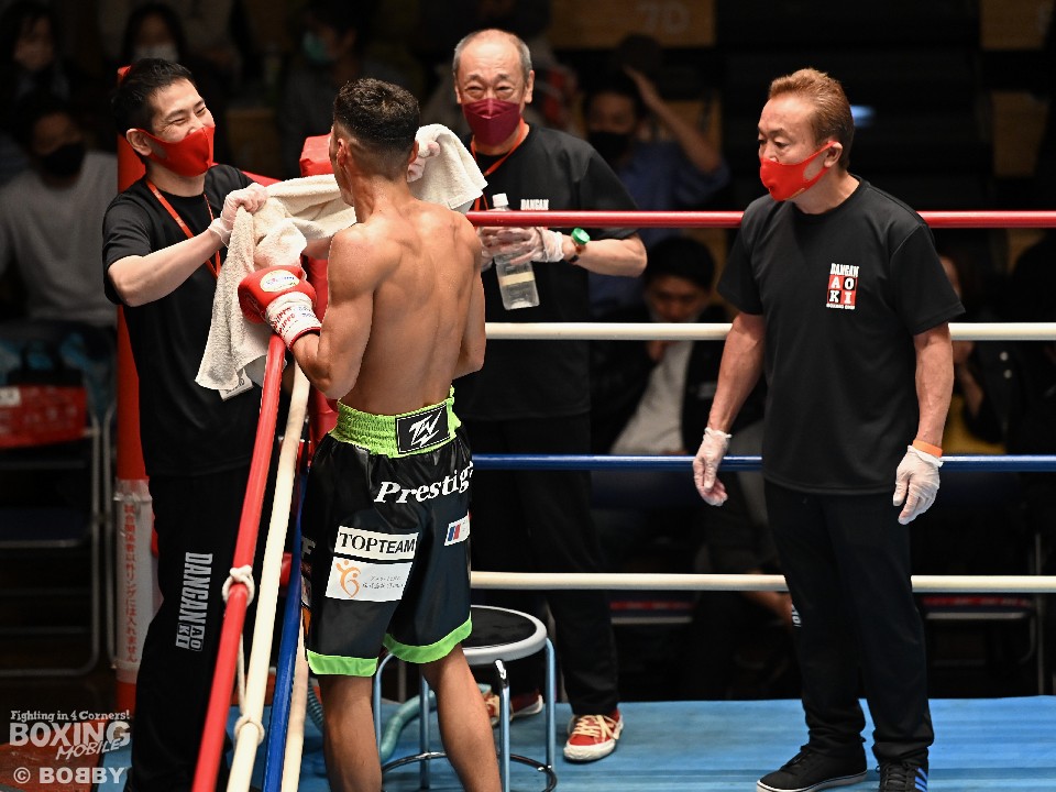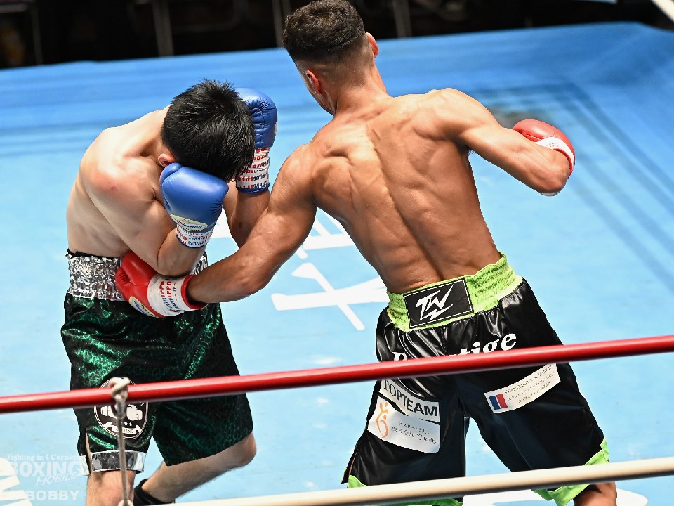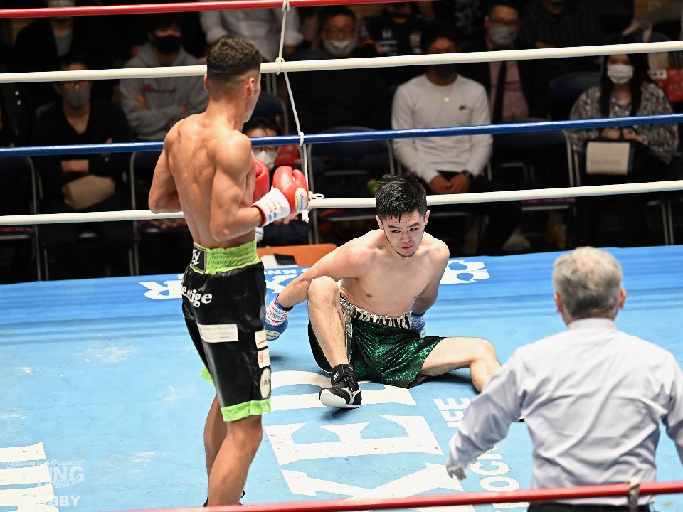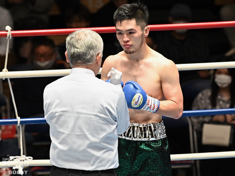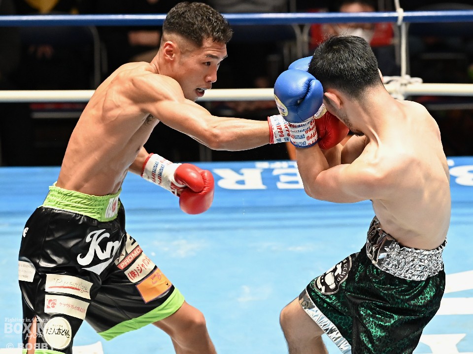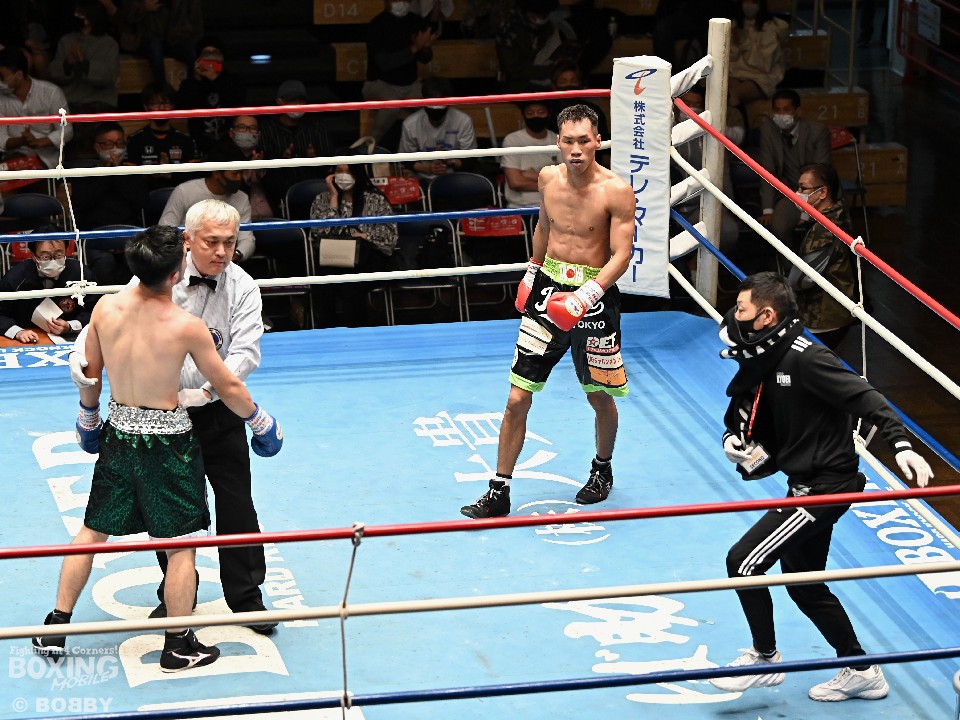 試合:スーパーフェザー級ランカー対決は、渡邉が右ボディストレートをヒットすると、前に出てくるサウスポー三瓶に対し右で迎え撃ち幸先の良いスタートを切る。2回、渡邉は上下に打ち分けダメージを与えると右ストレートでダウンを先取。立ち上がった三瓶は必死にパンチを繰り出すが、渡邉はチャンスを逃さず連打で攻勢。右フックでふらつかせたところでレフェリーが割って入った。渡邉が見事なKOで今年1月のタイトルマッチ以来の再起戦を勝利した。