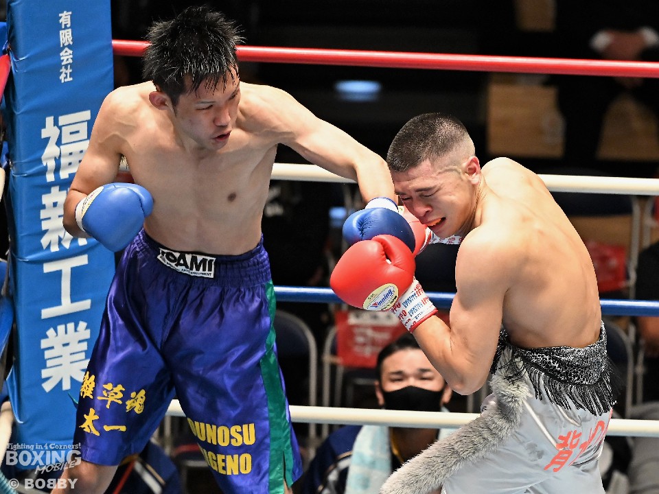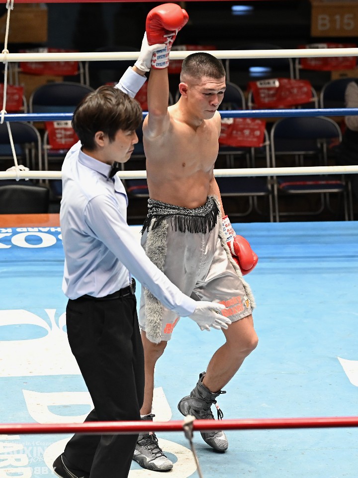 試合:中塚がショートアッパー、左ボディを好打。さらに右ストレートで顔を弾き上々のスタートを切った。太一は、被弾しながらも左フックを返した。2回、太一はボディにパンチを集めて反撃。しかし、中塚は手数を落とさず果敢に打ち合った。3回、中塚はワンツーでガクッと腰を沈めさせると、細かくまとめて攻勢。最終4回、お互いによく手を出す中、太一がボディ攻撃を繰り出せば中塚もショートパンチで最後まで譲らなかった。中塚が約2年ぶりに勝利した。