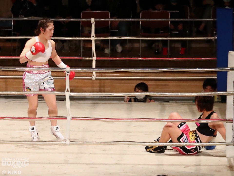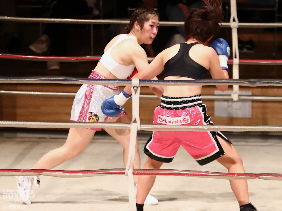 試合:テンポよく足を使って速いリズムで先に手を出す下野に対して、吉川は落ち着いて、左ボディ、右ストレート、を当ててダメージを与えると2回、左右のコンビネーションでダウンを奪った。リングを大きく使いながら、軽快なステップワークでリズムを作った吉川が右ストレートと左ロングアッパーでポイントを稼いだ。下野も右ストレートから左を返して、手数で速いテンポのリズムで先に仕掛けたが、吉川の落ち着いたカウンターに中に入りきれなかった。