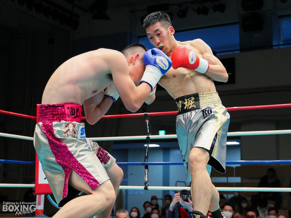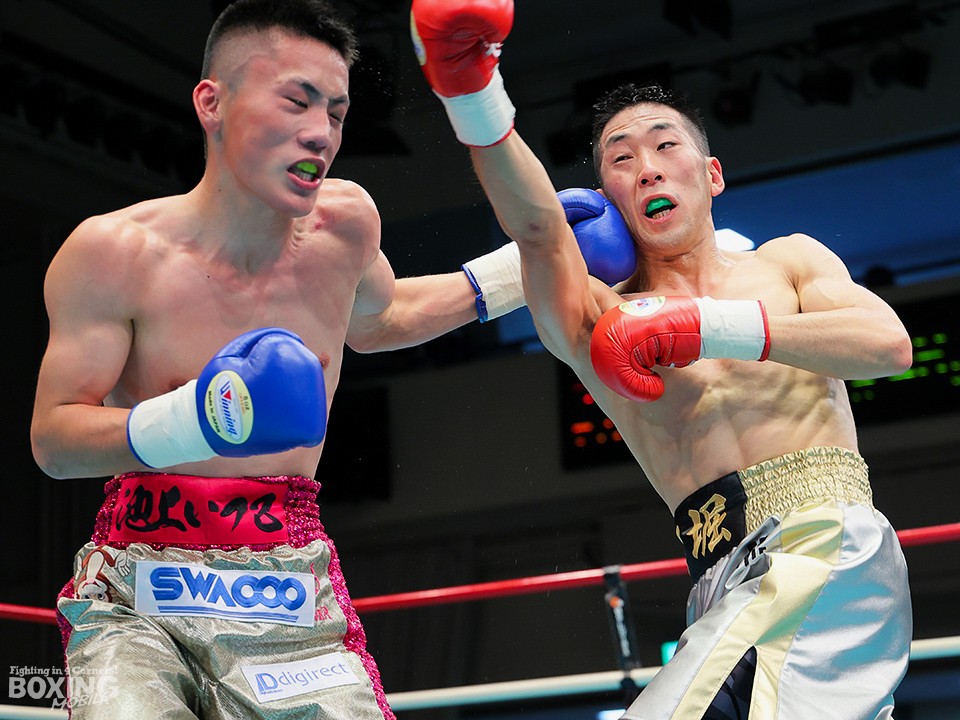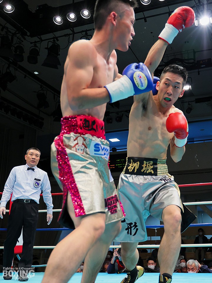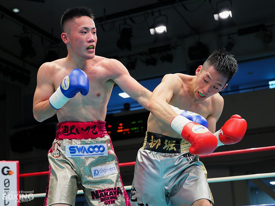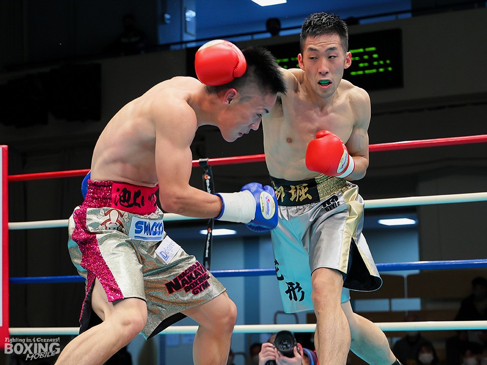 試合:リングを大きく時計回りに動きながらジャブを突く栁堀をリング中央から池上はガードを固めて距離を詰めていく。右ストレートを上下に打ち分ける栁堀に対して、距離が寄ると左フックを打った池上。栁堀は右アッパーをコンパクトに打ち上げてタイミングを合わせた。3回、池上が右ストレートをヒット。顔面を弾かれた栁堀は追撃を免れるために前に出て手を出した。最終回、右アッパーを連打して前に出る池上に足を使って距離を外しながら右を狙った栁堀。最後まで接近戦で打ち合った両者。ダウンは奪えず判定へ。