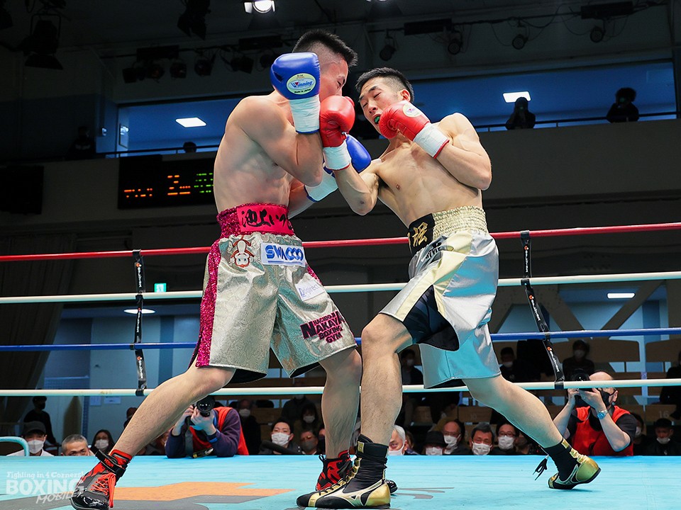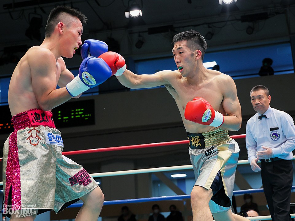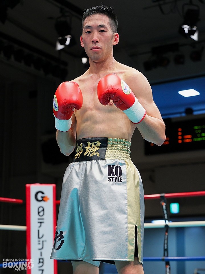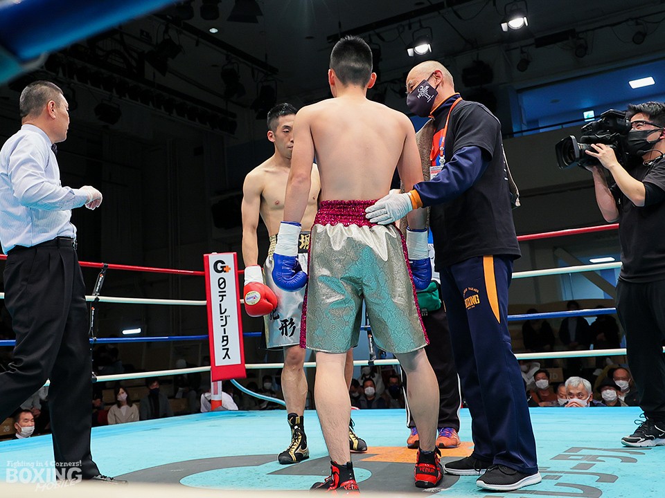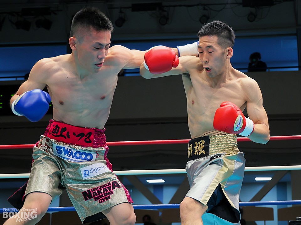 試合:リングを大きく時計回りに動きながらジャブを突く栁堀をリング中央から池上はガードを固めて距離を詰めていく。右ストレートを上下に打ち分ける栁堀に対して、距離が寄ると左フックを打った池上。栁堀は右アッパーをコンパクトに打ち上げてタイミングを合わせた。3回、池上が右ストレートをヒット。顔面を弾かれた栁堀は追撃を免れるために前に出て手を出した。最終回、右アッパーを連打して前に出る池上に足を使って距離を外しながら右を狙った栁堀。最後まで接近戦で打ち合った両者。ダウンは奪えず判定へ。
