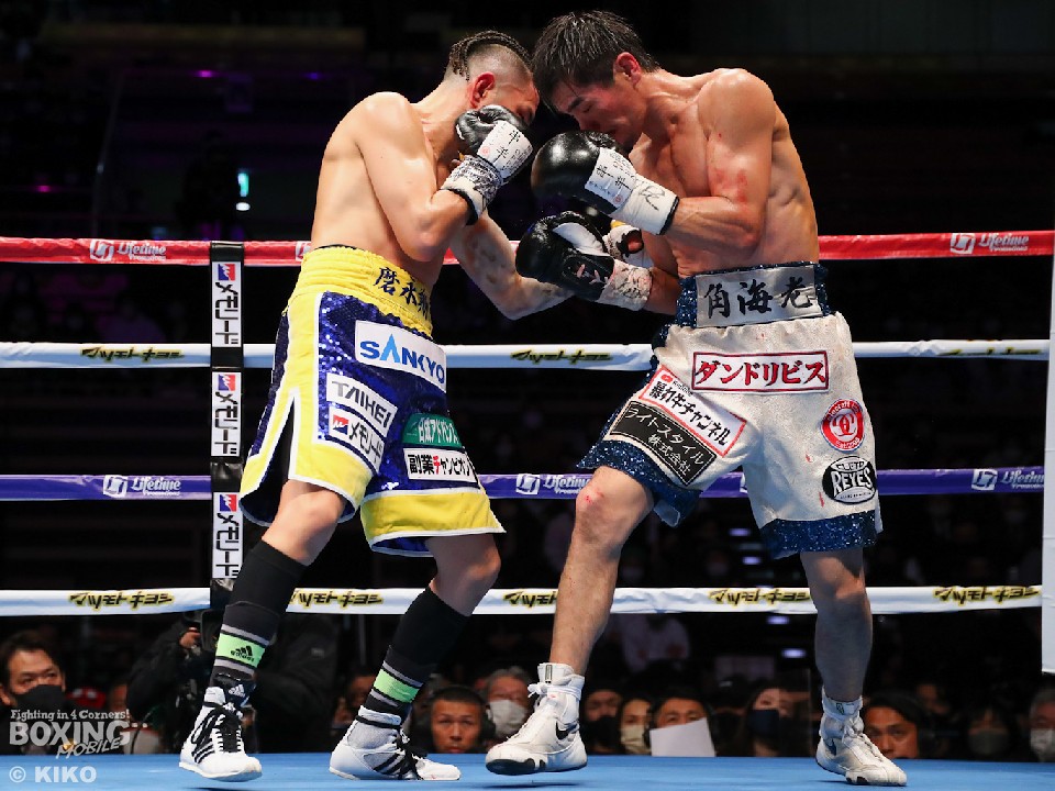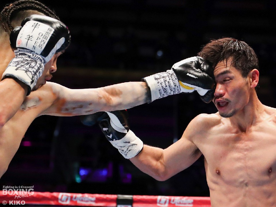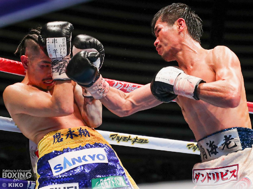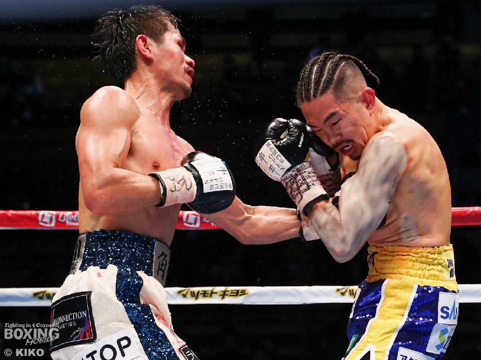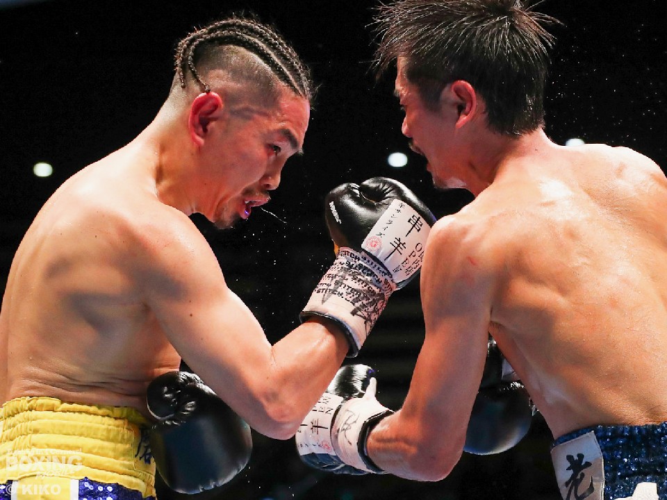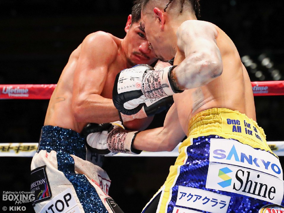 試合:今年で10回目の大みそかのリングに上がった井岡。挑戦者は「リトルパッキャオ」のニックネームを持つ強打者の福永。初回、サウスポー福永は、リードを出しながら左ストレートを伸ばすが、井岡は冷静に対応。プレスをかけながら右ストレートを合わせた。2回、井岡は左ボディを痛打し動きを止めにかかるが、福永も回転力を活かした連打で応戦。しかし、井岡の右ストレートが顔面を捉えはじめた。3回、福永は井岡のボディ攻撃に怯むことなくパンチを返すとワンツーで顔をのけぞらせて反撃。4回、井岡は左フックでバランスを崩させると、左フック、ワンツーを決めて攻勢。6回、左ストレートをねじ込みにいく福永だが、井岡は芯を外すとパンチの的確さで上回った。7回、井岡のコンビネーションが冴えてくる。被弾した福永だが、必死にワンツーを返し食い下がった。9回、福永は左ボディストレートを決めると積極的な攻撃を展開。井岡はこのラウンド休んだのか手数が少ない。10回も先に仕掛けたのは福永。井岡は距離を取りながらカウンターを狙った。11回、福永はロープに詰めて豊富な手数で攻める。しかし、井岡はブロックで決定打を外すと、右ストレートで顔を弾いた。最終12回、井岡は相手のパンチを見切り巧みな試合運びでポイントを重ねた。2~8ポイント差をつけた井岡が4度目の防衛に成功した。