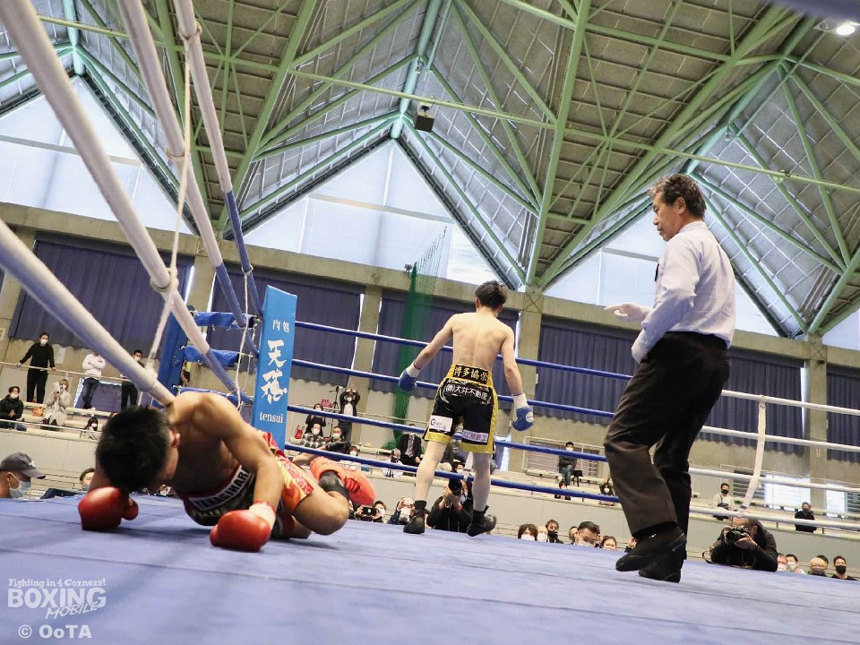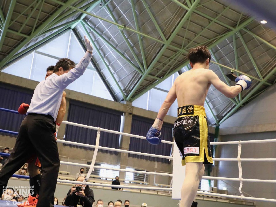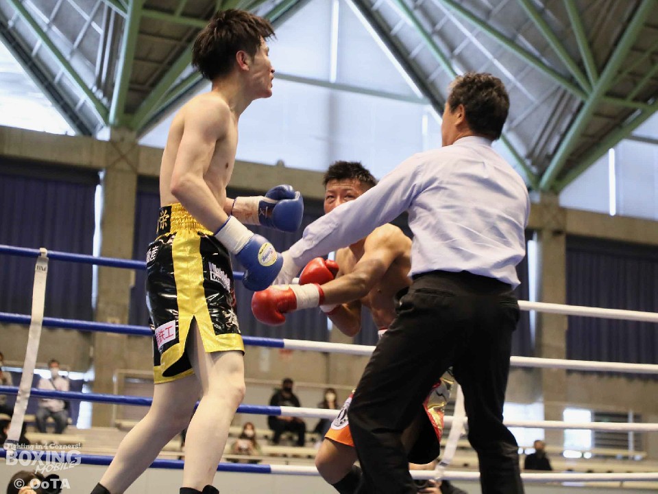 試合:亀田はプレスをかけてジャブ、踏み込んでワンツーでプッシュし、攻勢をかける。江見は上体を柔らかく使いリズムをとりながらジャブ、フックを振ると右ストレートで顔を弾き、対抗した。2回、江見はパンチを外しながら前に出てくる亀田に右フックを好打。フック、ボディと上下にパンチを打ち分けリズムを作る。3回、江見はプッシュして前に出る亀田に右ストレートでダウンを奪う。4回、鼻血を出しながら挽回を図る亀田に対し、江見は攻撃の手を緩めず、右フックで顔を弾くとダメージの蓄積を見たレフェリーが割って入った。江見はデビュー戦をKO勝利で飾った。
