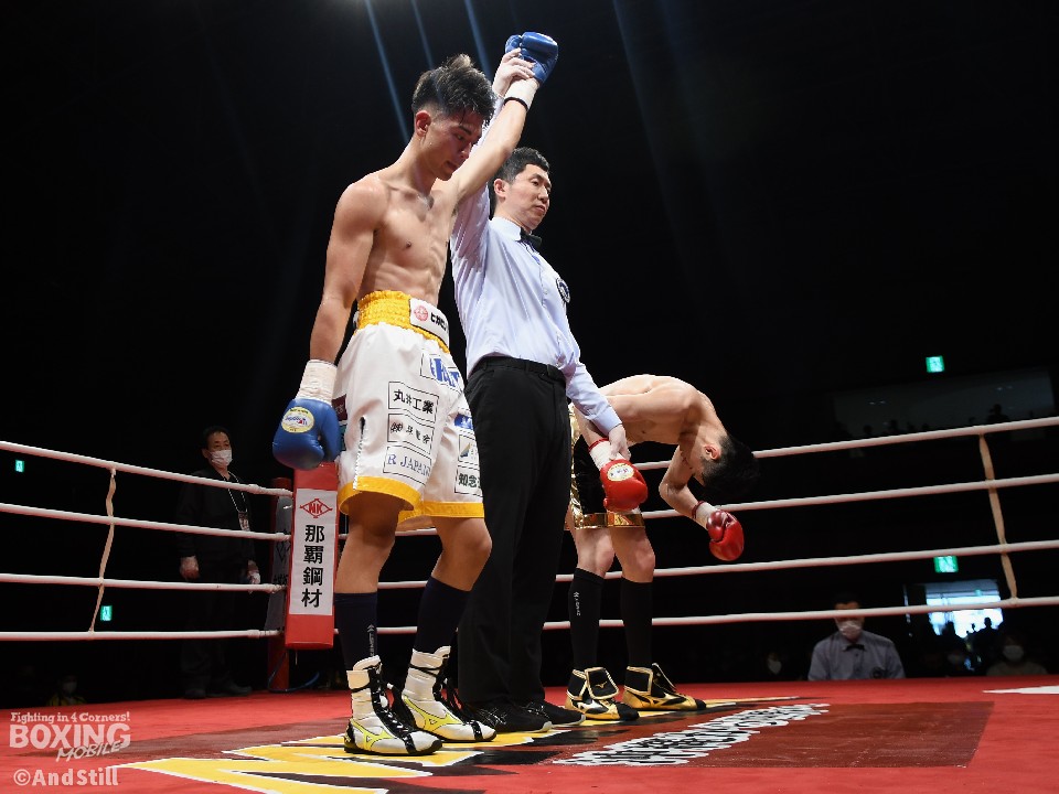 試合:前の手でタイミングを測り山内はワンツーを繰り出すと、サウスポー具志堅はワンツー、左ボディーストレート、左フックと打ち込んで攻撃のリズムを作る。2回、具志堅はパンチを外しながら左ボディ、左ストレートを繰り出すと右フックを好打。ラウンド終盤には左ボディストレートを合わせて主導権を握る。3回、山内はワンツーで前に出て攻勢をかけるが、具志堅は右フック、左ボディを突き刺しジャッジに攻勢をアピール。最終回、具志堅は相手のパンチを見切りボディ、右アッパー、左ストレートと突き刺し、相手にダメージを着実に与えた。ジャッジは三者とも具志堅を支持。デビューから連勝を飾った。