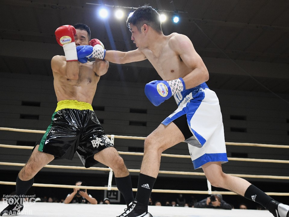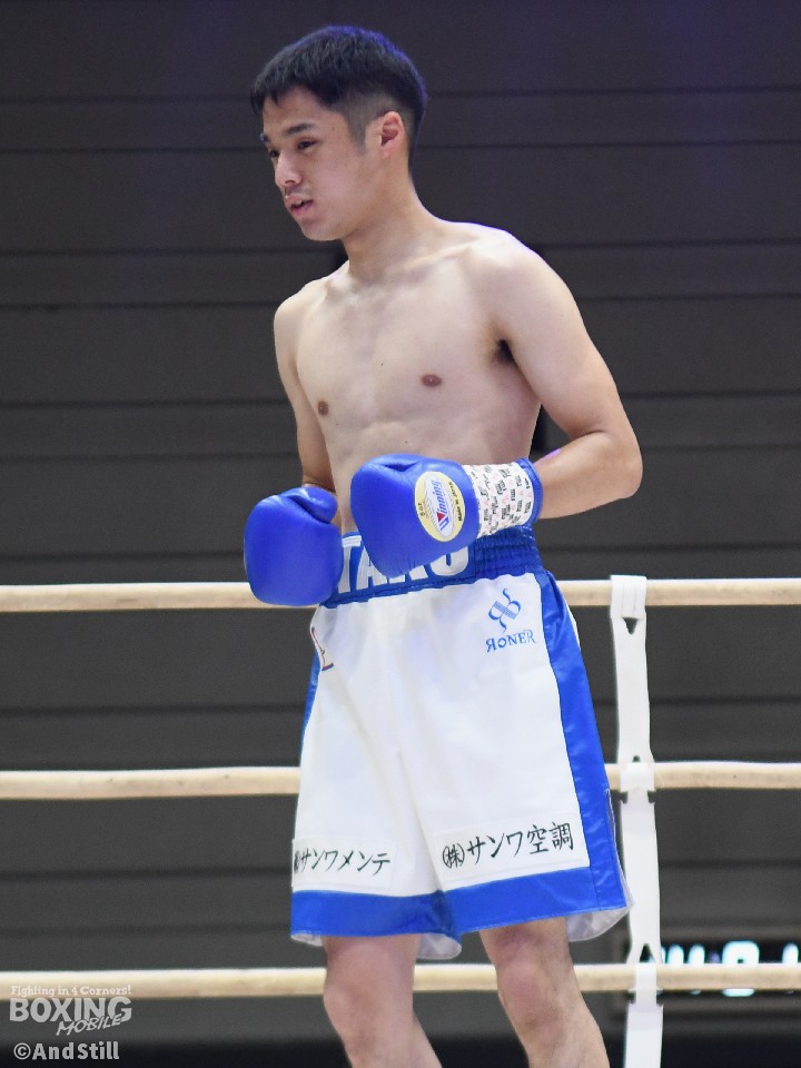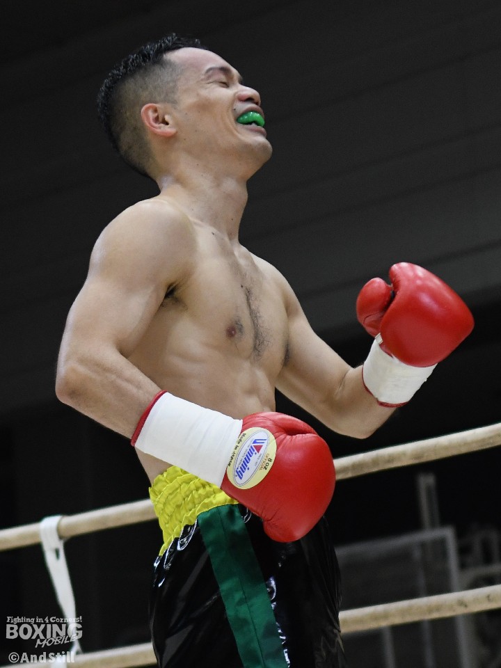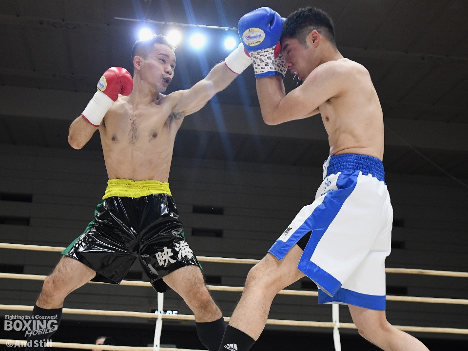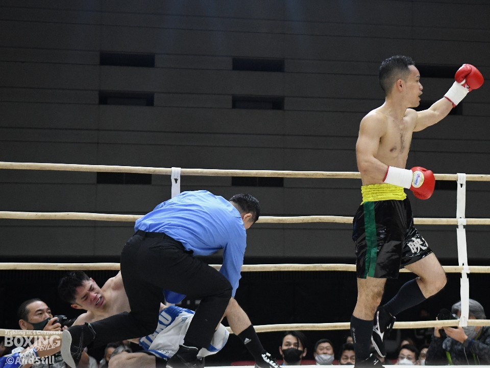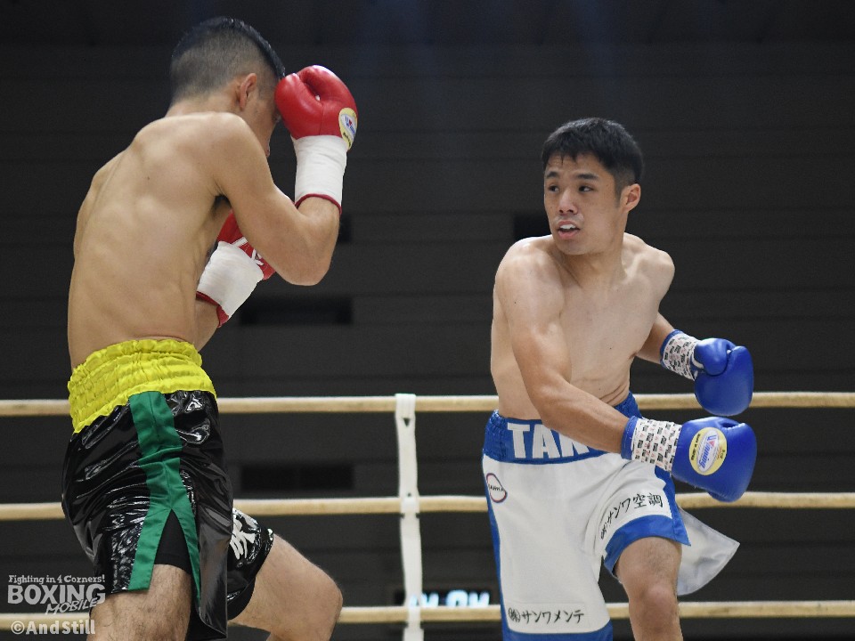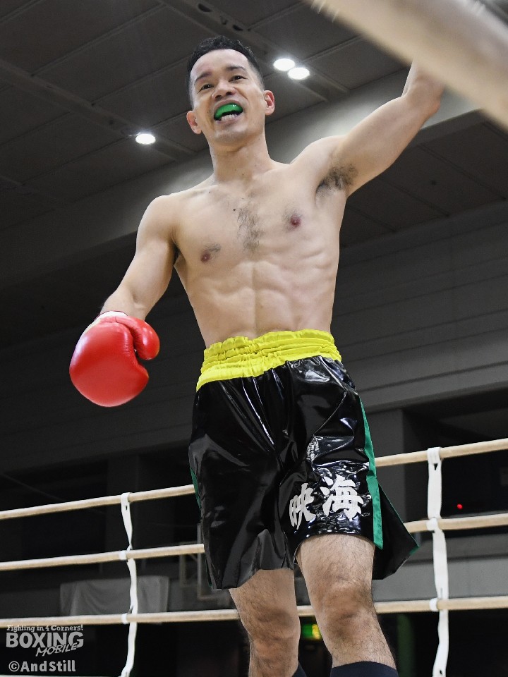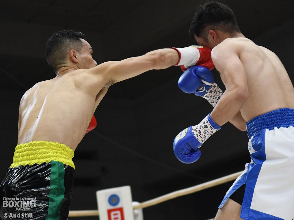 試合:岡橋がリングを大きく使いながらジャブで距離を探るのに対し、ハンマーは右オーバーハンドで対抗。岡橋は相手のパンチをブロックしパンチの軌道を確かめた。2回、岡橋はワンツーでグラつかせると右をフォローしてダウンを奪うとレフェリーはノーカウントで試合をストップした。35歳の岡橋が初勝利を挙げた。