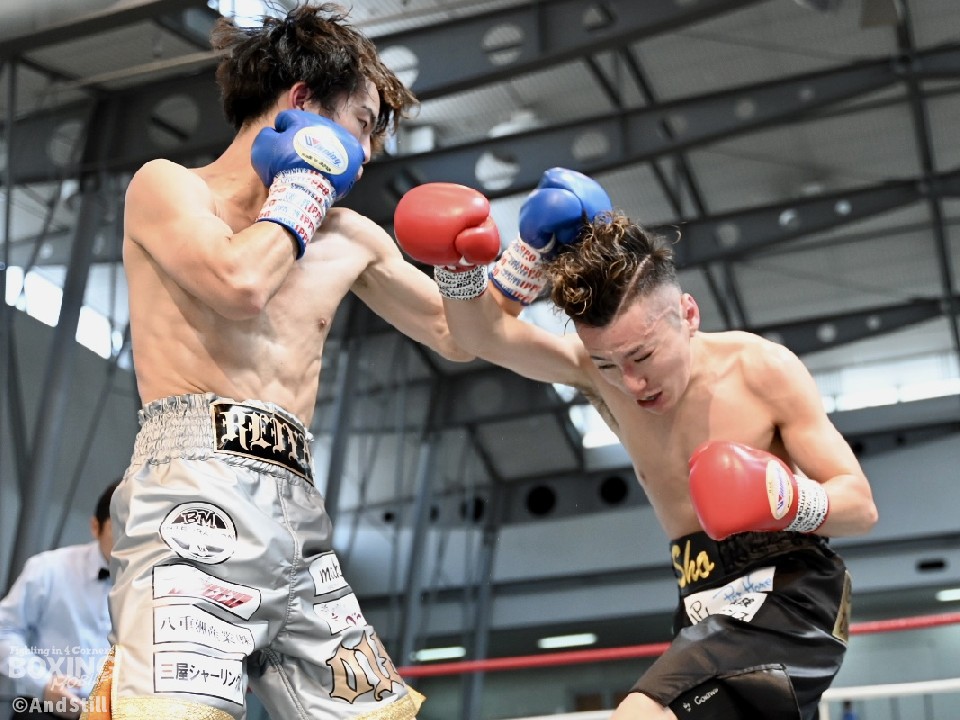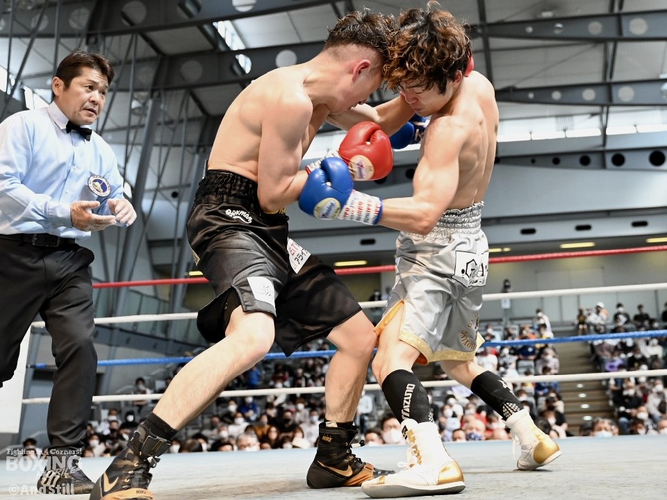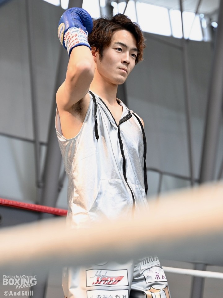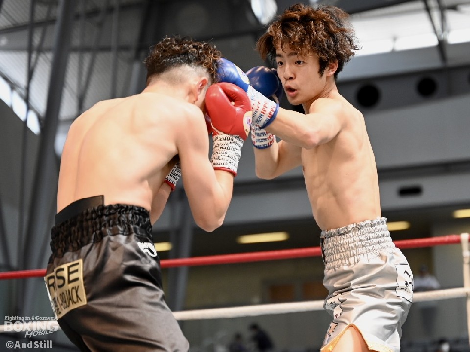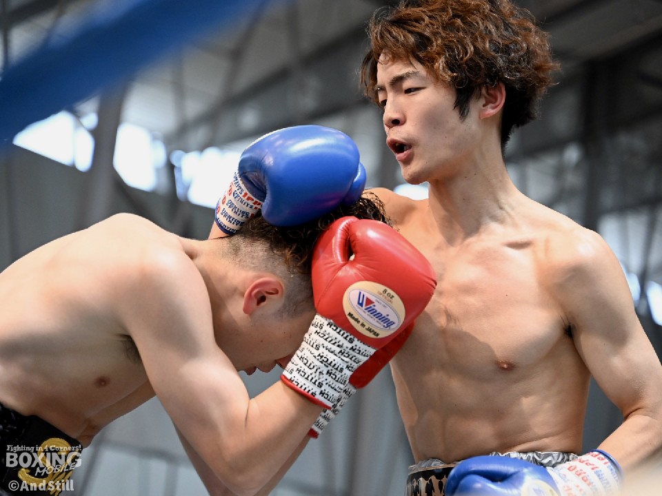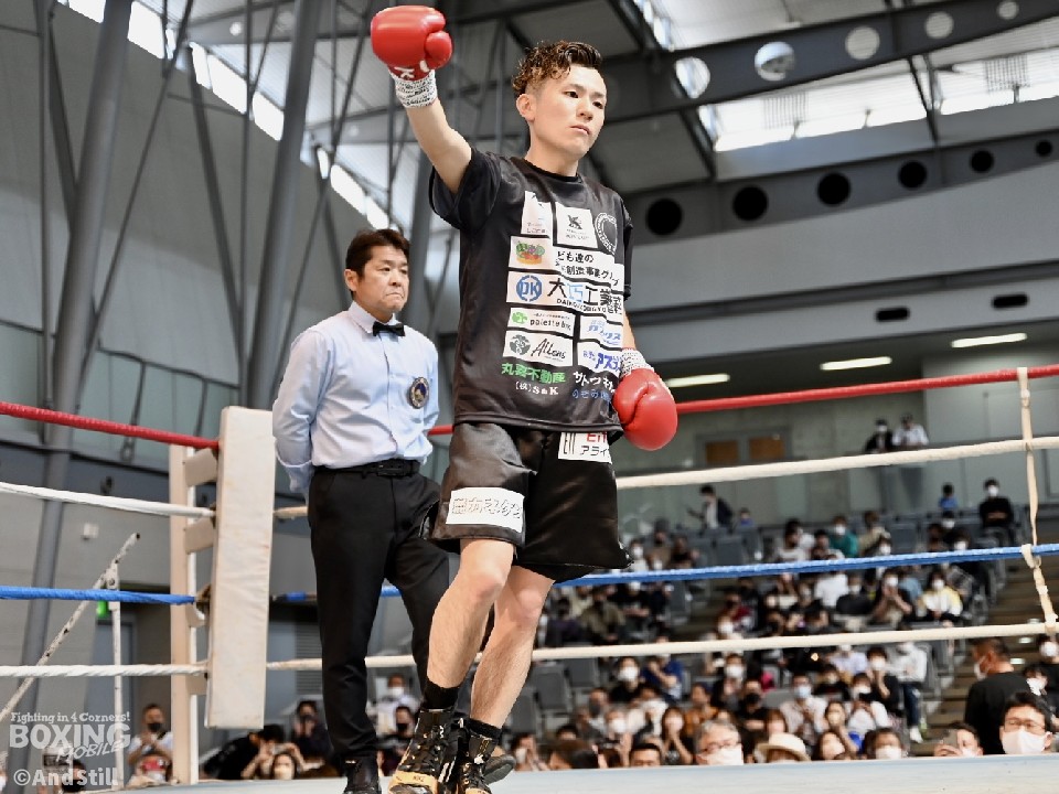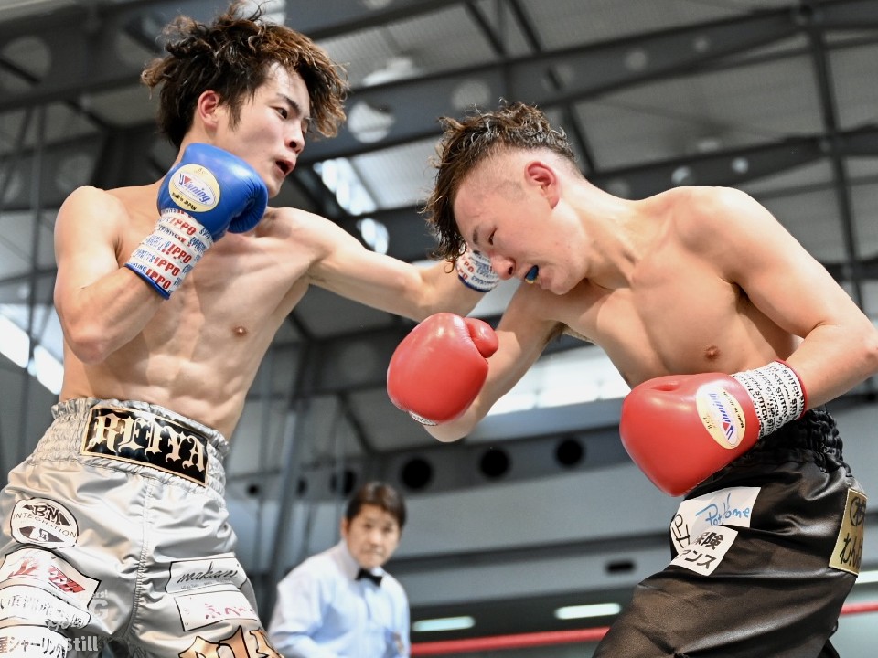 試合:辻本が左を上手く使い分けながら組み立てると、右ショートアッパーを好打し幸先の良いスタート。2回、辻本はプレスをかける赤塚に対し、左ボディで迎え撃つと接近戦でも左のダブル、ワンツーを決めてペースを維持。3回も辻本は、打ち終わりに左フックを決めるとフィジカルでも押し負けず。守勢を強いられた赤塚は4回、手数を増やすが、辻本は左ボディからコンパクトな左フックで最後まで主導権を渡さなかった。