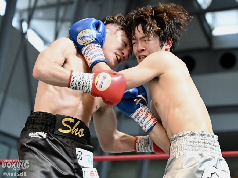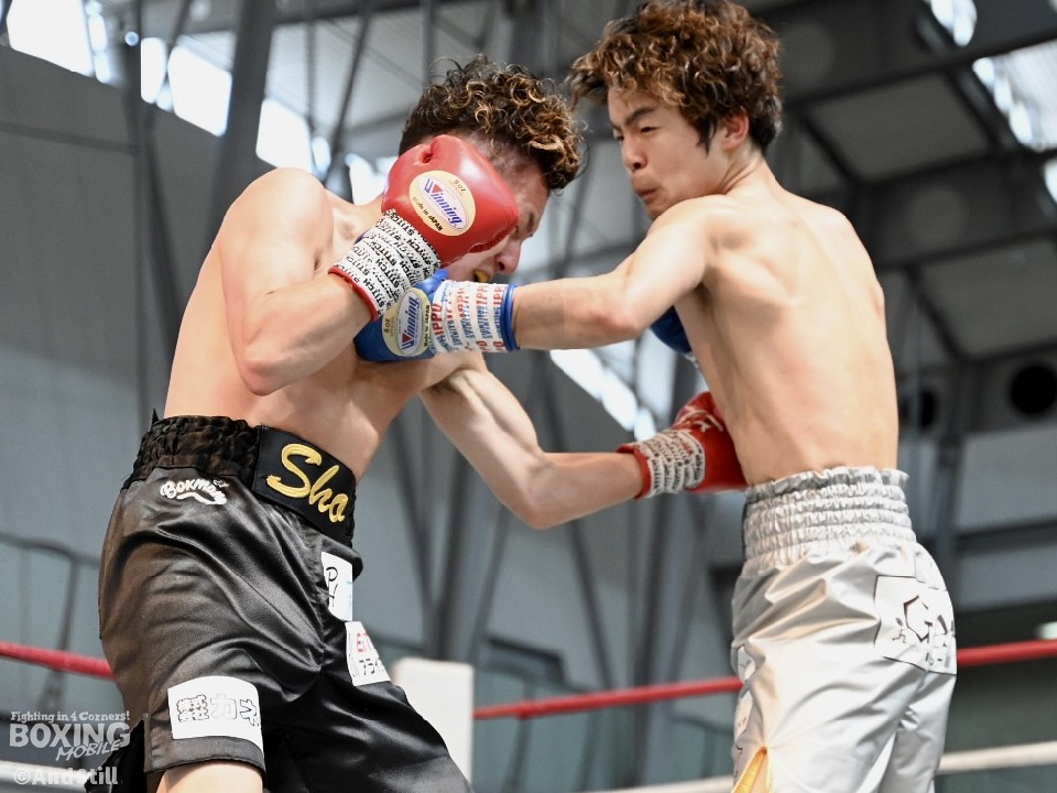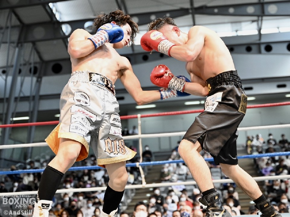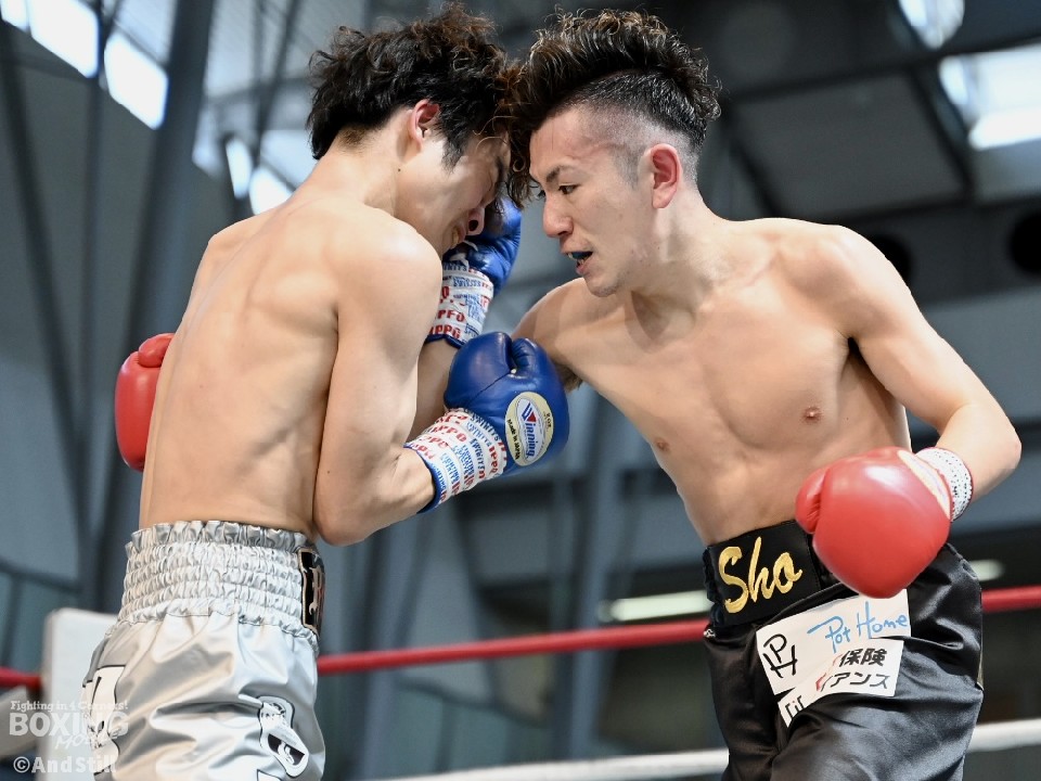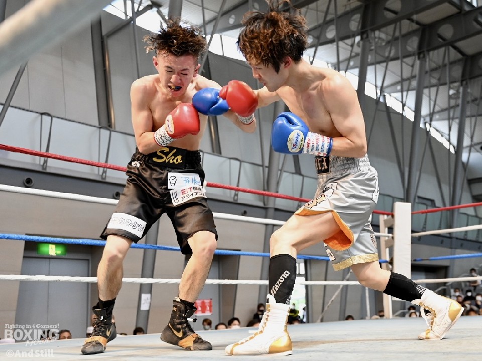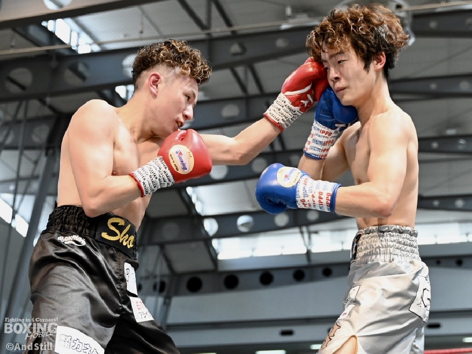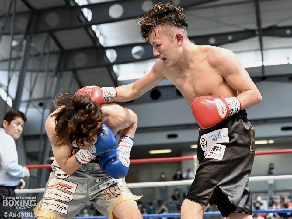 試合:辻本が左を上手く使い分けながら組み立てると、右ショートアッパーを好打し幸先の良いスタート。2回、辻本はプレスをかける赤塚に対し、左ボディで迎え撃つと接近戦でも左のダブル、ワンツーを決めてペースを維持。3回も辻本は、打ち終わりに左フックを決めるとフィジカルでも押し負けず。守勢を強いられた赤塚は4回、手数を増やすが、辻本は左ボディからコンパクトな左フックで最後まで主導権を渡さなかった。