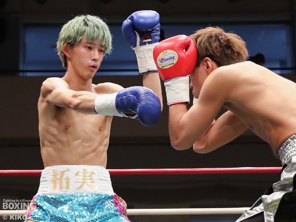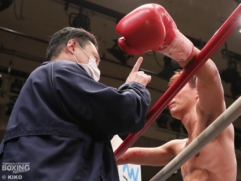 試合:ライトフライ級では長身(173㎝)の島田がジャブを飛ばしながら距離を測ると、2回に右アッパーを決めてダウンを先取。打ち合いに持ち込みたい舟生だが、相手の懐が深く思い通りの展開を作れず。島田は内側、外側と右を上手く使い分けながらペースを維持した。勝負は決まったのは3回。相手のパンチを浴びた舟生は左目上を負傷。ドクターチェックでこれ以上の試合続行は不能となり島田がTKO勝ちした。