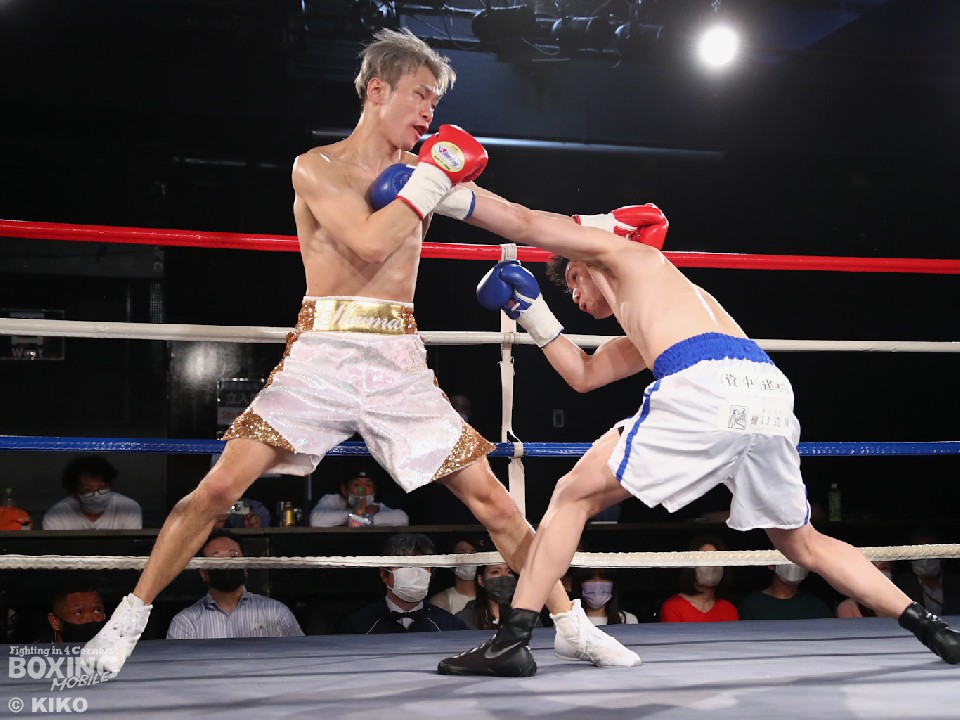 試合:初回、前に出てくる中山に対し、多田は足を使いながら左から丁寧な組み立て。打ち合いには付き合わず距離をキープした。2回、中山は上体を振りながら右から切り込むが、多田は上手くいなしながら上下に打ち分け見栄えの良さをアピール。続く回もしつこく前進してくる中山を右で迎え撃った。しかし、中山も勝負を諦めることなく右フックを繰り出し続けた。最終4回、多田は左ボディを決めると、手数でも上回った。