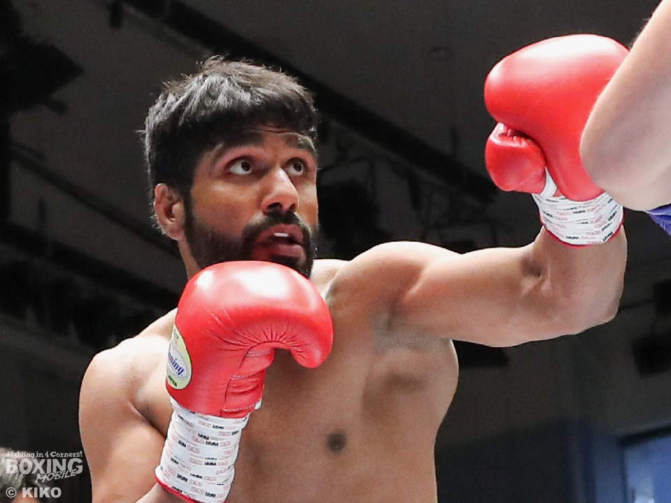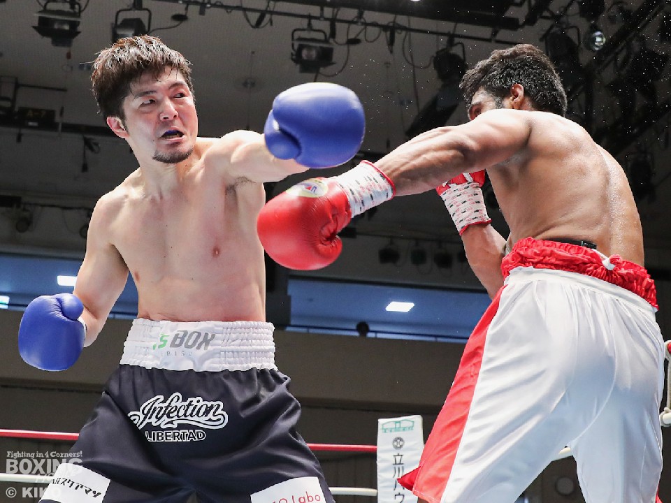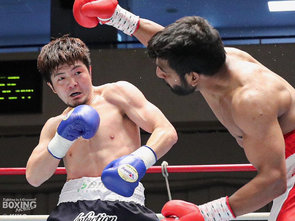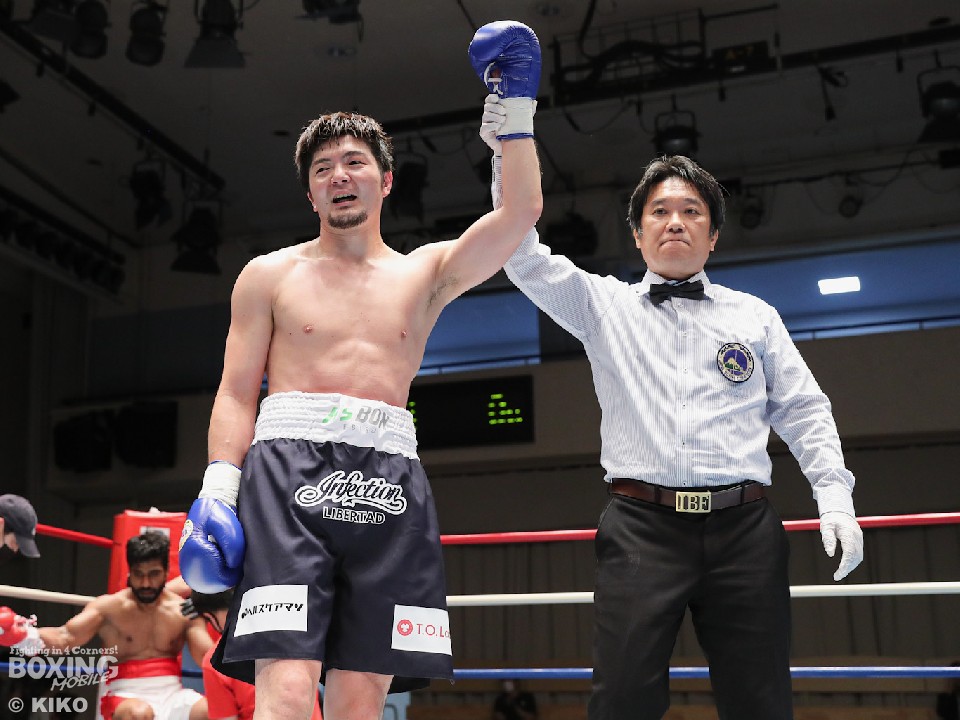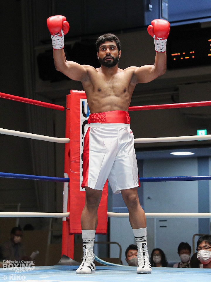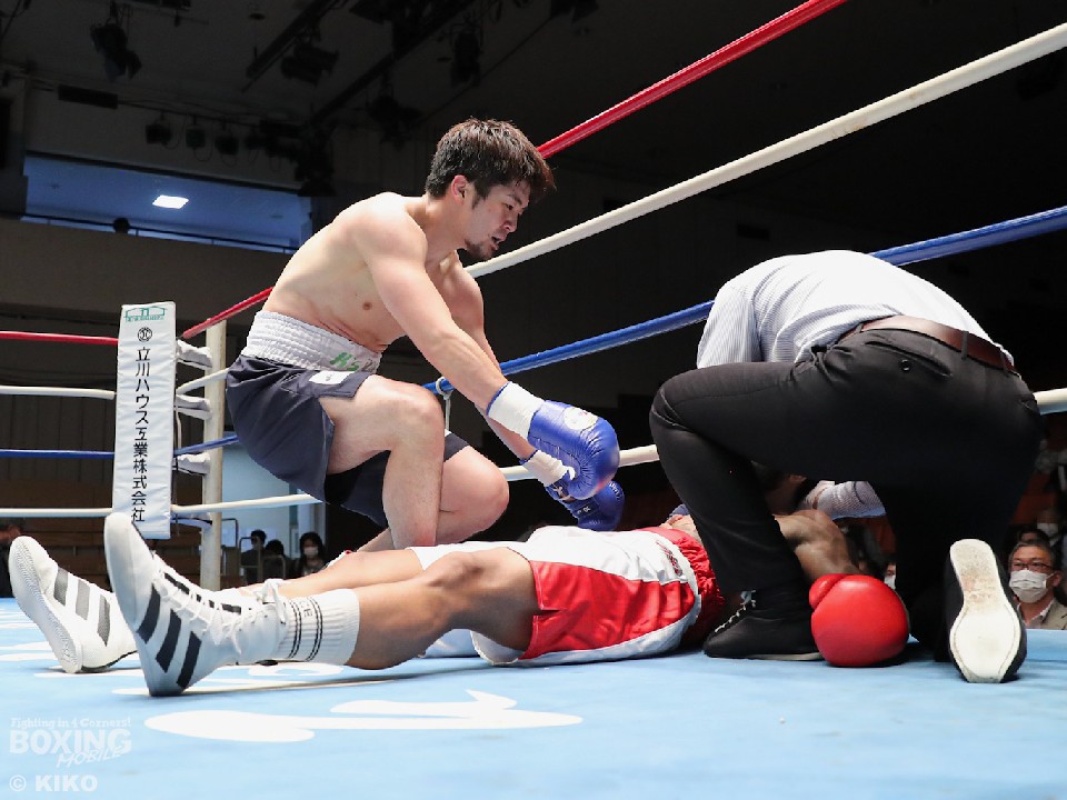 試合:インド出身のアンジュとキックボクシング第2代RISEスーパーライト級王者でボクシングに転向した左右田の対戦。アンジュが後ろ重心の構えから変則的な左で仕掛けると左右フックで先制攻撃。2回、アンジュは左フックでダウンを先取。守勢を強いられた左右田だが、左フックで棒立ちにさせるとチャンスとばかりに一気に攻め込み左フックで豪快に沈めた。左右田が逆転KOでデビュー戦を勝利した。