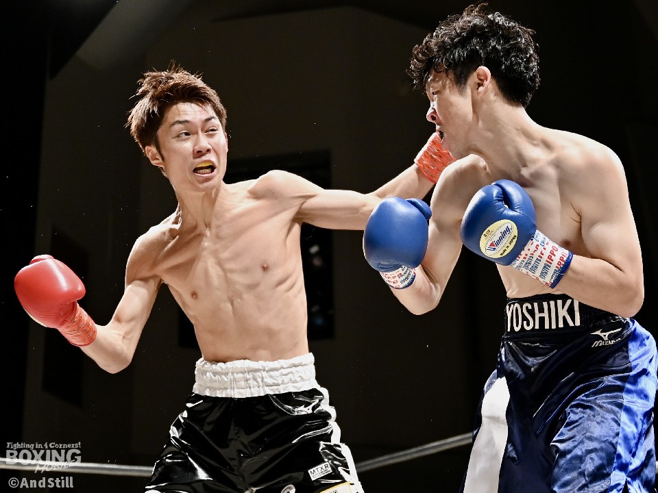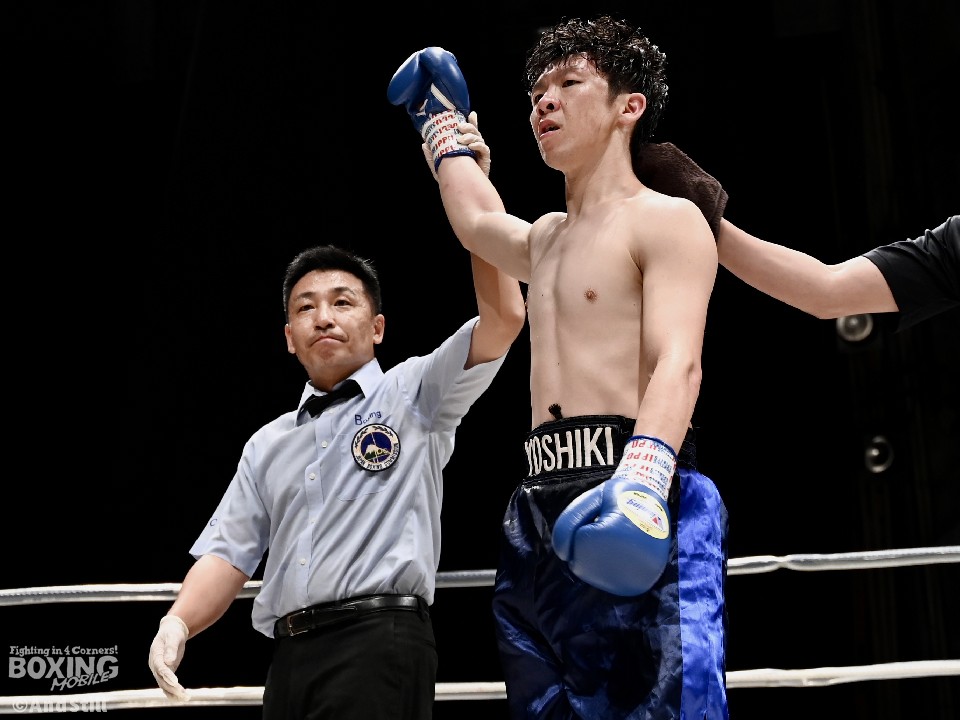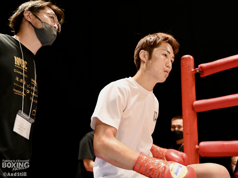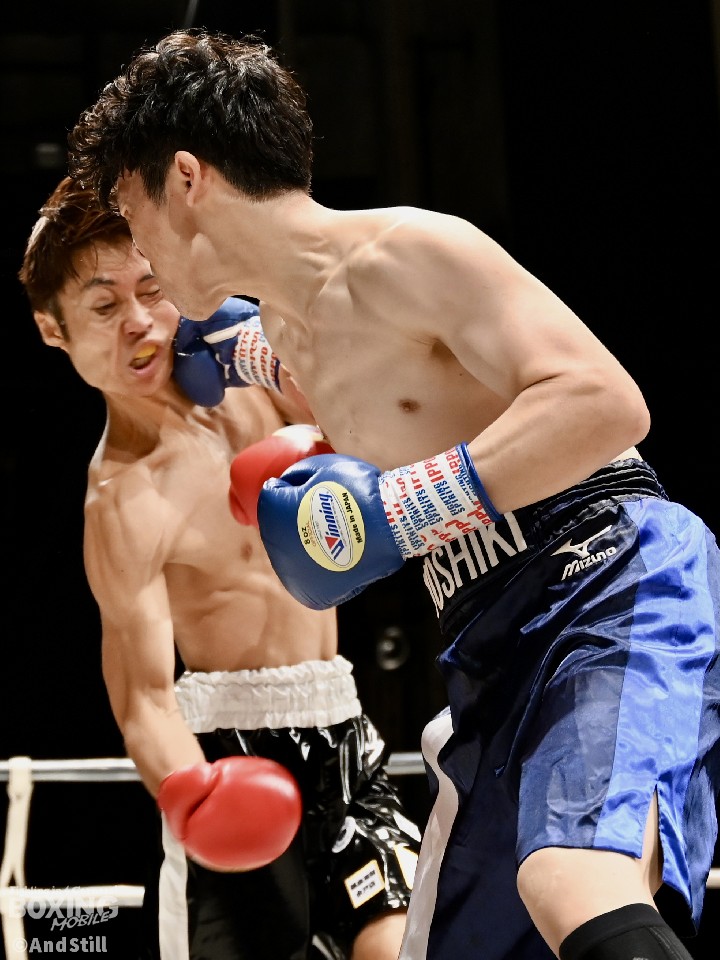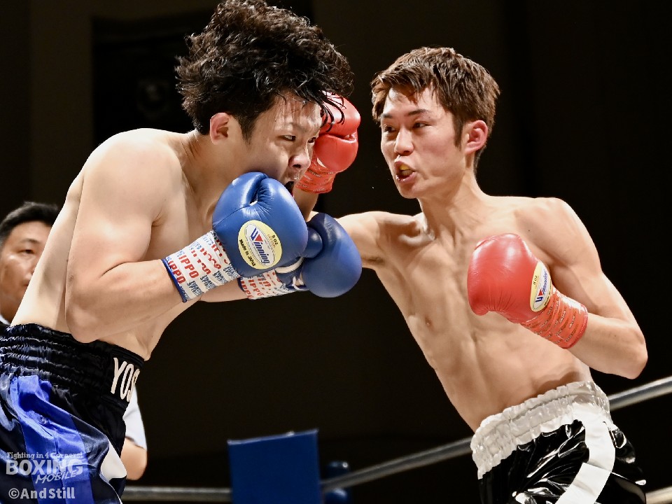 試合:サウスポー西条が右フックからワンツーをヒットし、先手を奪いに行くが廣瀬は右ボディアッパーで対抗。し烈な主導権争いを繰り広げた。2回も同じような展開。西条も右フックと廣瀬のボディ攻撃と我慢比べが続いた。3回、西条は返しの右フックを決めてダウンを演出。再開後、パンチをまとめて仕留めに行くが、ここを踏ん張った廣瀬は右ボディアッパーで動きを止めて反撃。4回、廣瀬はプッシュしながらボディにパンチを集めて攻勢。苦しい展開となった西条だが懸命にパンチを返した。ダウンを奪った西条が判定勝ちした。