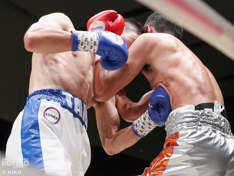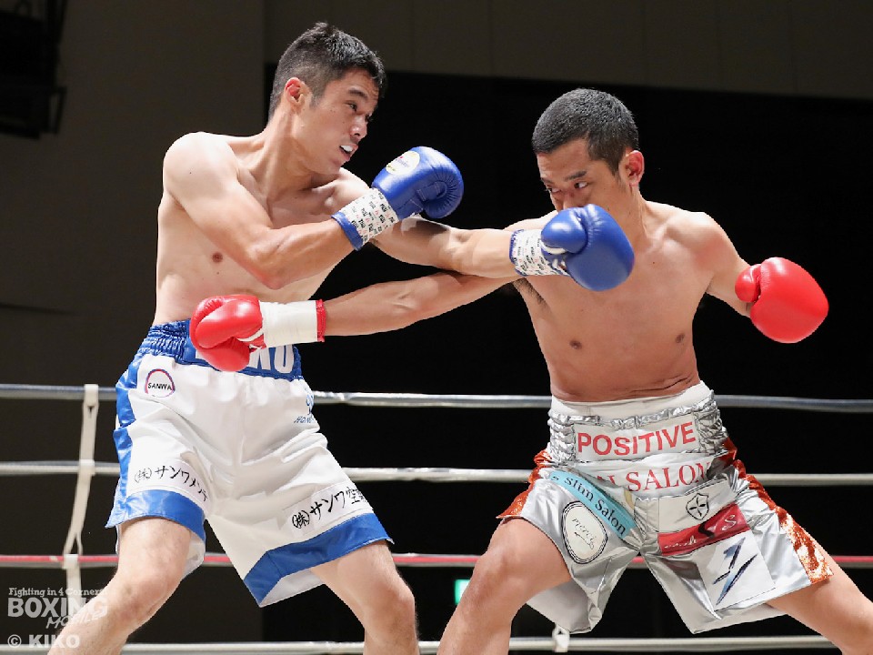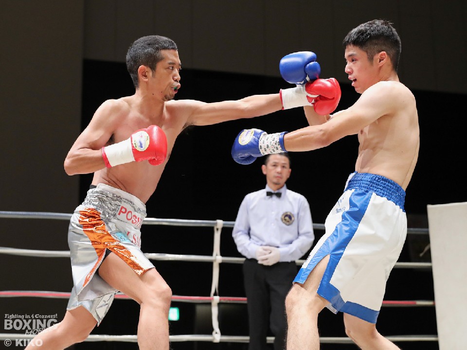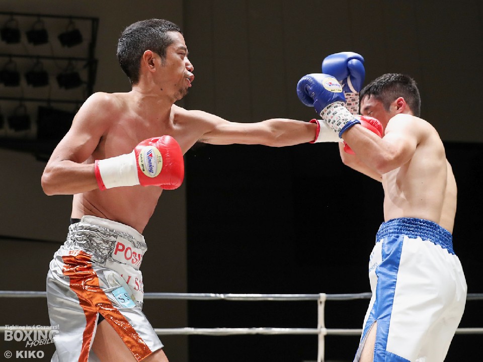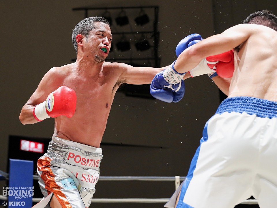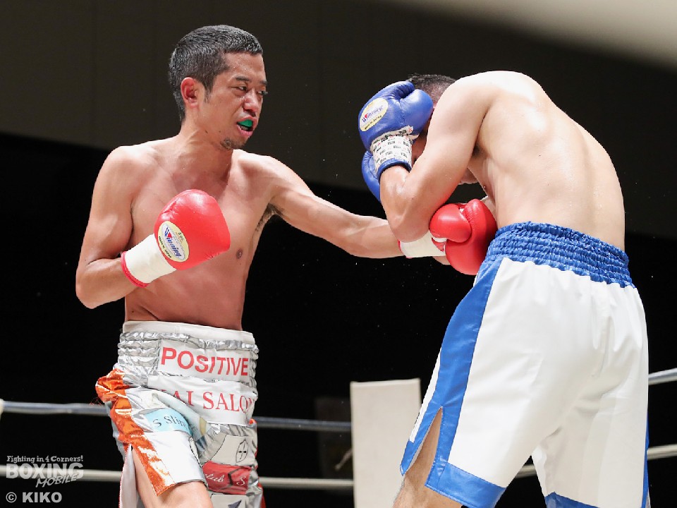 試合:サウスポー・ポジティブが前の手で距離を測りながら単発の左ストレートをヒット。リングを大きく使いながら距離をキープした。2回、右から切り込むハンマーに対し、ポジティブは手数を落とさず左ボディストレート、右フックを好打。3回、なかなか捕まえることができないハンマーだが、右オーバーハンドからボディにパンチを集めて反撃。4回、ジリジリと距離を詰めてボディ攻撃を仕掛けるハンマーだが、ポジティブも左ストレートをねじ込み最後まで意地を見せた。ジャッジ2者の支持を得た35歳のポジティブがデビュー戦を勝利した。