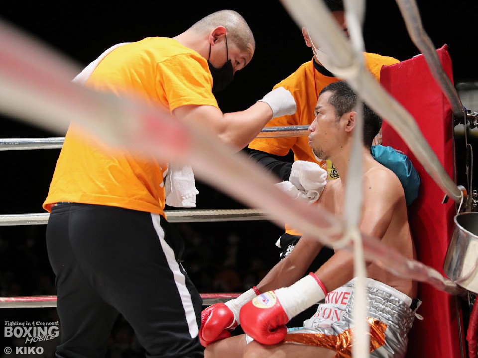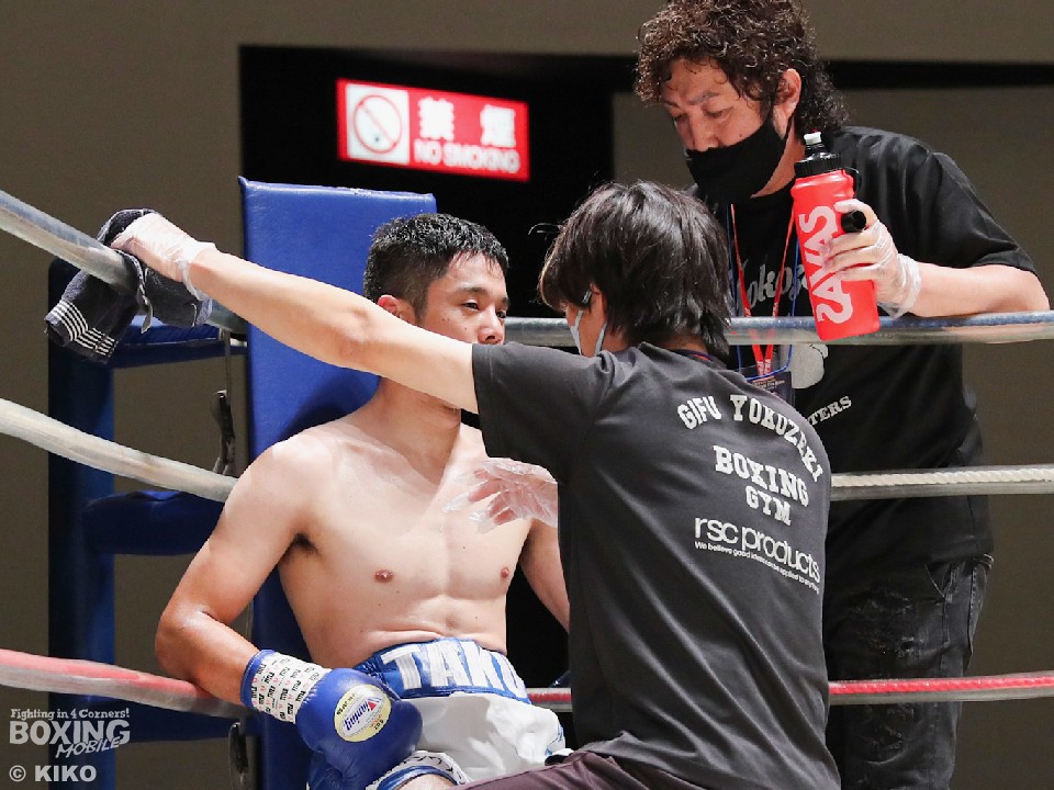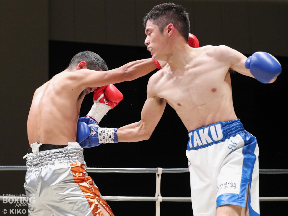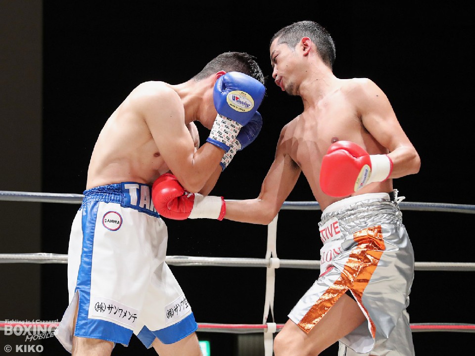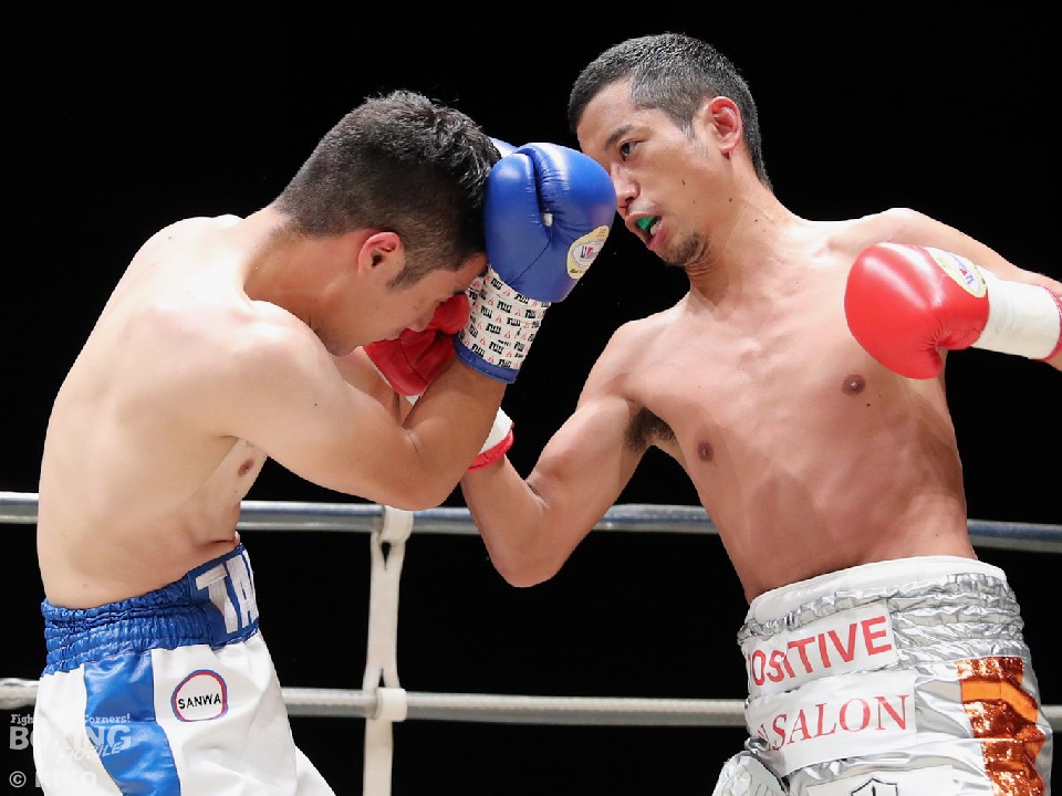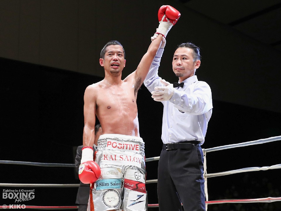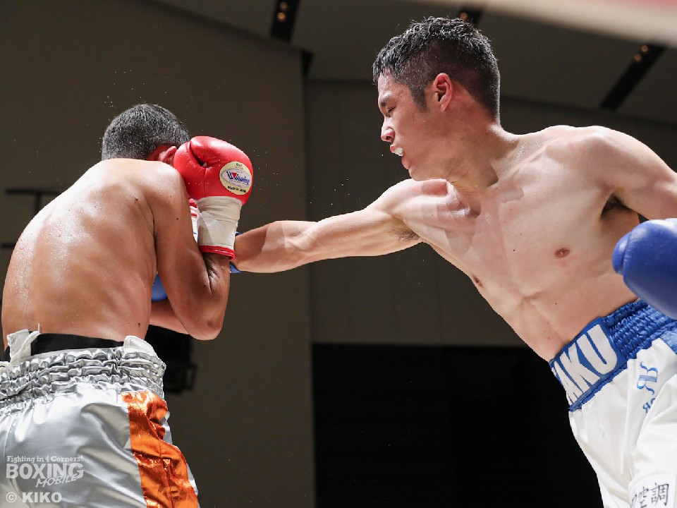 試合:サウスポー・ポジティブが前の手で距離を測りながら単発の左ストレートをヒット。リングを大きく使いながら距離をキープした。2回、右から切り込むハンマーに対し、ポジティブは手数を落とさず左ボディストレート、右フックを好打。3回、なかなか捕まえることができないハンマーだが、右オーバーハンドからボディにパンチを集めて反撃。4回、ジリジリと距離を詰めてボディ攻撃を仕掛けるハンマーだが、ポジティブも左ストレートをねじ込み最後まで意地を見せた。ジャッジ2者の支持を得た35歳のポジティブがデビュー戦を勝利した。