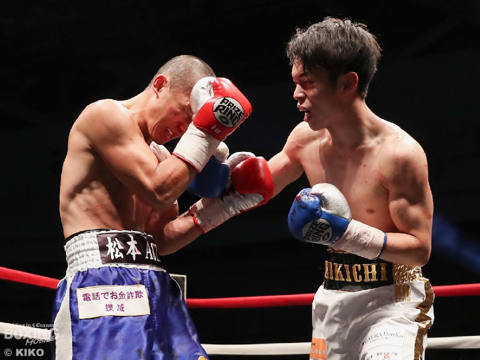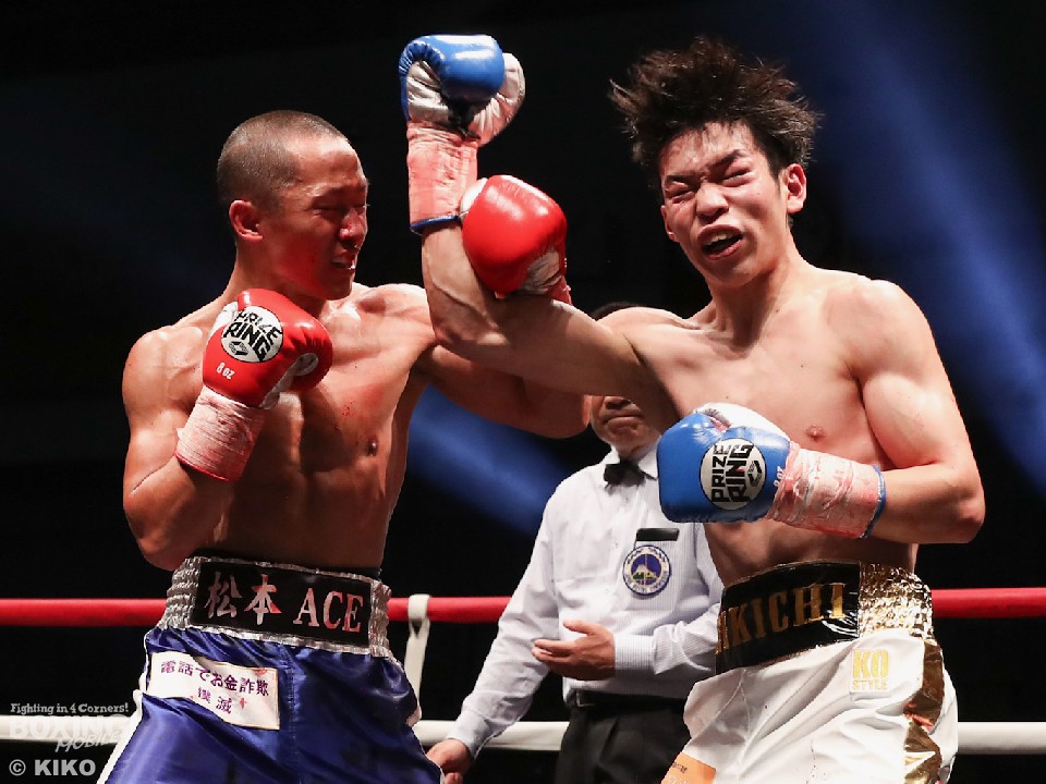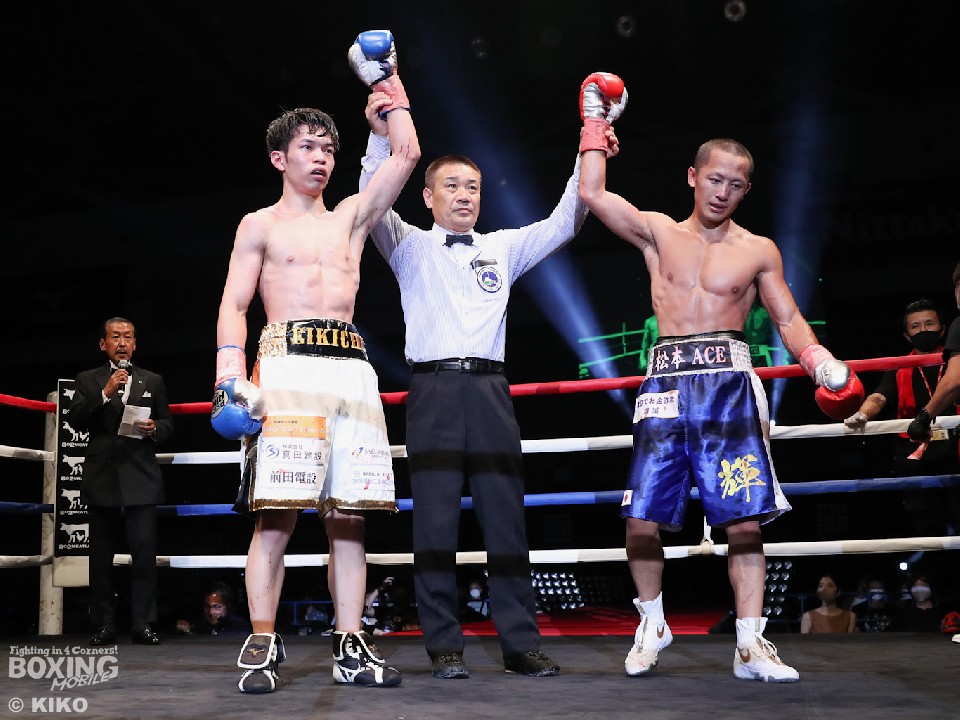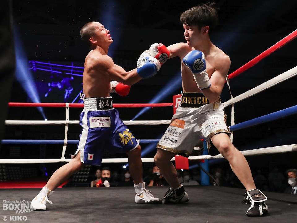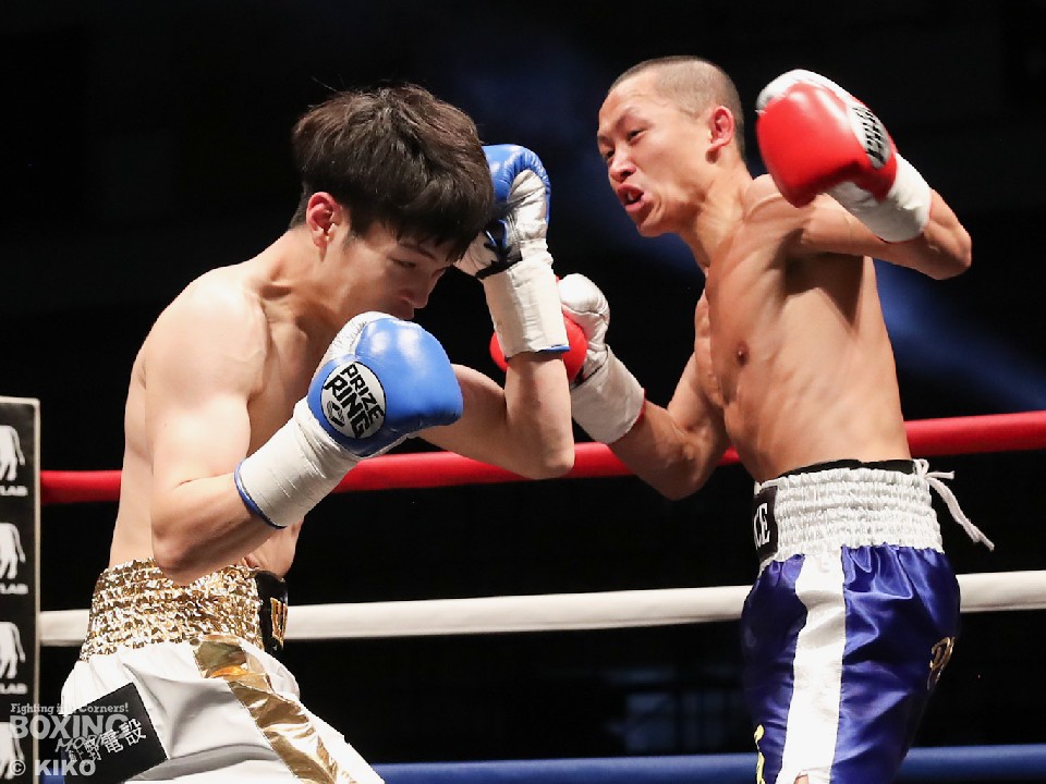 試合:サウスポー上野がジャブから右フックから仕掛けると、前に出てくる二葉に右アッパーを突き上げてリズム感のある攻撃を展開。2回、二葉はプッシュしながらワンツーで顔を弾き反撃。フィジカルの強さを活かして豊富な手数でポイントを加点。4回、激しいパンチの応酬となり譲らなかった。採点は引き分けとなったが、新人王トーナメント特別ルールにより優勢点を勝ち取った二葉が次戦にコマを進めた。