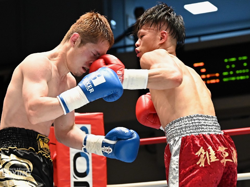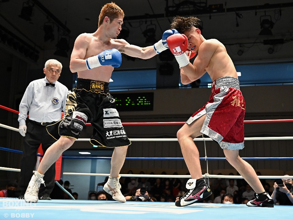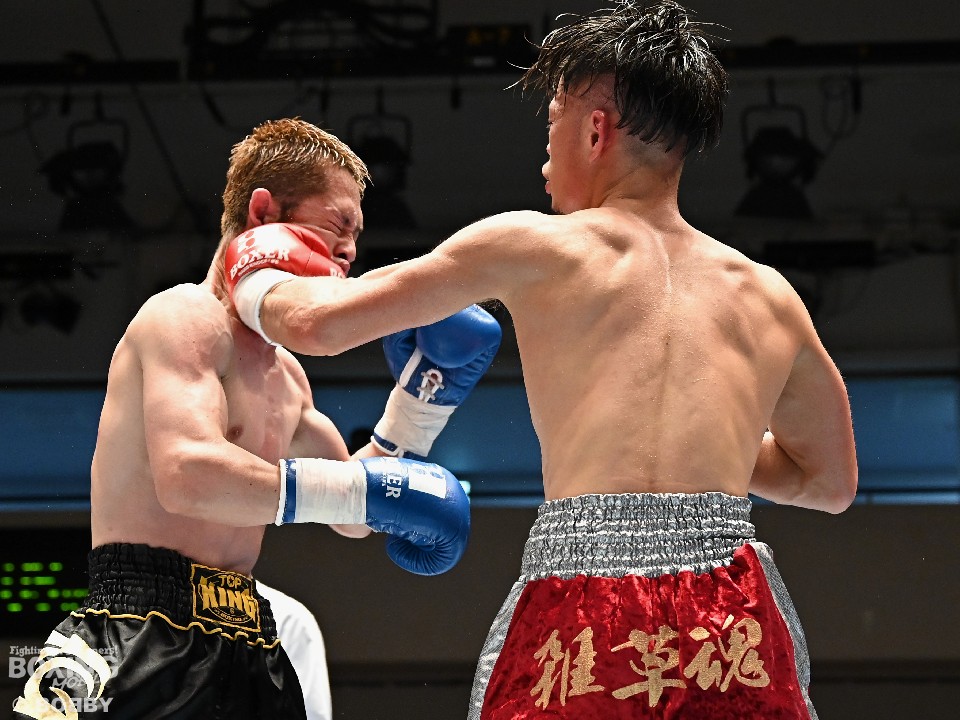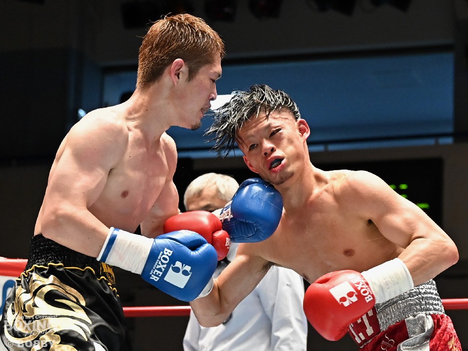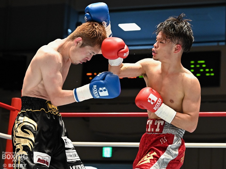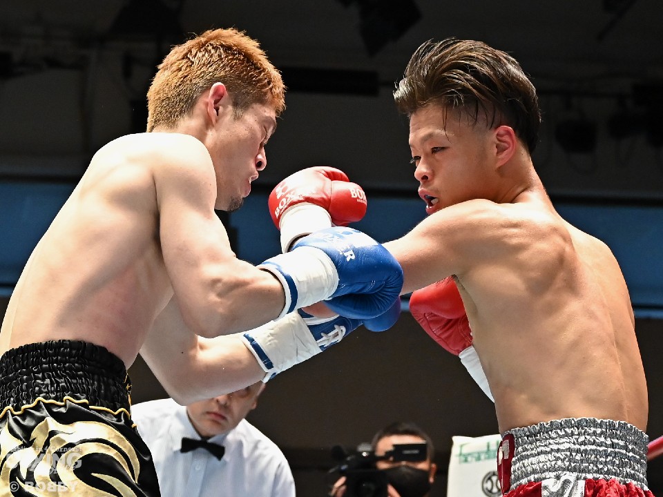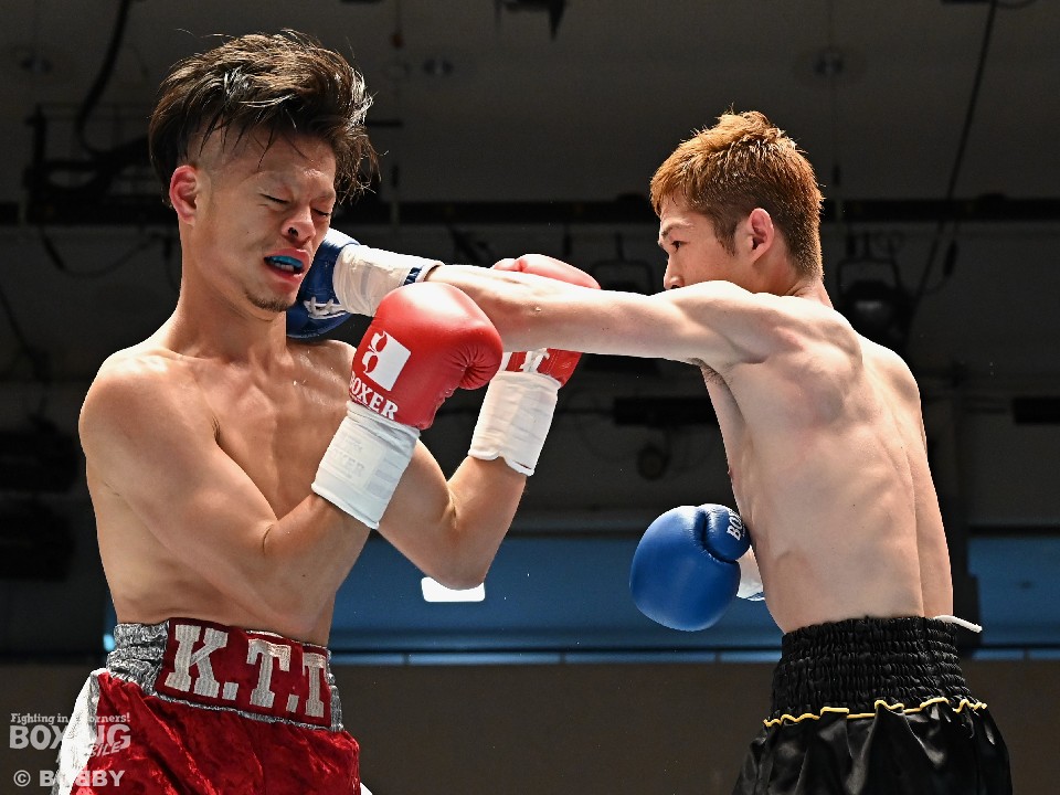 試合:船橋がジャブからワンツーをヒットすると、右ショートアッパーを好打。ペースを掴みかけるが、中島の左フックを浴びてバランスを崩してしまう。中島はチャンスとばかりにパンチをまとめるが、攻撃が雑になり仕留めることができず。息を吹き返した船橋はラウンド終盤に連打で反撃した。2回、ボディへのパンチの応酬となるが、船橋の回転力が上回った。4回、船橋が細かい連打から左フックで顔を弾くと、最後まで積極的に攻め立てた。初回のピンチを乗り切った船橋が勝利した。