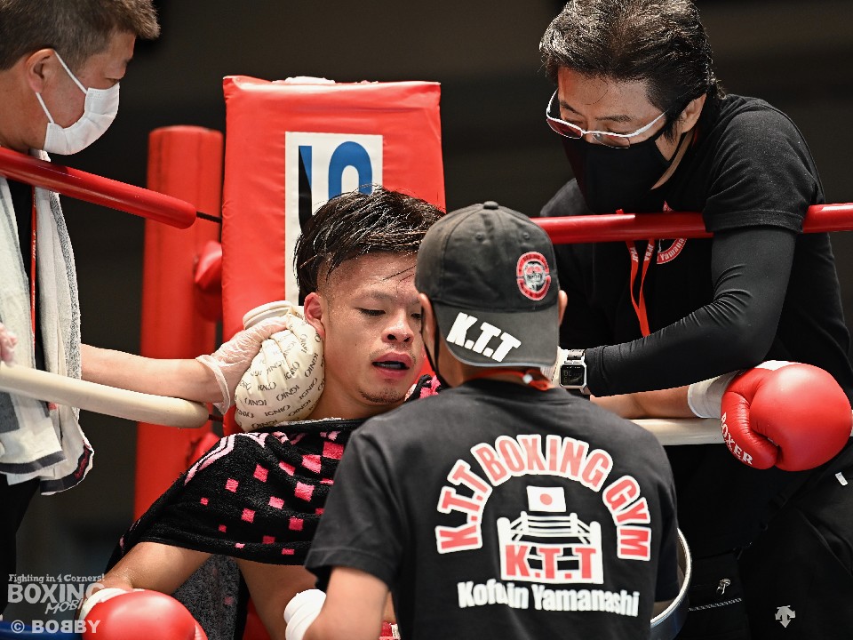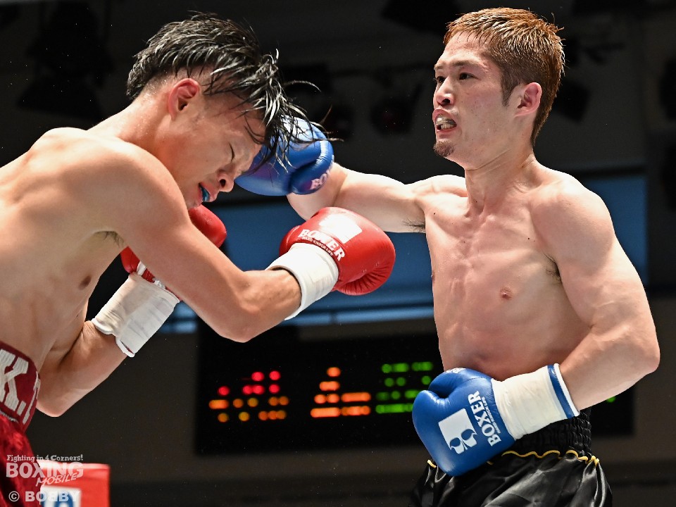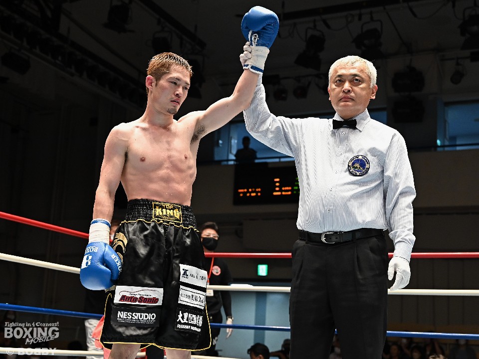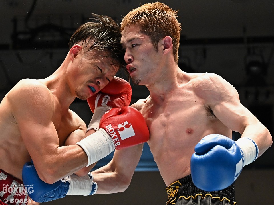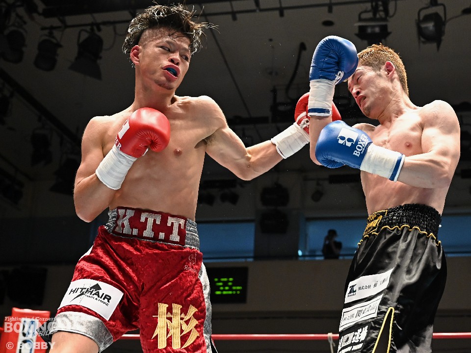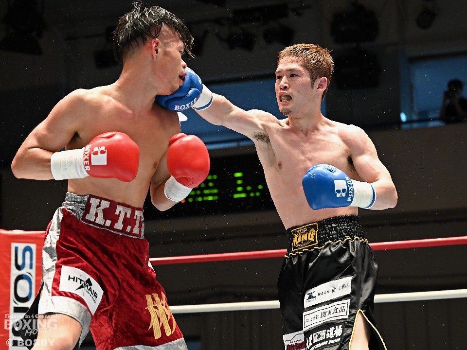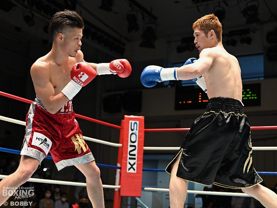 試合:船橋がジャブからワンツーをヒットすると、右ショートアッパーを好打。ペースを掴みかけるが、中島の左フックを浴びてバランスを崩してしまう。中島はチャンスとばかりにパンチをまとめるが、攻撃が雑になり仕留めることができず。息を吹き返した船橋はラウンド終盤に連打で反撃した。2回、ボディへのパンチの応酬となるが、船橋の回転力が上回った。4回、船橋が細かい連打から左フックで顔を弾くと、最後まで積極的に攻め立てた。初回のピンチを乗り切った船橋が勝利した。