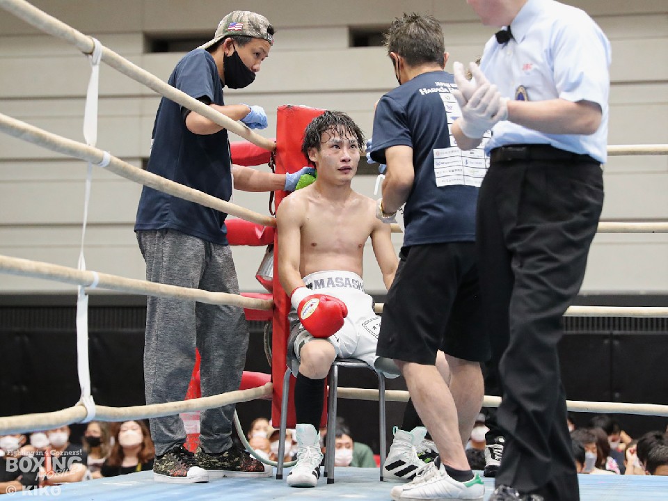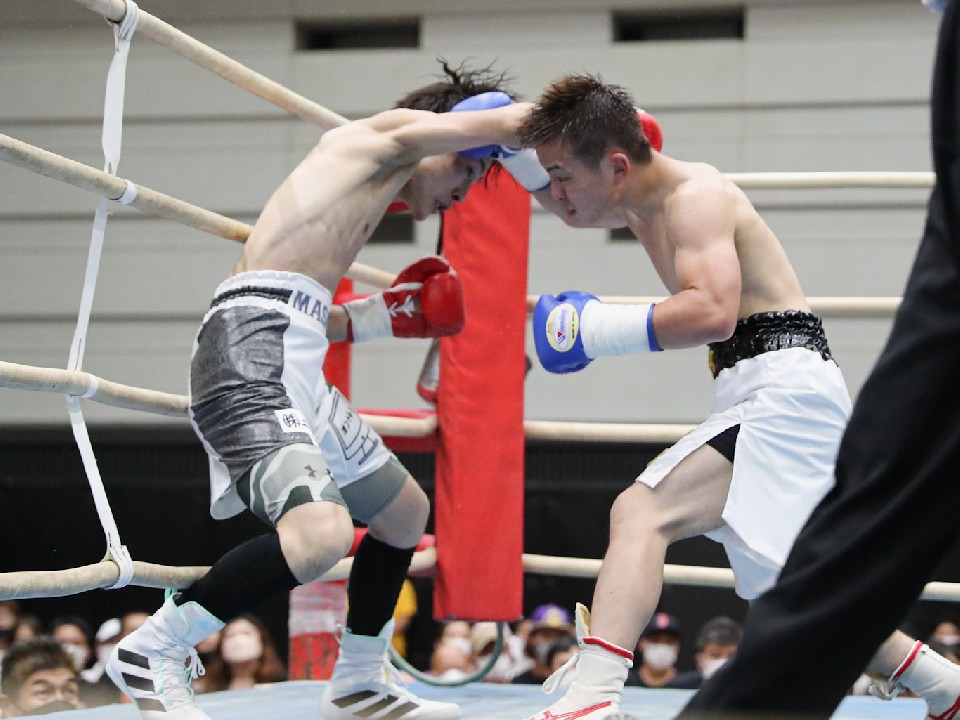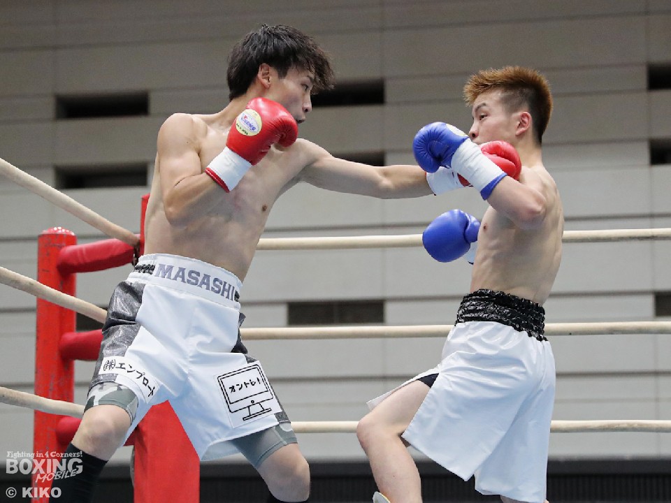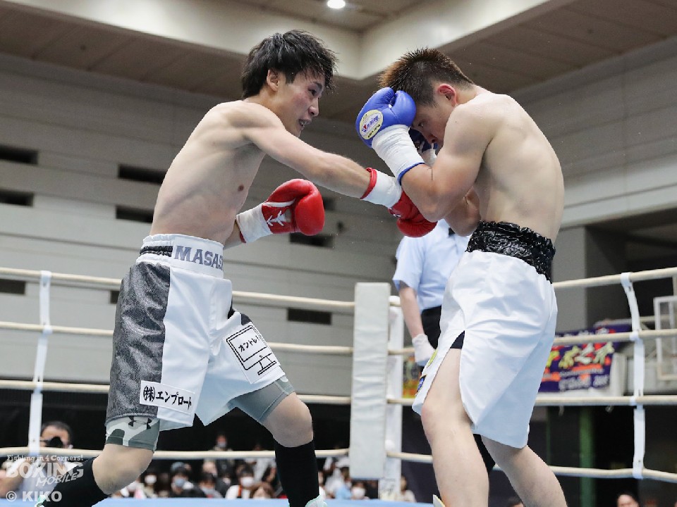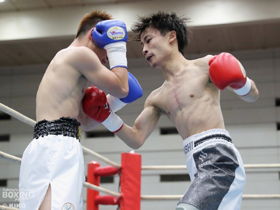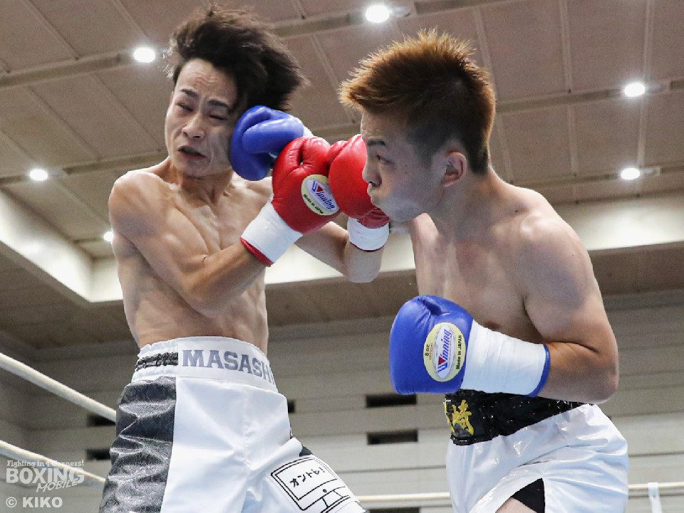 試合:熊谷が間合いを詰めて右フックから仕掛けると、池田はジャブから左フック、左ボディをヒット。2回、激しいパンチの交換の中、池田が緩急をつけながら有効打で上回った。しかし、熊谷も被弾しながら細かいパンチで強気に打ち返した。3回、熊谷はボディにパンチを集めて粘り強さを発揮。4回、突き放したい池田だが、熊谷のしつこさは変わらず。それでも左ボディを好打し見栄えの良さをアピールした。
