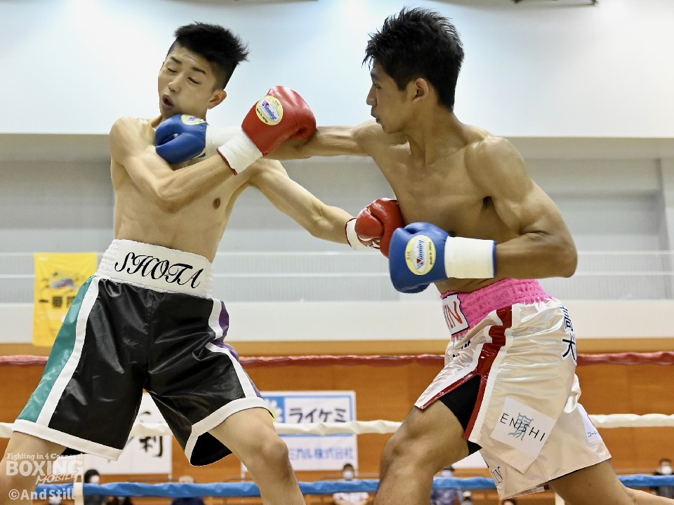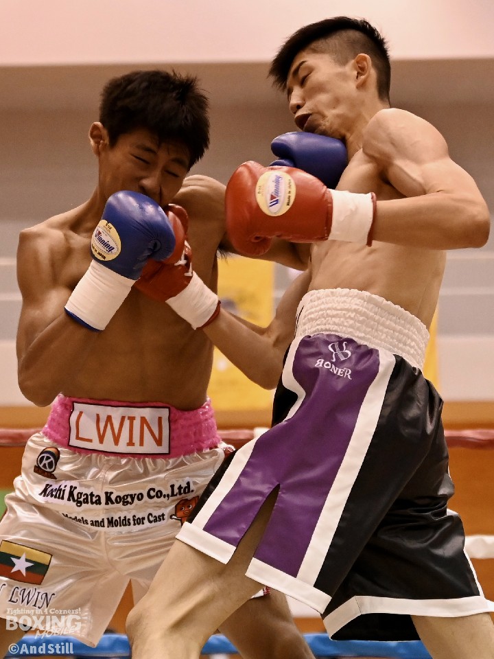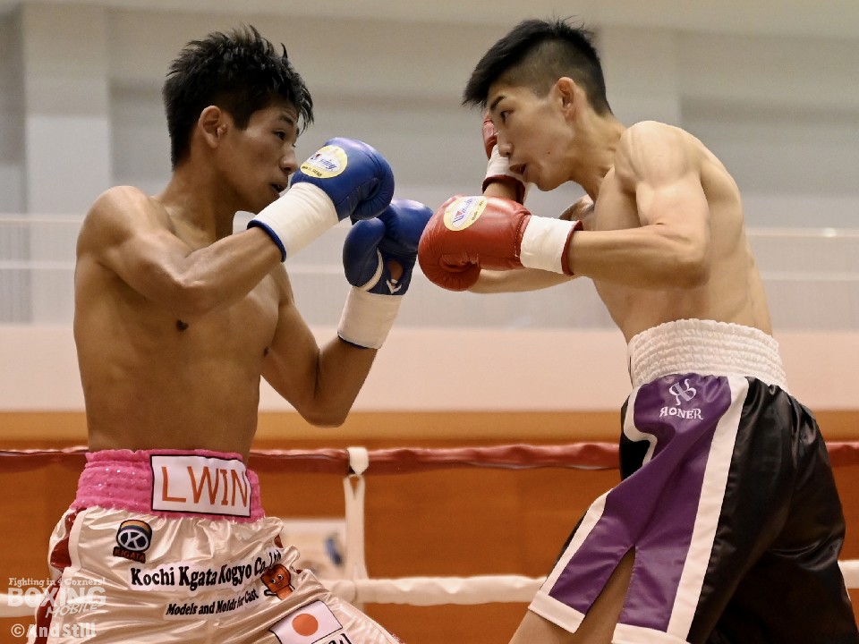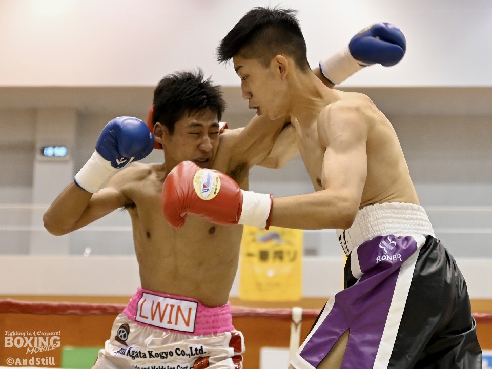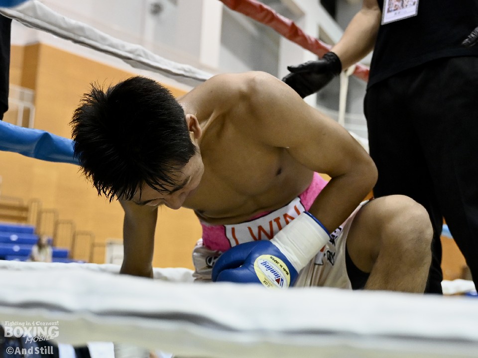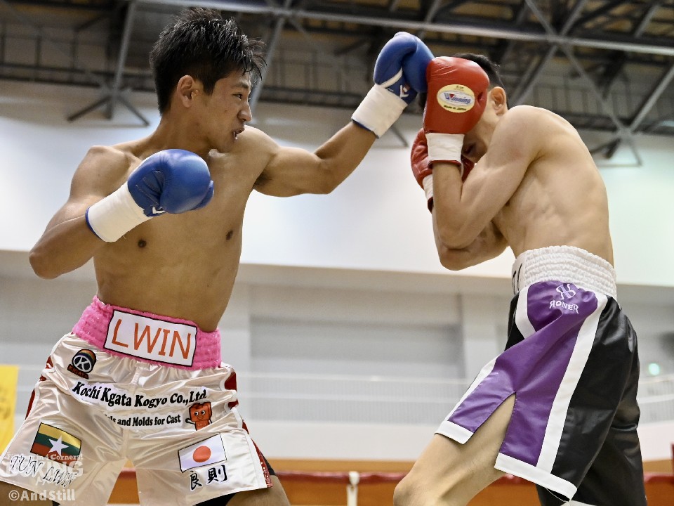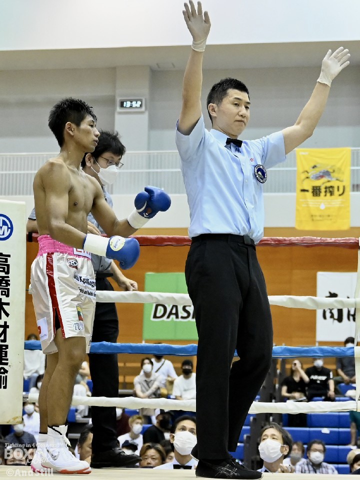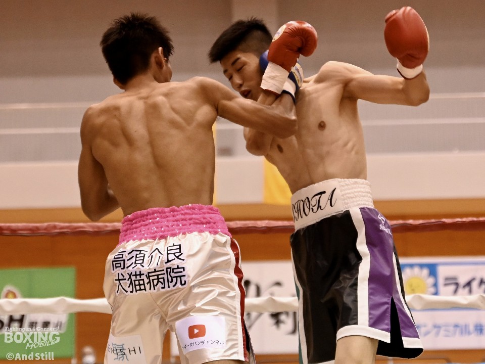 試合:小谷が右フックで膝を揺らすが、富田も距離を潰してショートパンチで対抗。ロープ際でのパンチの応酬となった。初回が終わると小谷が右肩を押さえて苦しい表情を見せた。2回開始早々、ドクターチェックの末、右肩脱臼の疑いがあり試合終了。富田がTKO勝ちした。