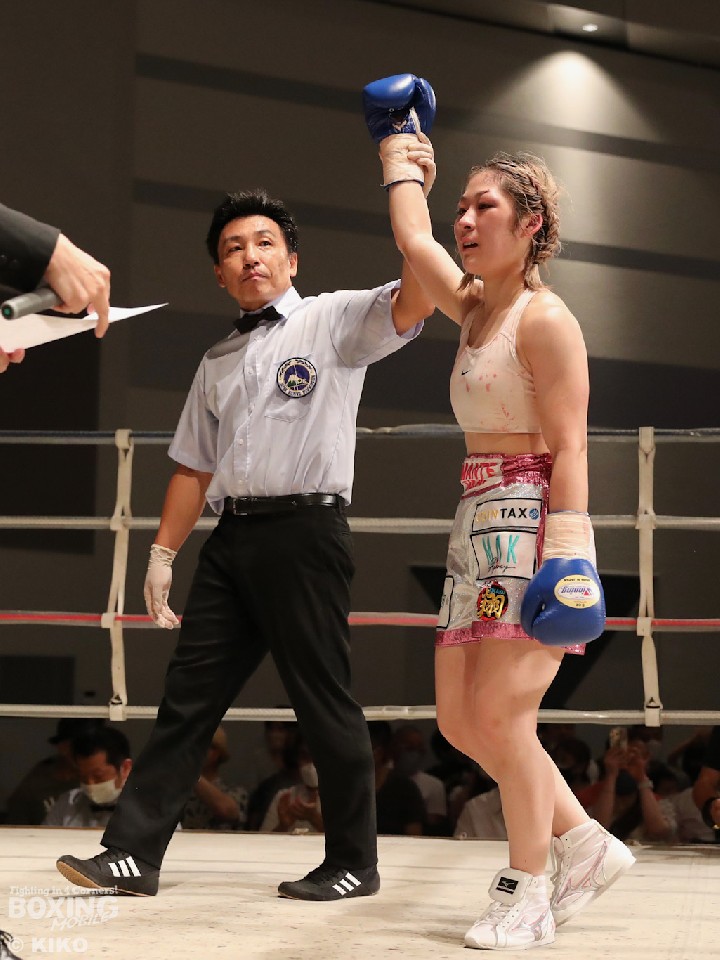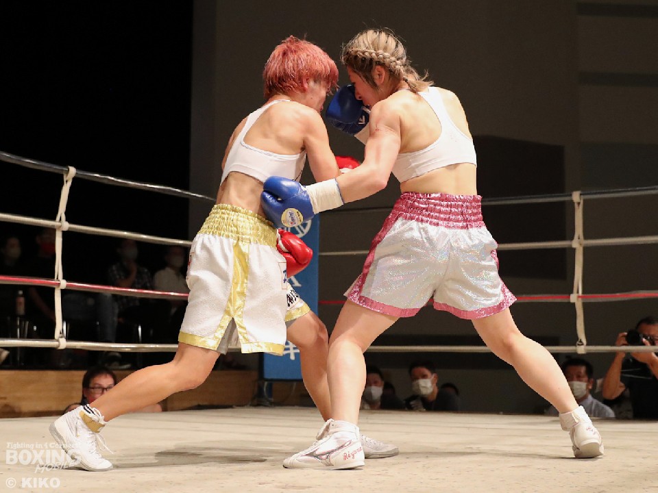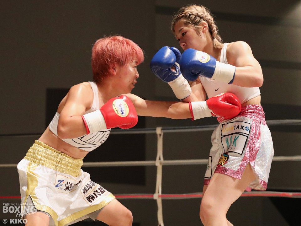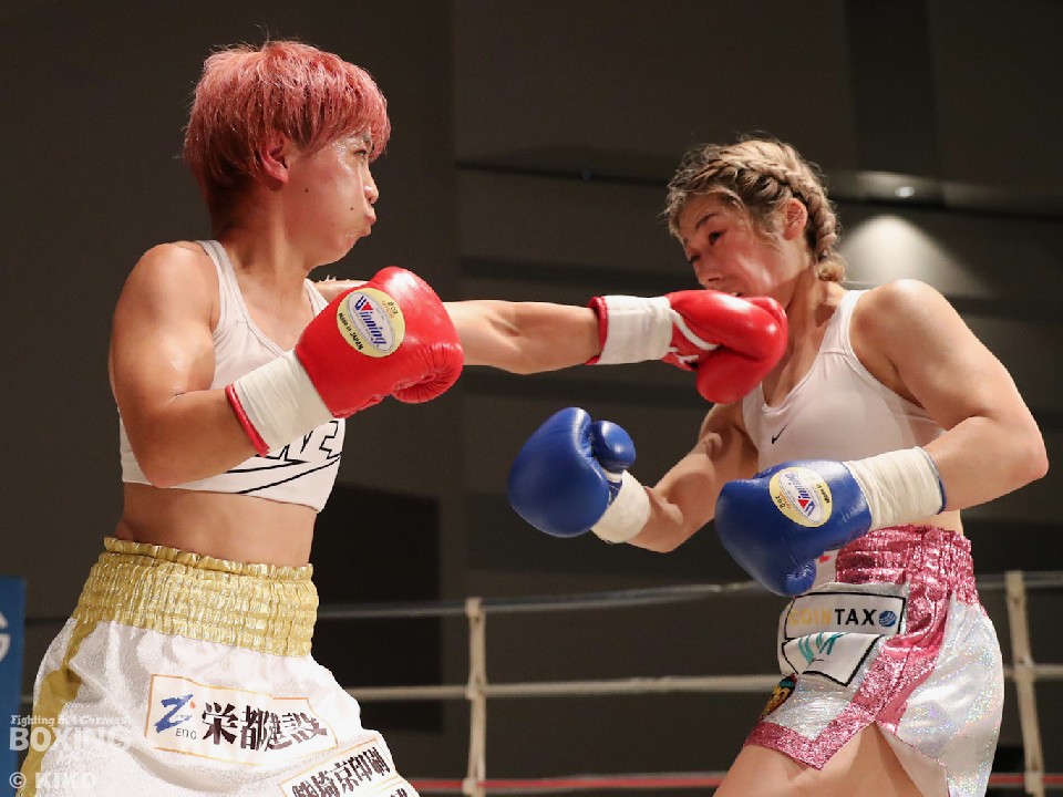 試合:樽井がリングをサークリングしながらタイミングを見計らって右を狙うのに対し、吉川はジャブを突きながらプレスをかける。初回は大きなアクションはなかった。2回、樽井は足を使いながら打ち合いに付き合わず左フックをヒット。ジリジリと距離を詰める吉川だが、右ストレートにつなげられず。しかし、3回から圧力を強めてワンツーを好打するとリズムを掴み有効打を決めた。5回、ペースアップした樽井はテンポの良い攻撃で見栄えの良さをアピール。最終6回、お互いに決定打に欠けた。ジャッジ2者が吉川を支持し6回戦初勝利を挙げた。